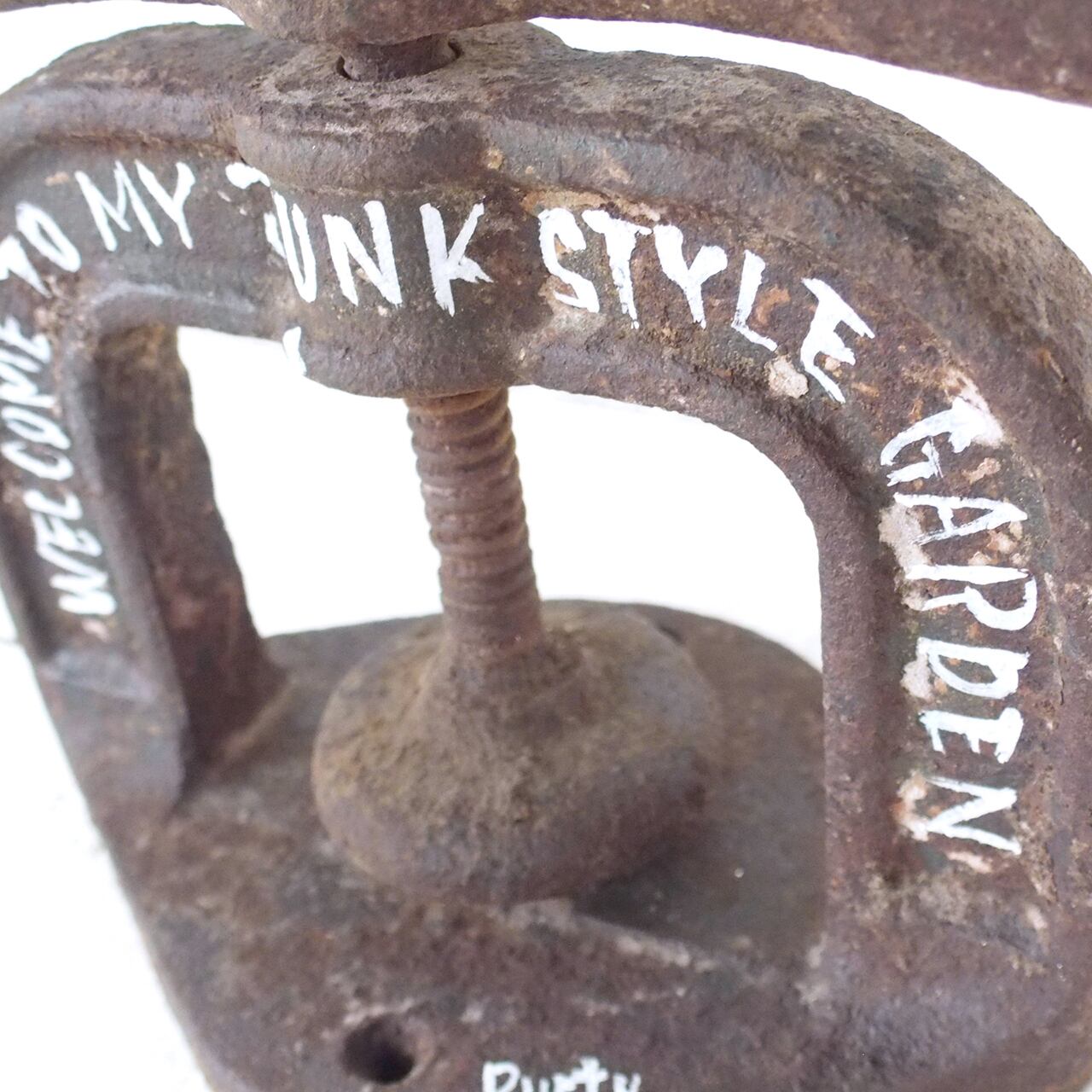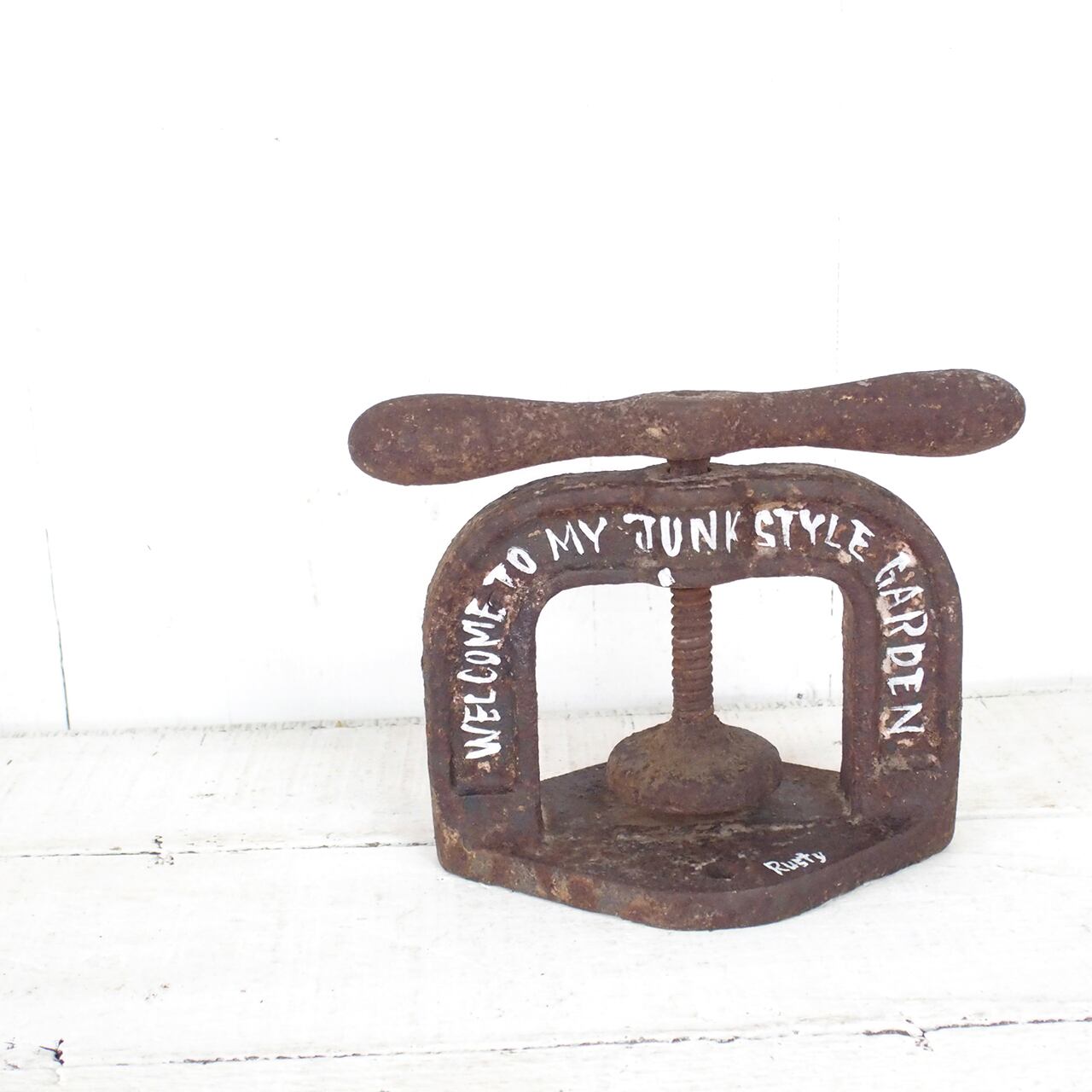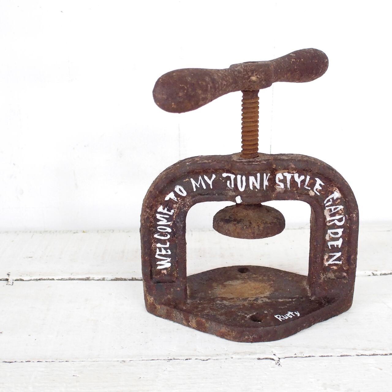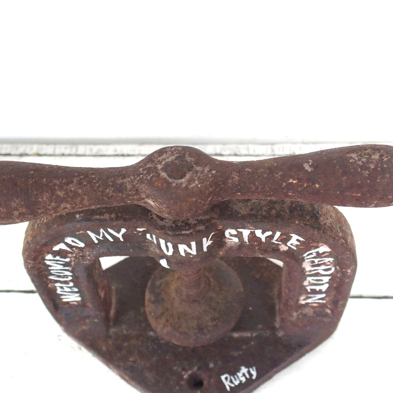 ジャンクガーデンマにぴったりのサビサビ古道具に文字を入れてアレンジしました♪