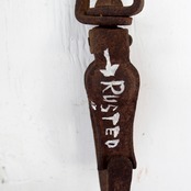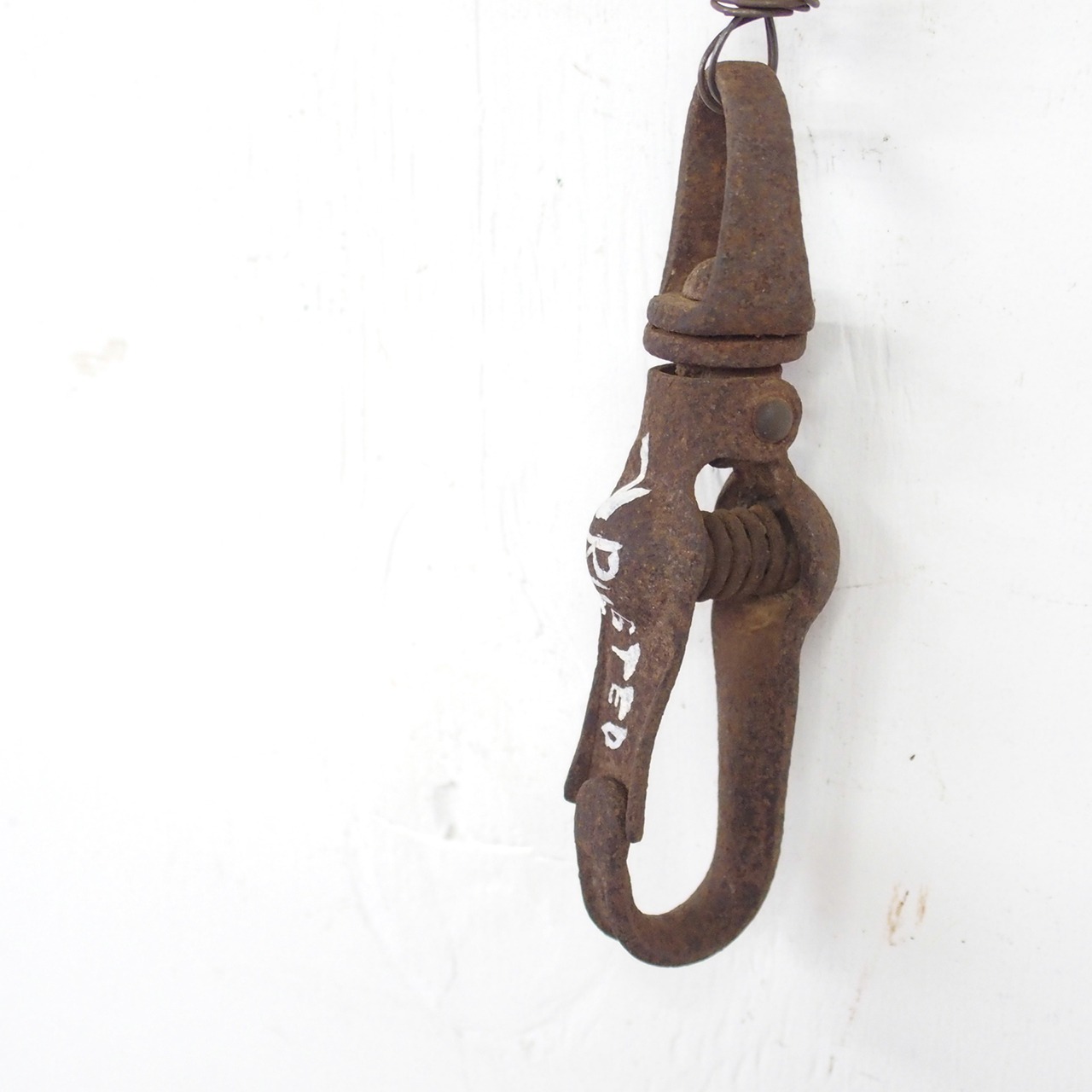 使い古されたサビサビのフックに文字を入れたガーデンオーナメントです♪