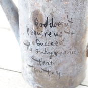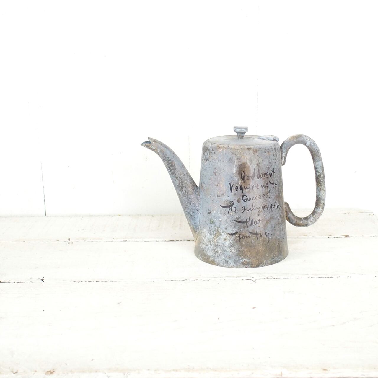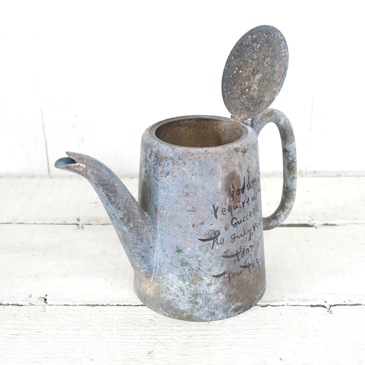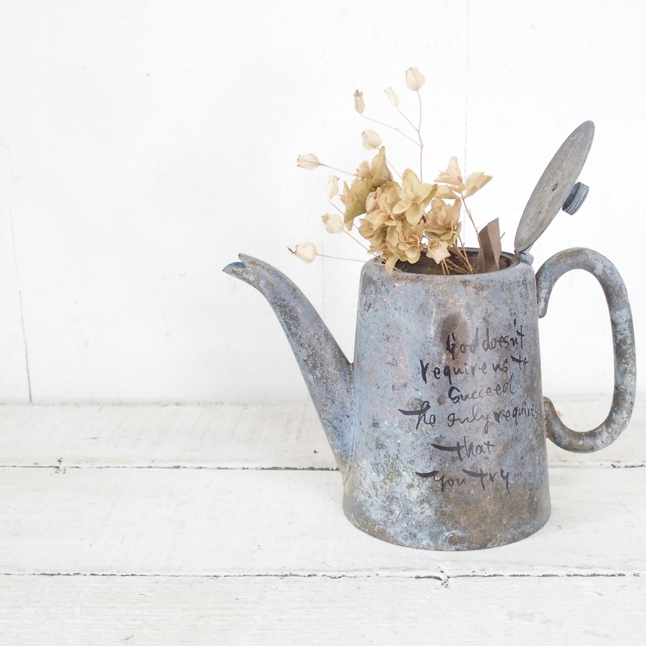 アンティーク感溢れるアルミのポットに文字を入れた一品です♪