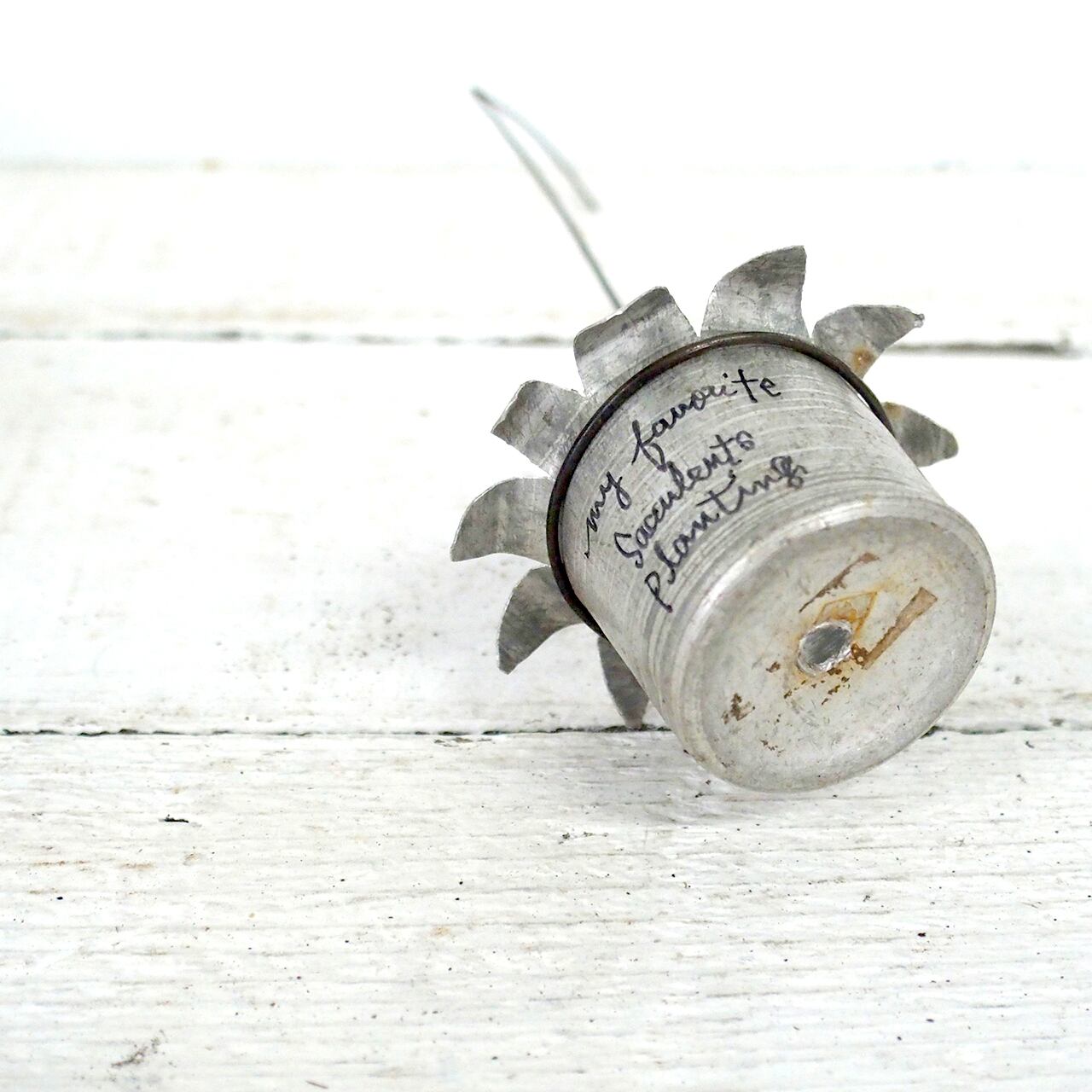 小さなアルミカップを花の形に切り抜いた小さなプランターです♪