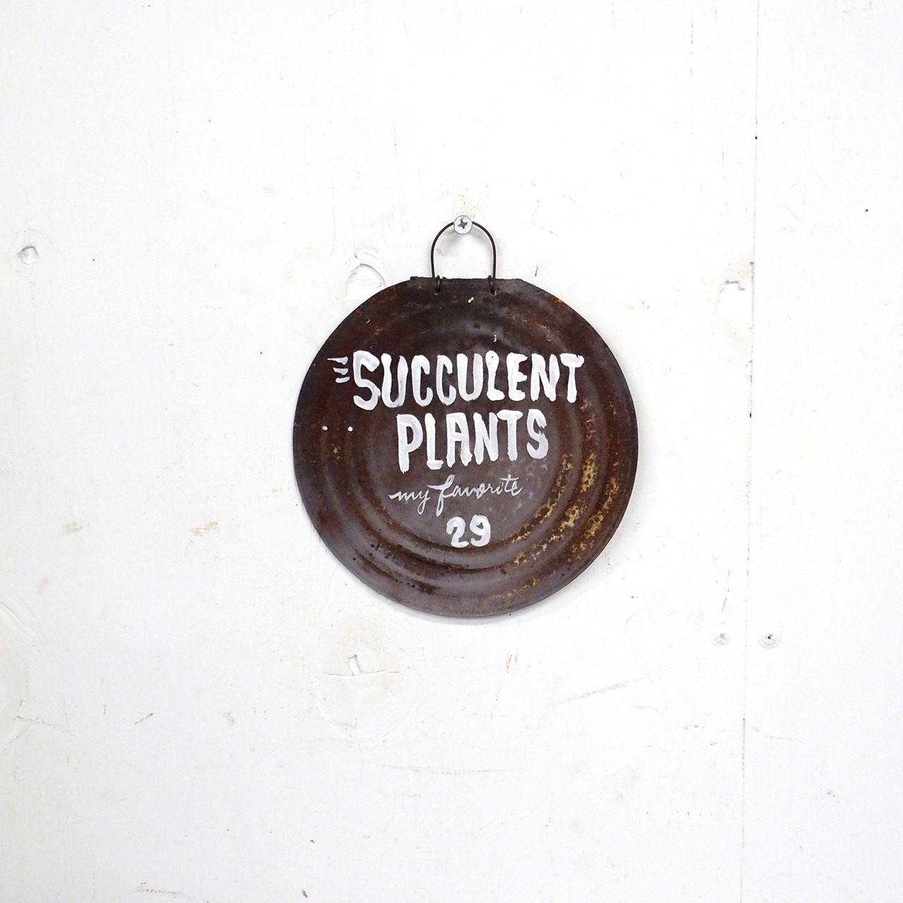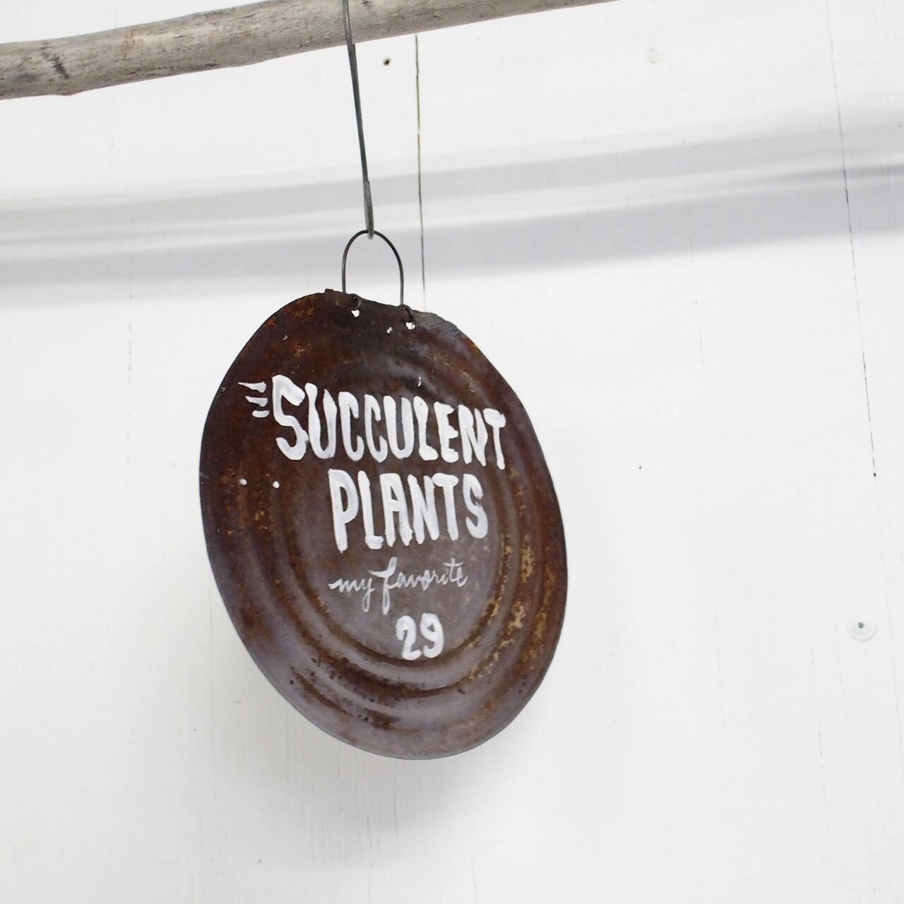 丸い缶の蓋に文字を入れた多肉ガーデン用のです!!