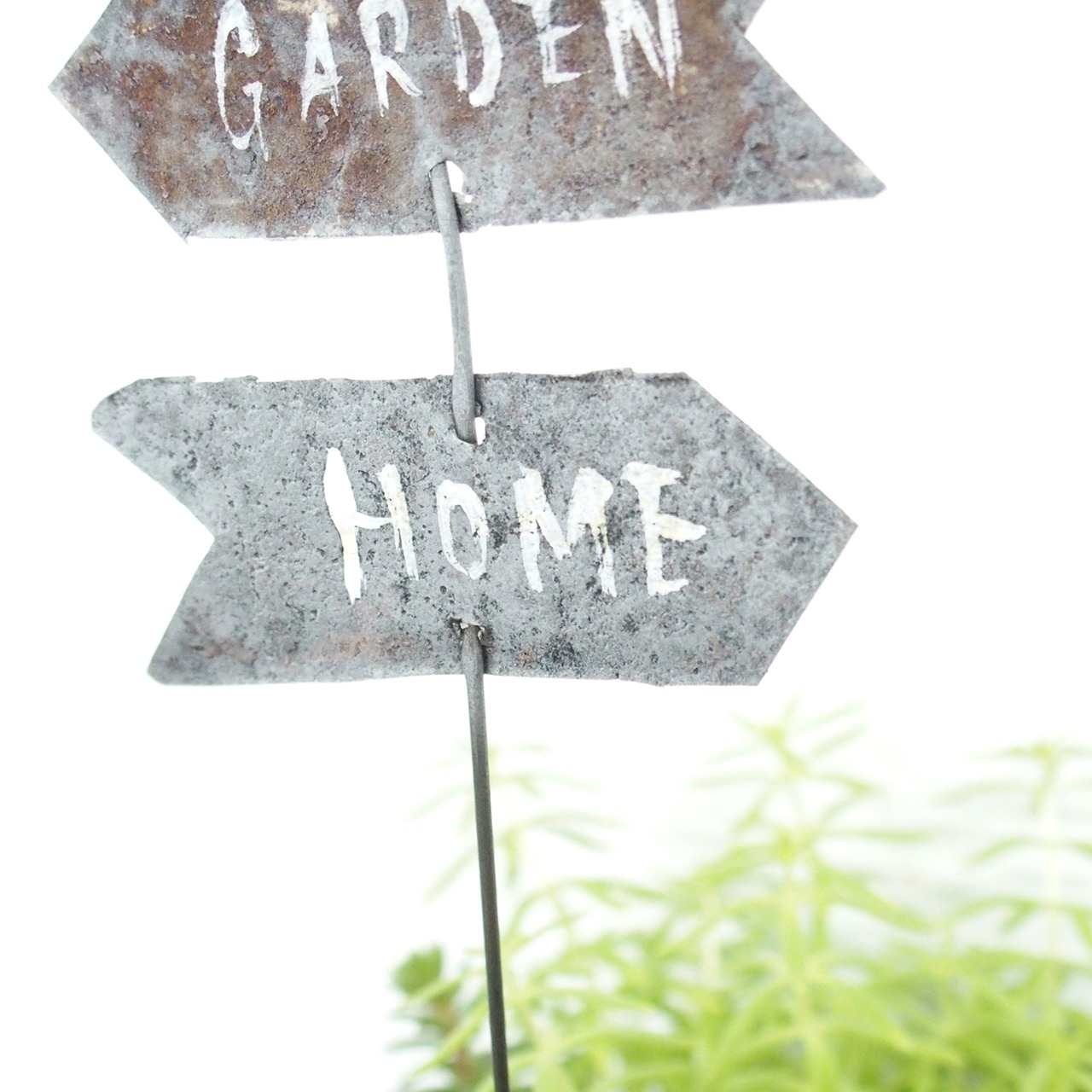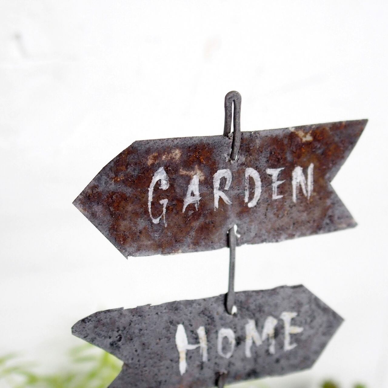 サビサビのブリキを矢印型に切り抜いて