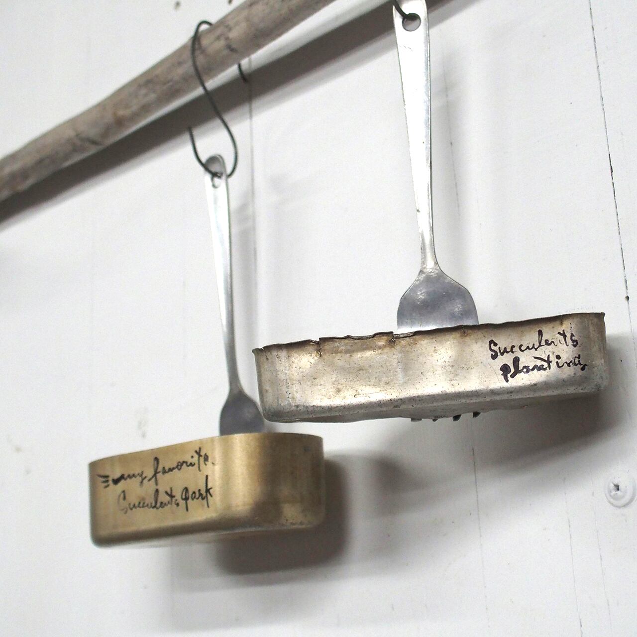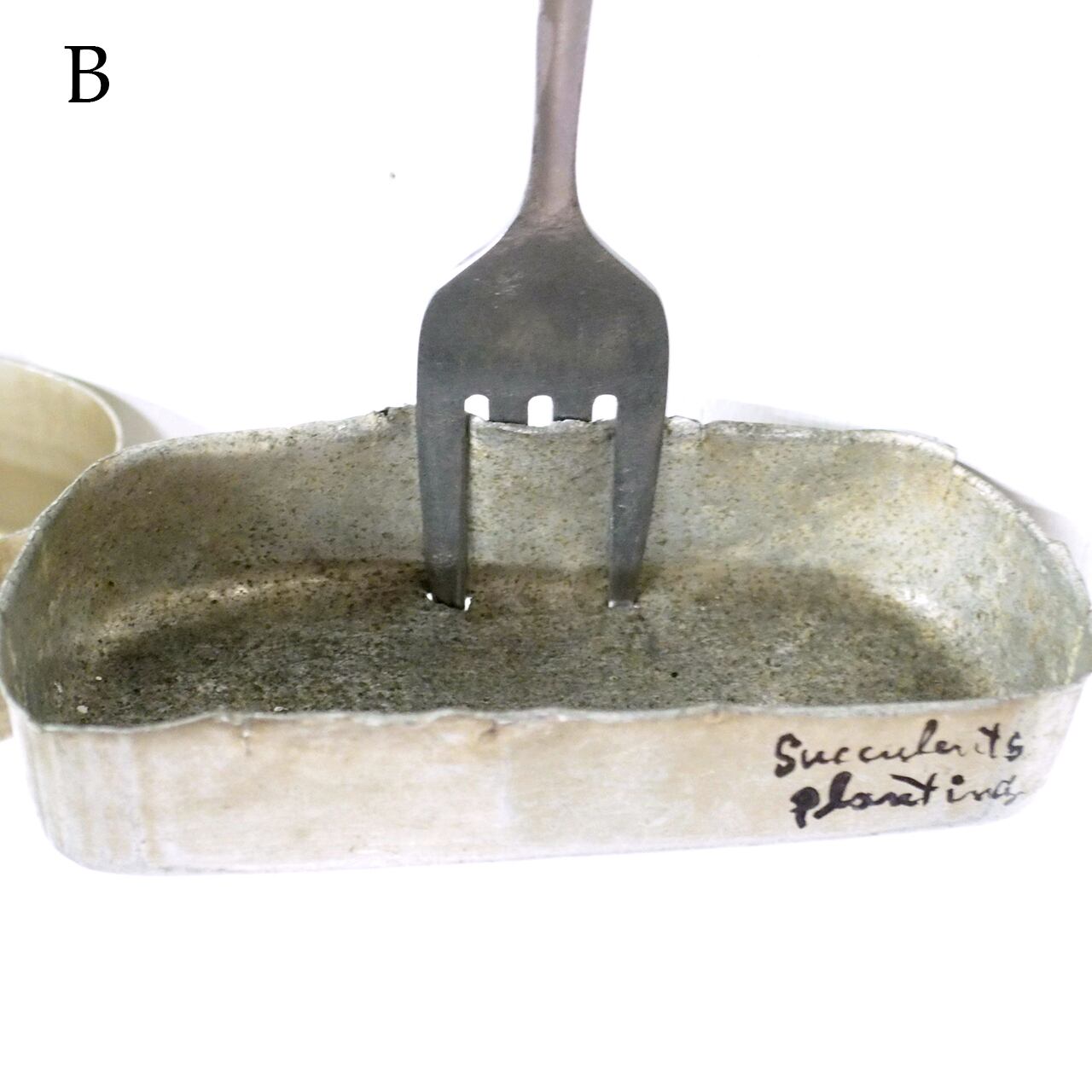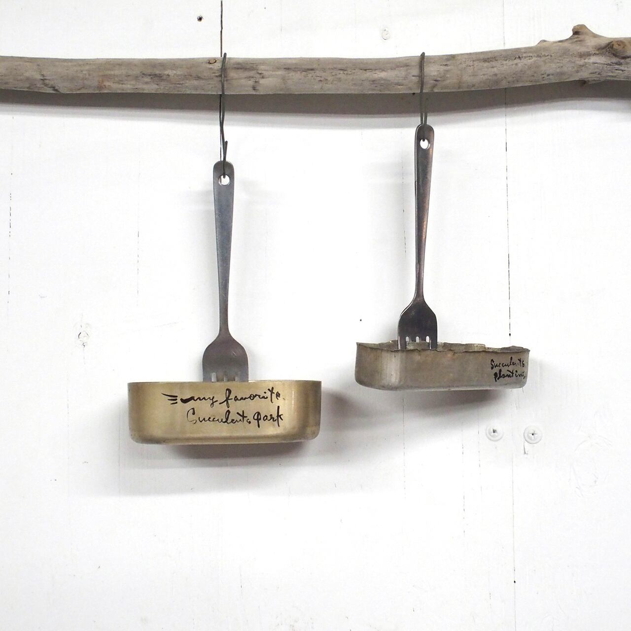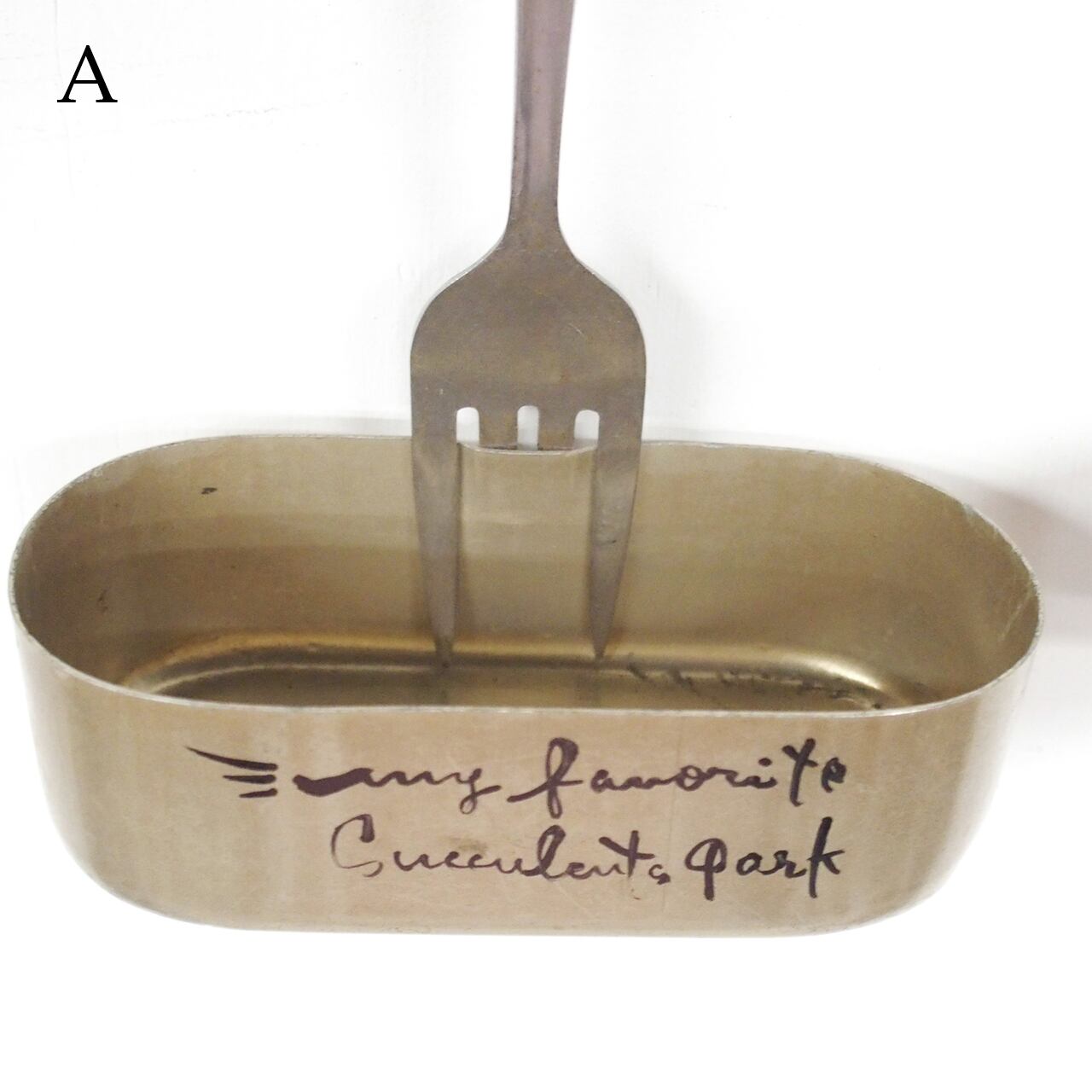 【リメイク古道具】多肉ランチ フォークミニプランター(弁当箱仕切りカップ)