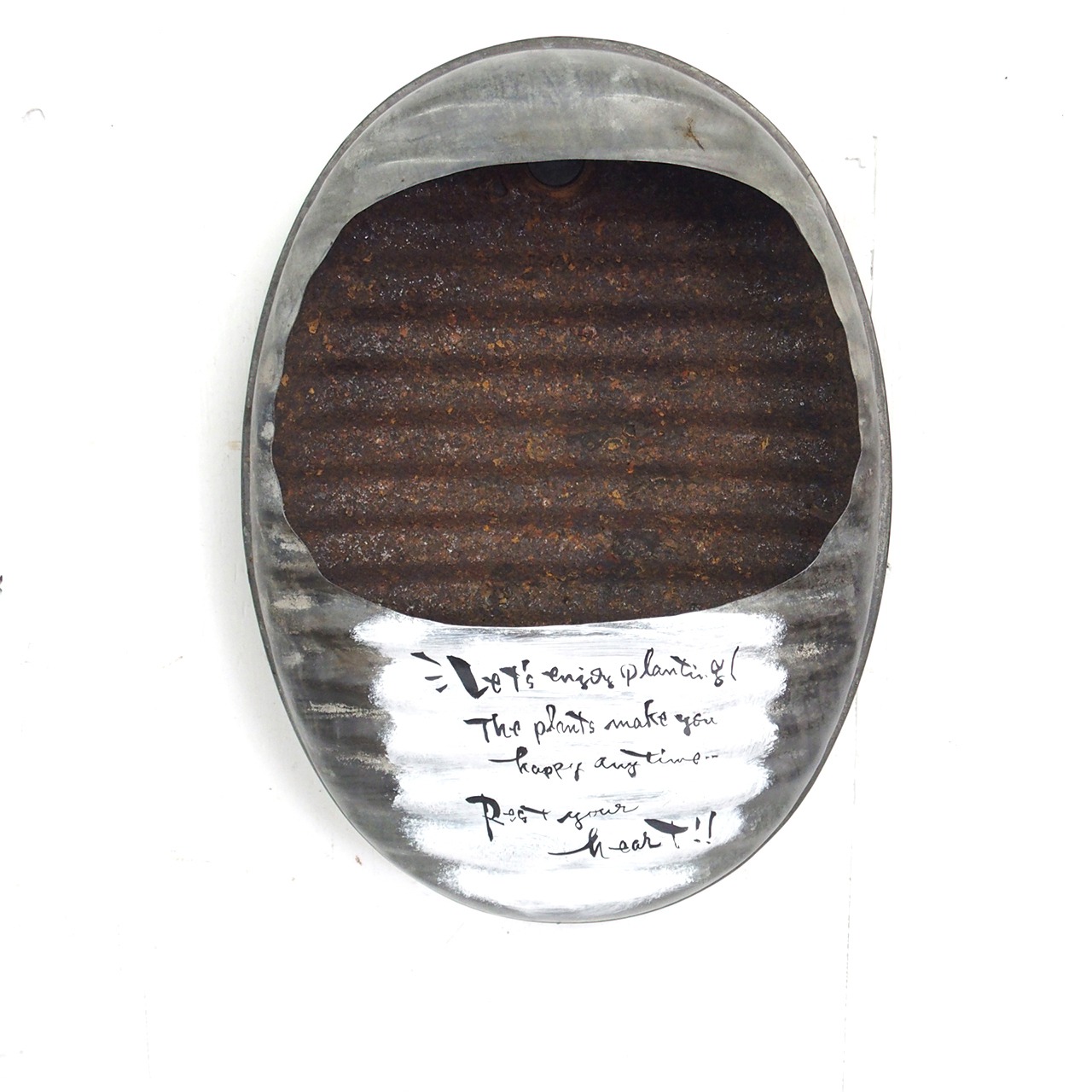 古い湯たんぽをくり貫いたプランターです。