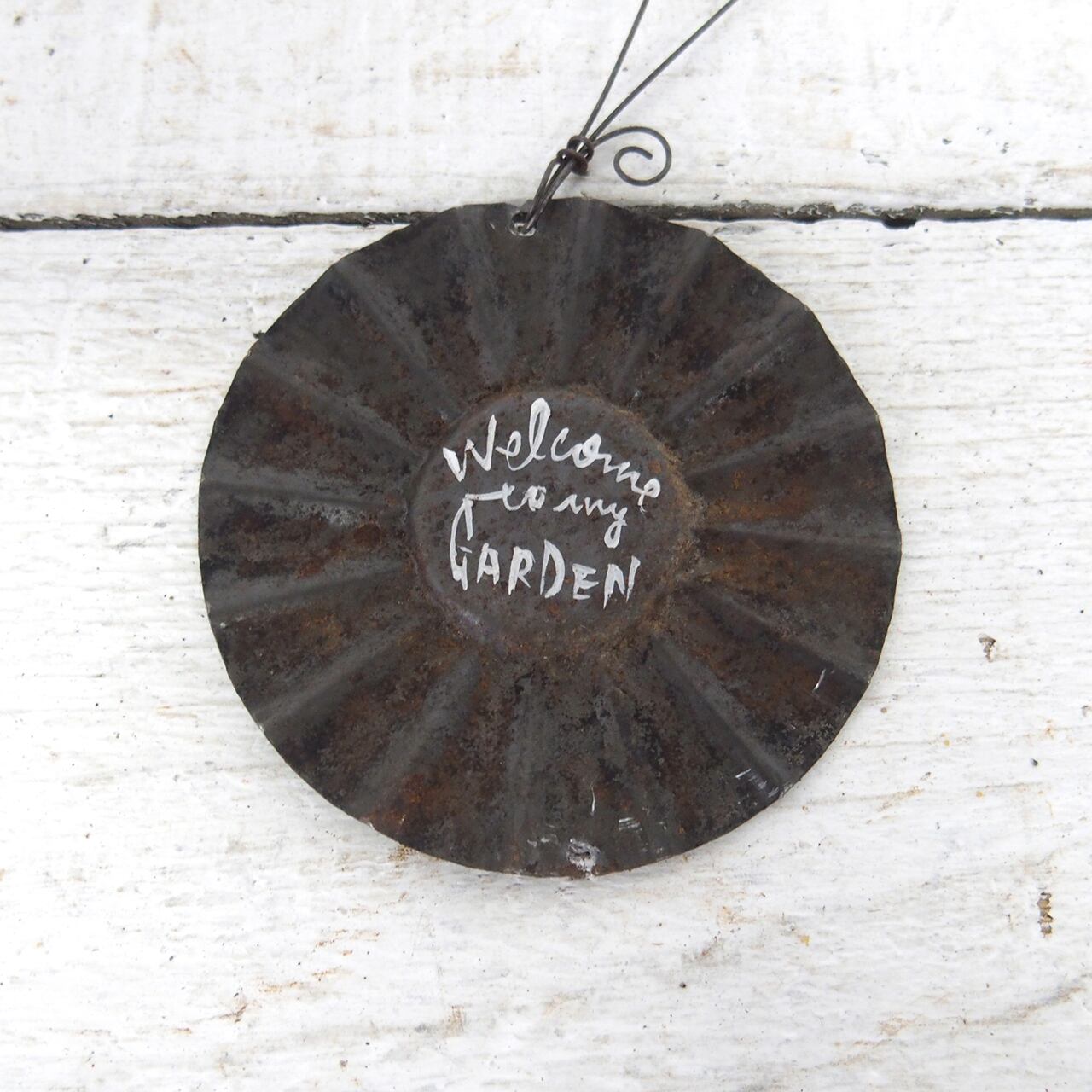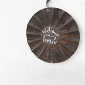 古いサビサビのマドレーヌの型を叩いて伸ばし文字を入れたサインです♪