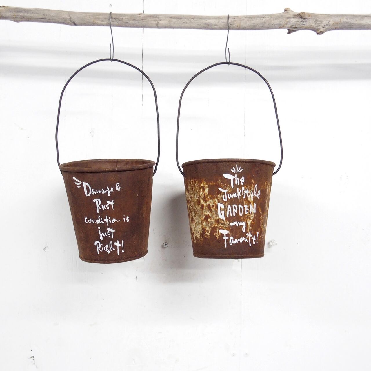 サビサビのプランターカバーに文字を入れたアレンジ作品です♪