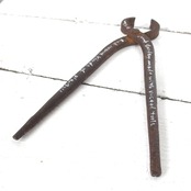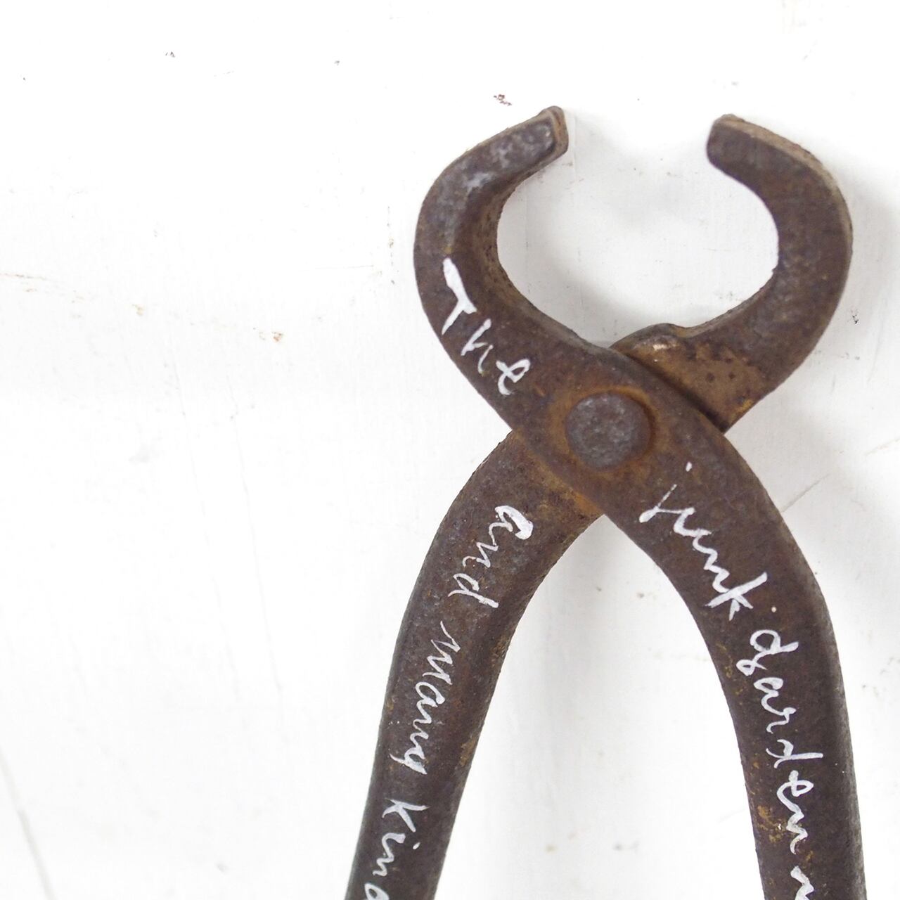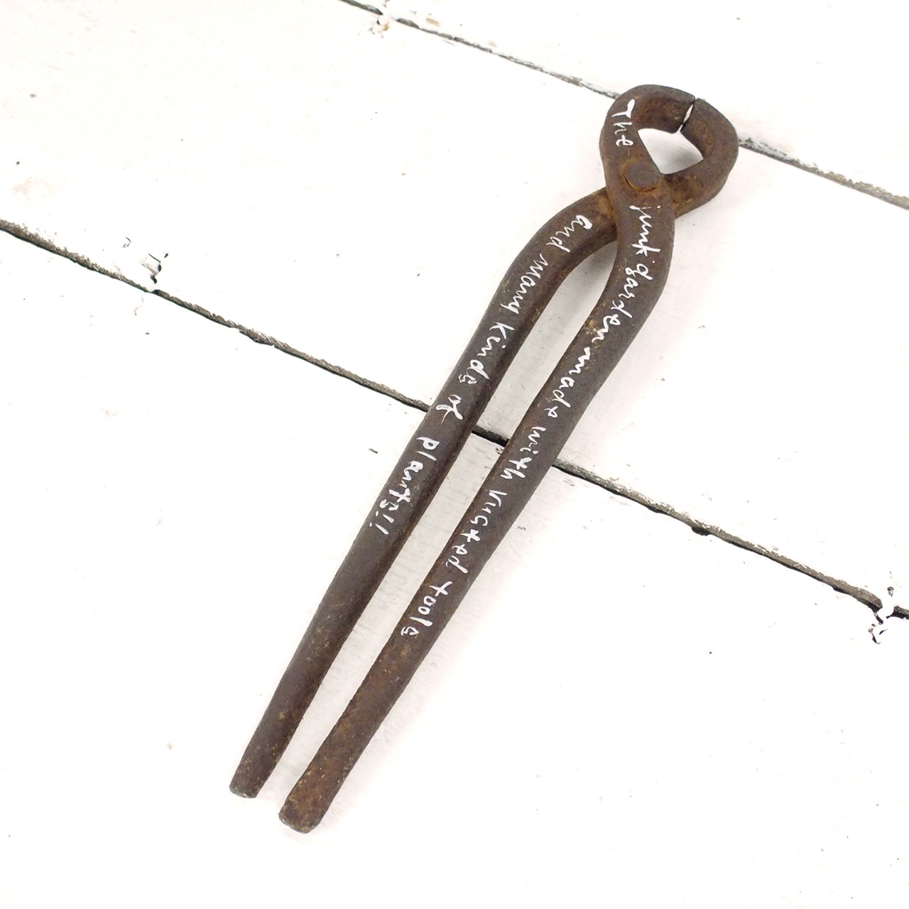古いサビサビの「ヤットコ」に文字を入れたサインです。