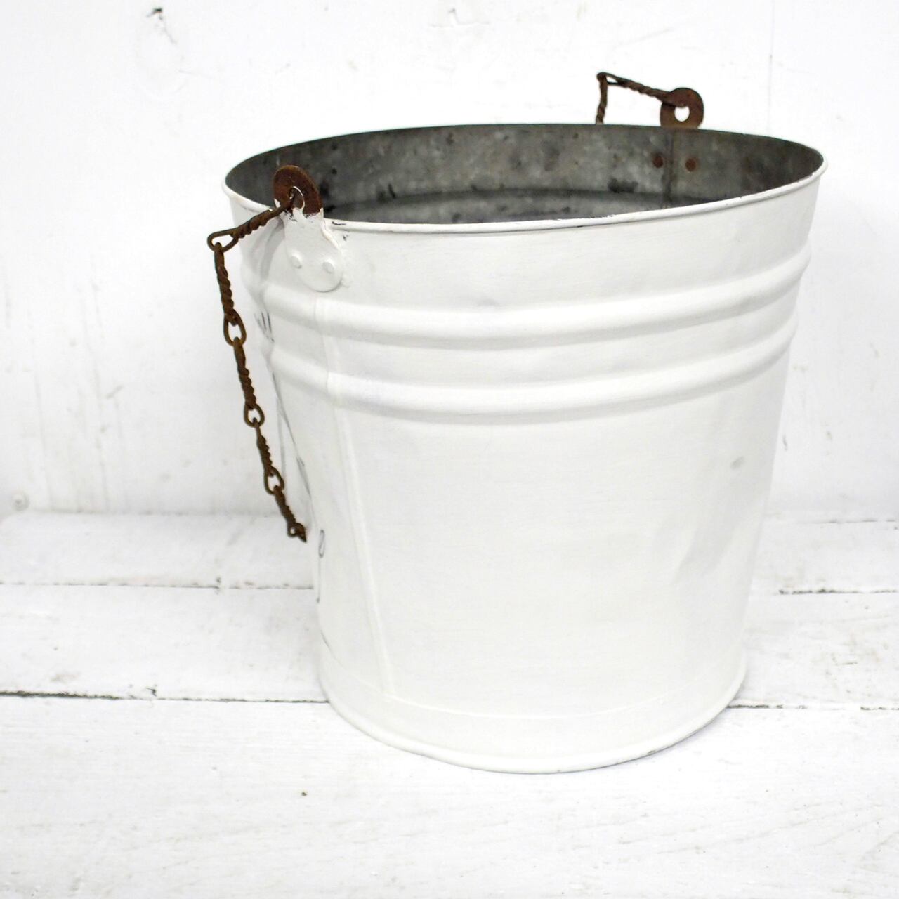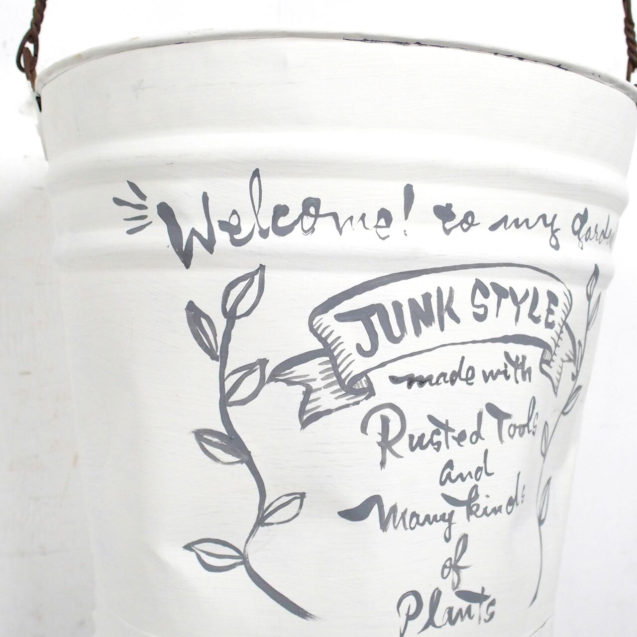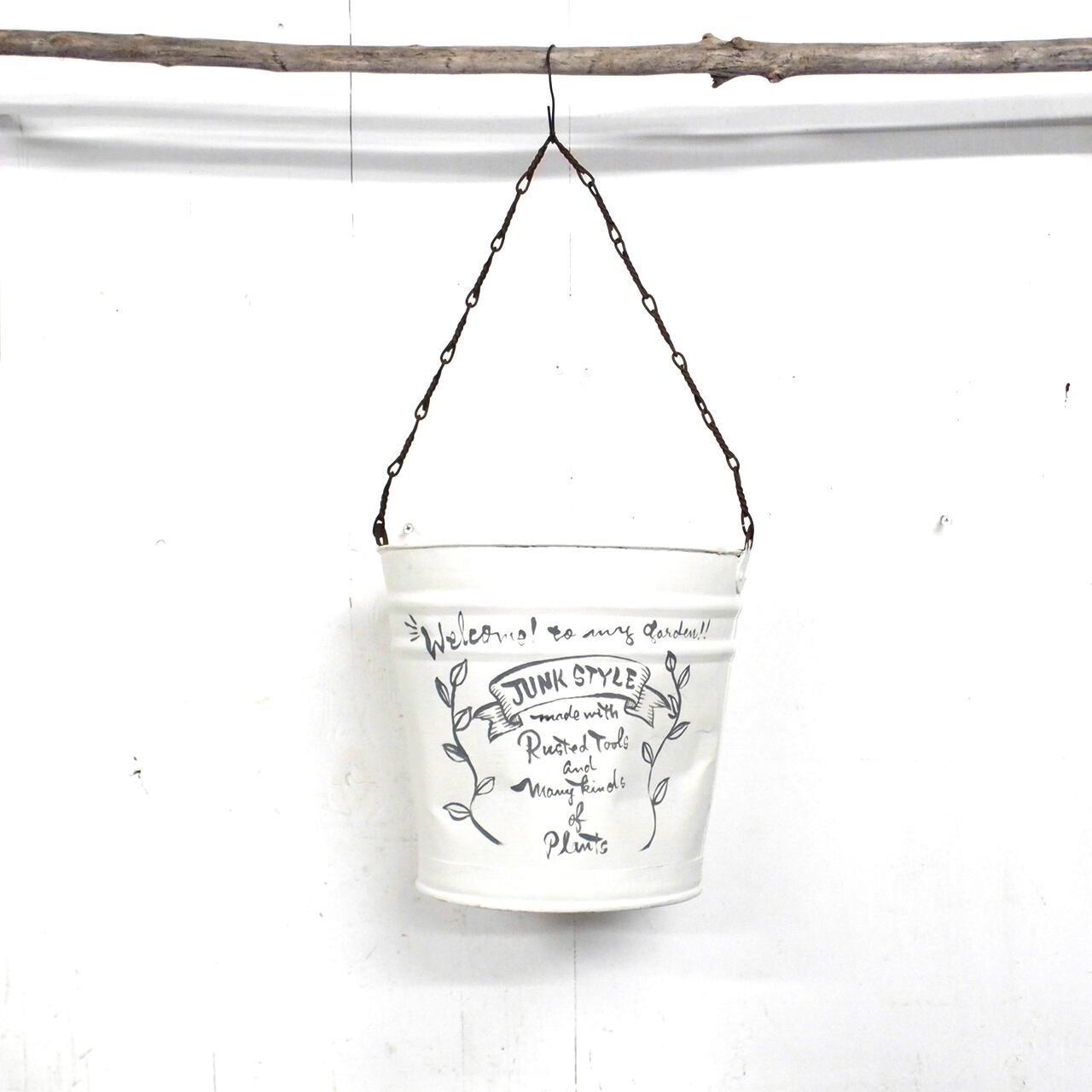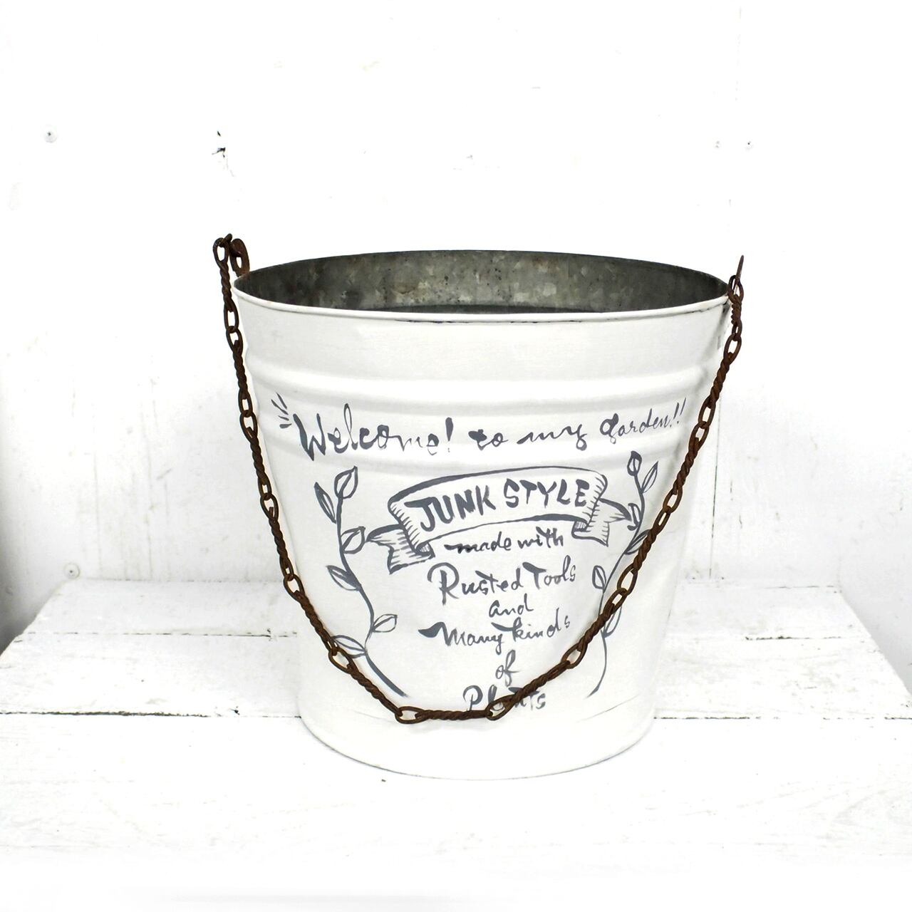 【リメイクバケツ】ブリキのバケツアレンジ チェーン仕様 WH