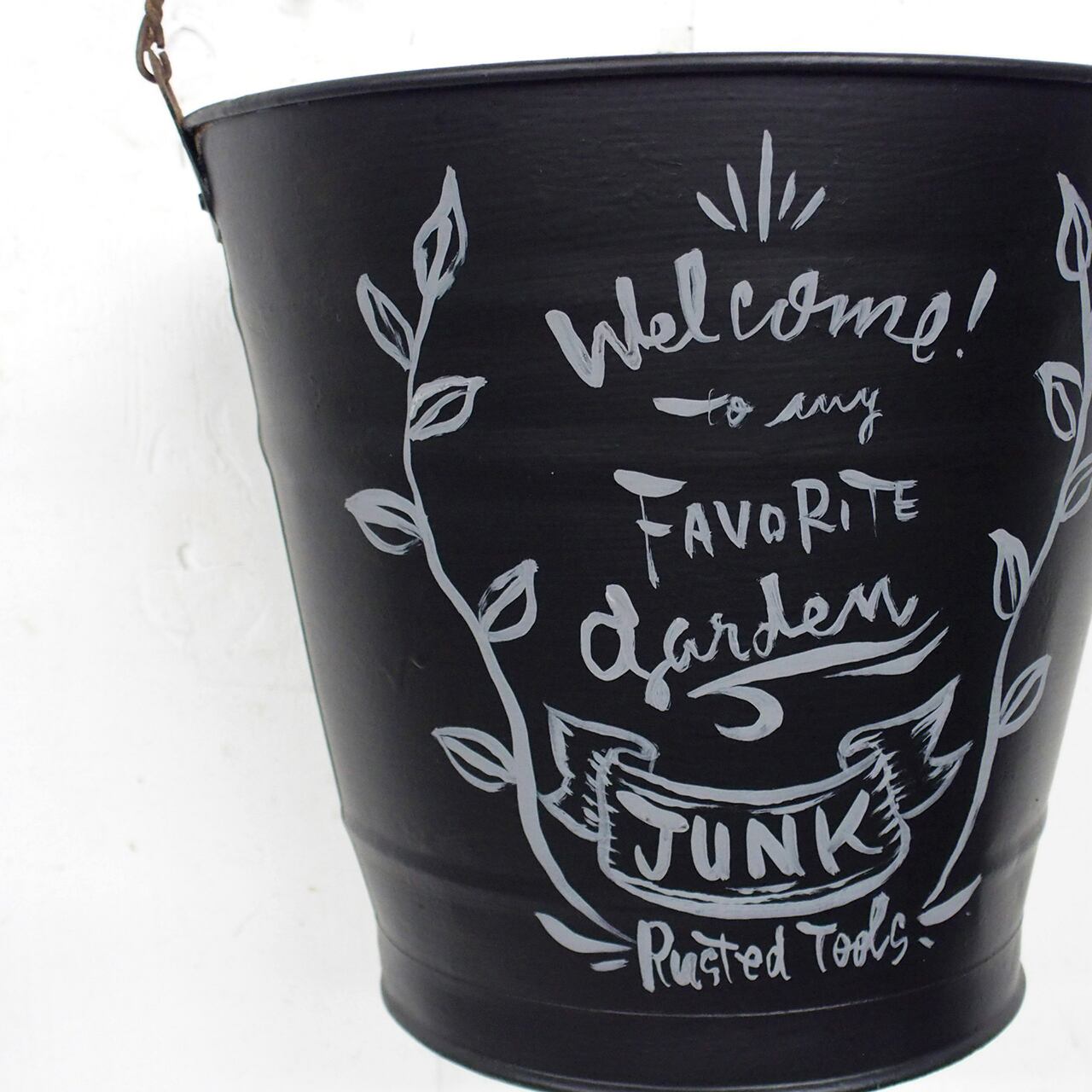 ジャンクな古いブリキのバケツをペイントリメイクしました♪