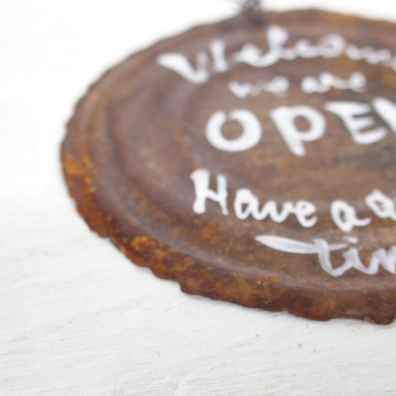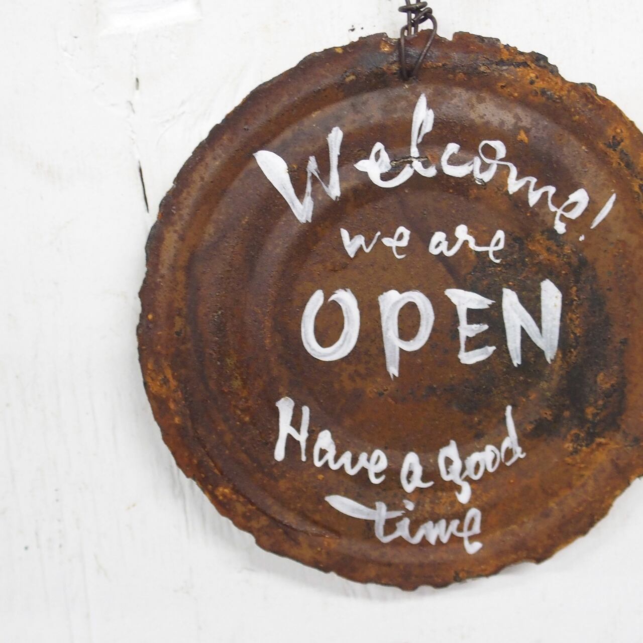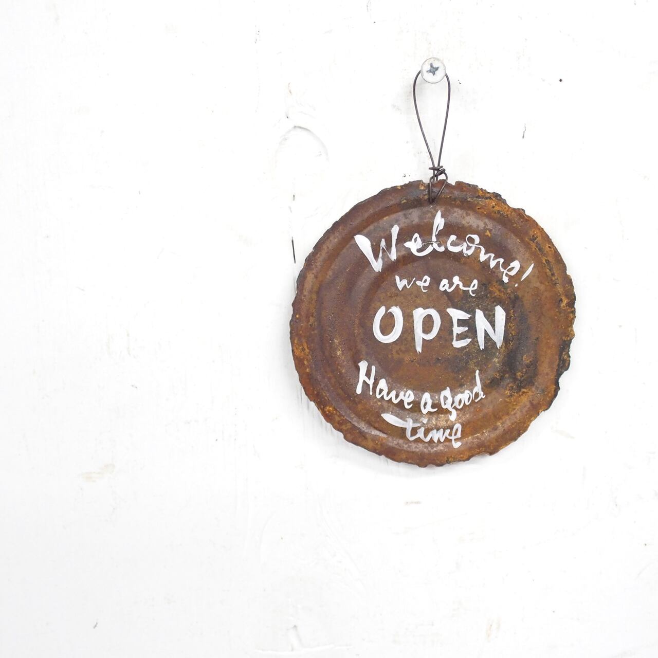 丸い缶の蓋に文字を入れたガーデンサインです!!