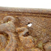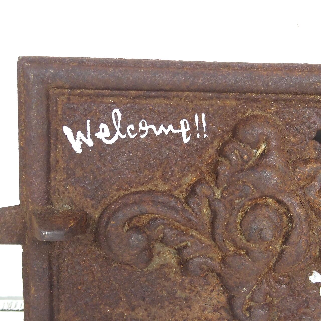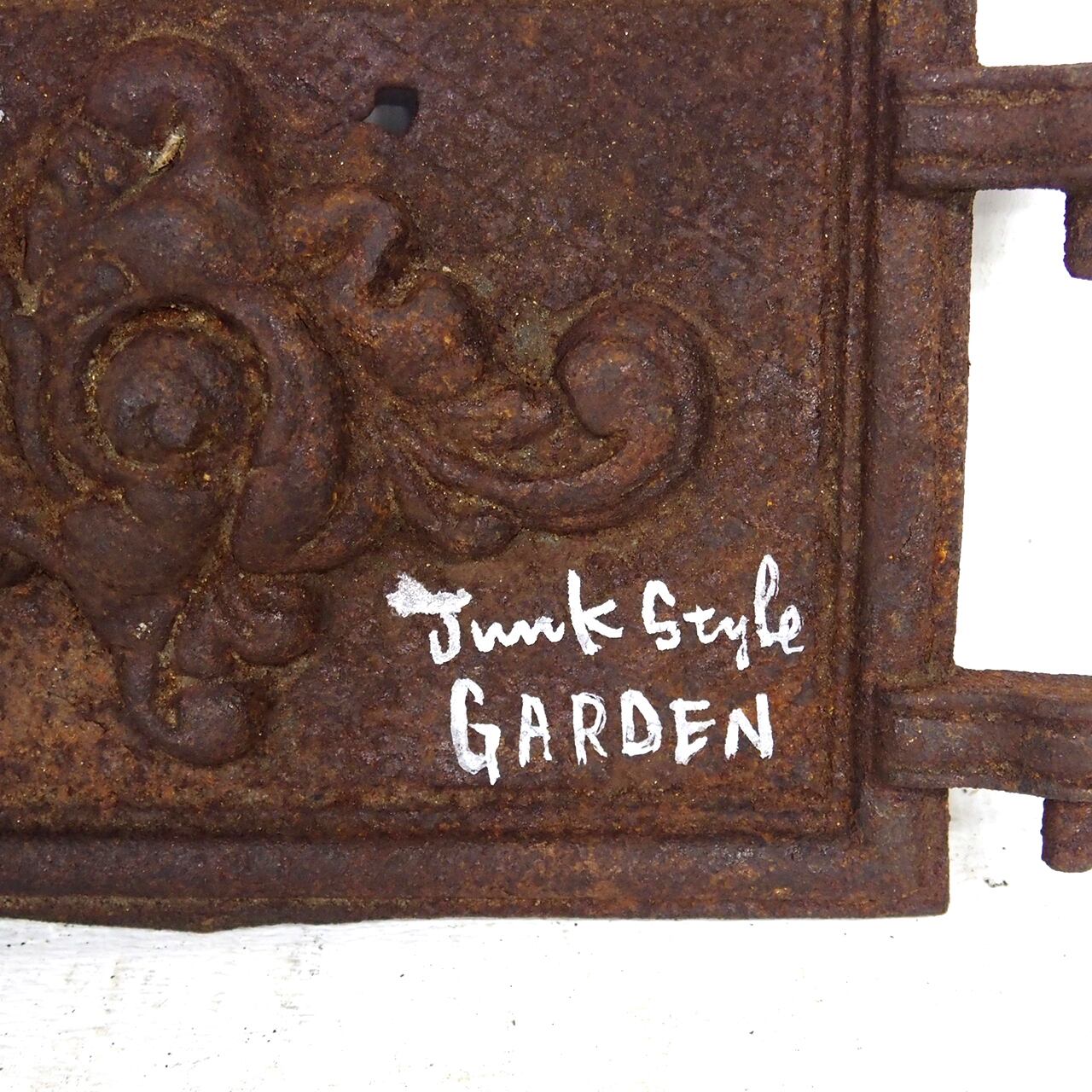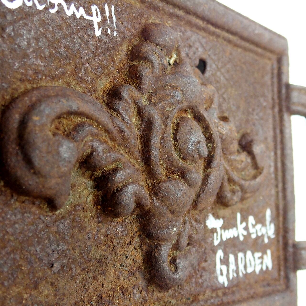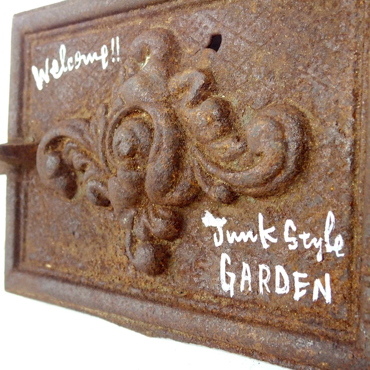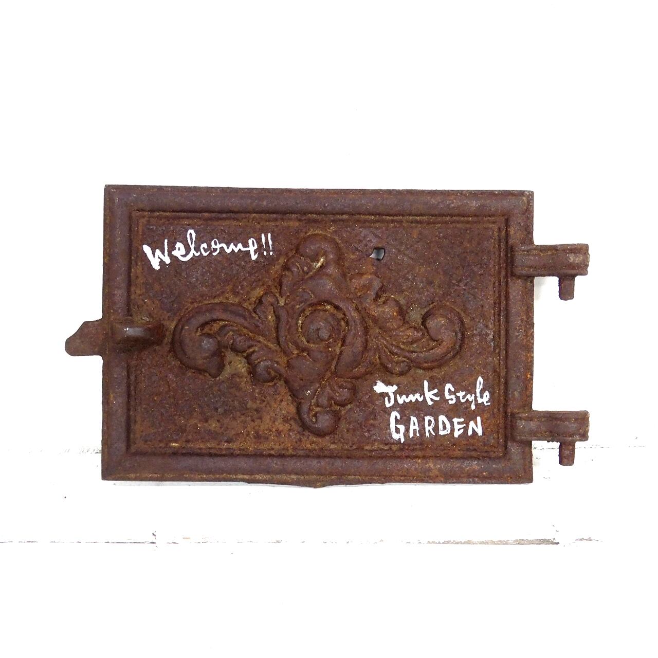 サビサビで雰囲気のある古いストーブか何かの「口」に文字を入れたガーデンサインです♪