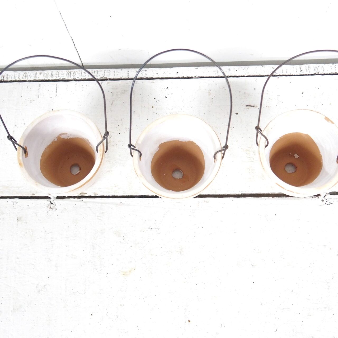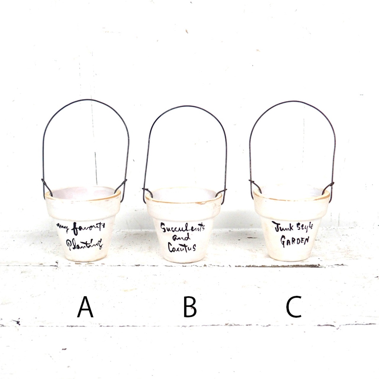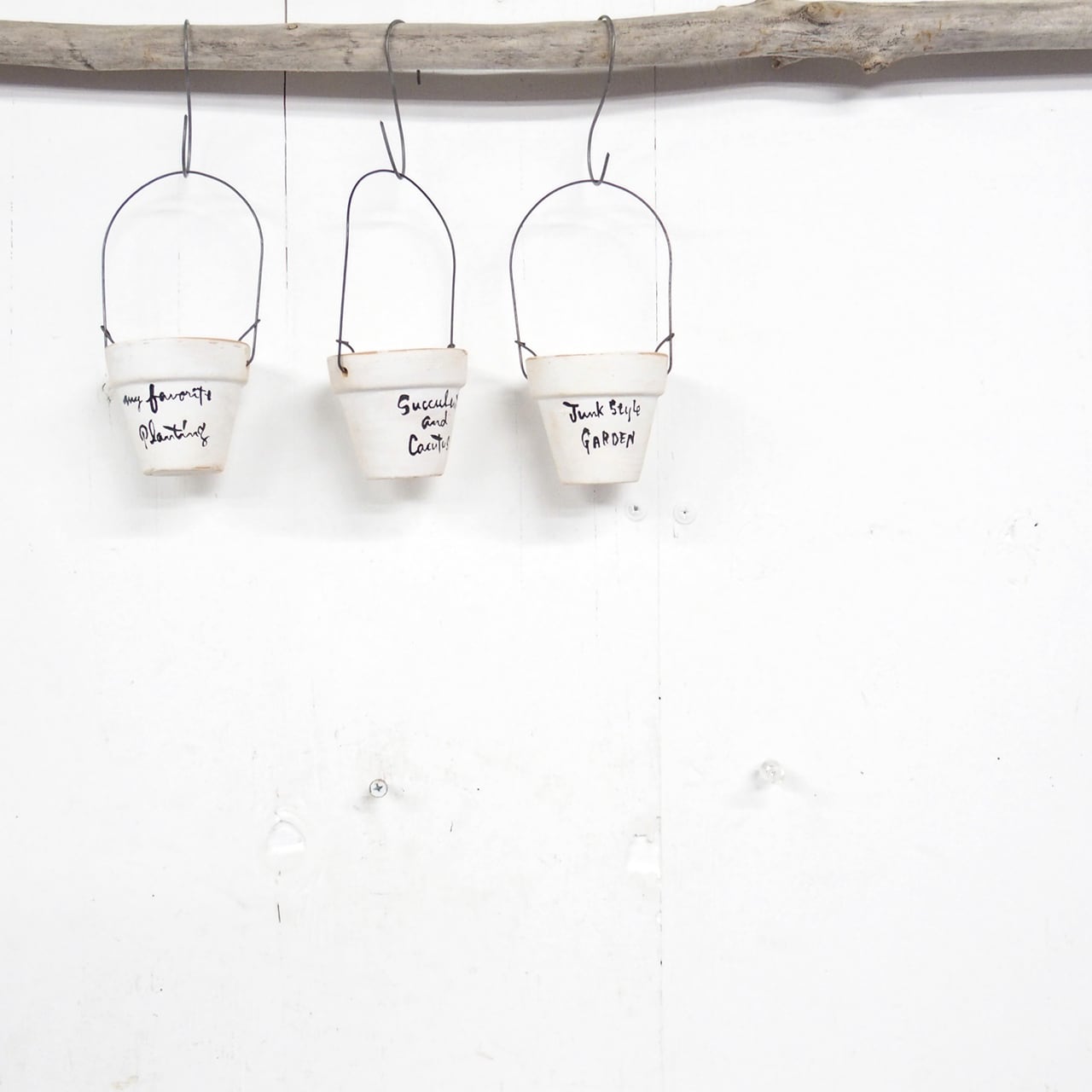 可愛い小さな鉢をホワイトのシャビー塗装でアンティーク風アレンジ。