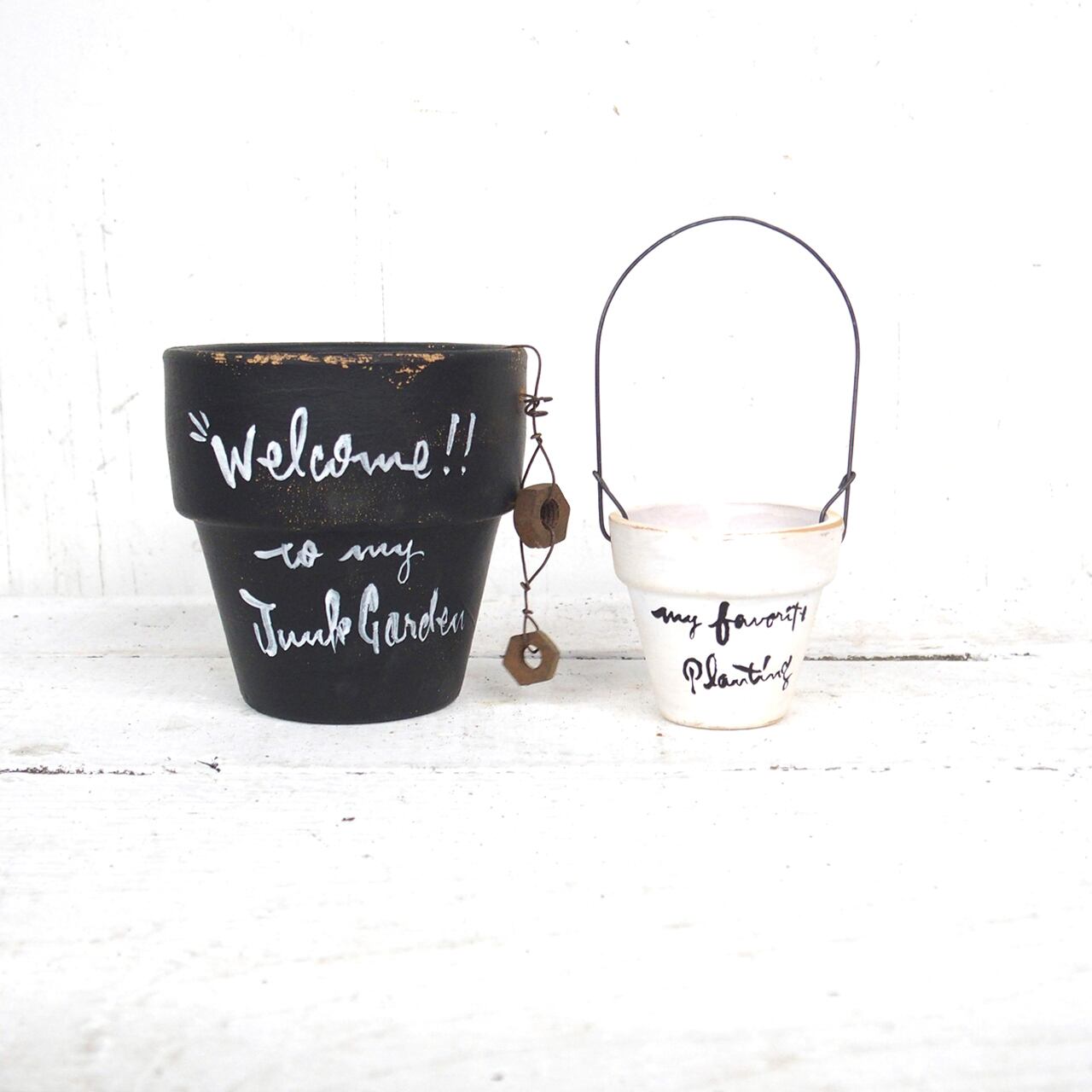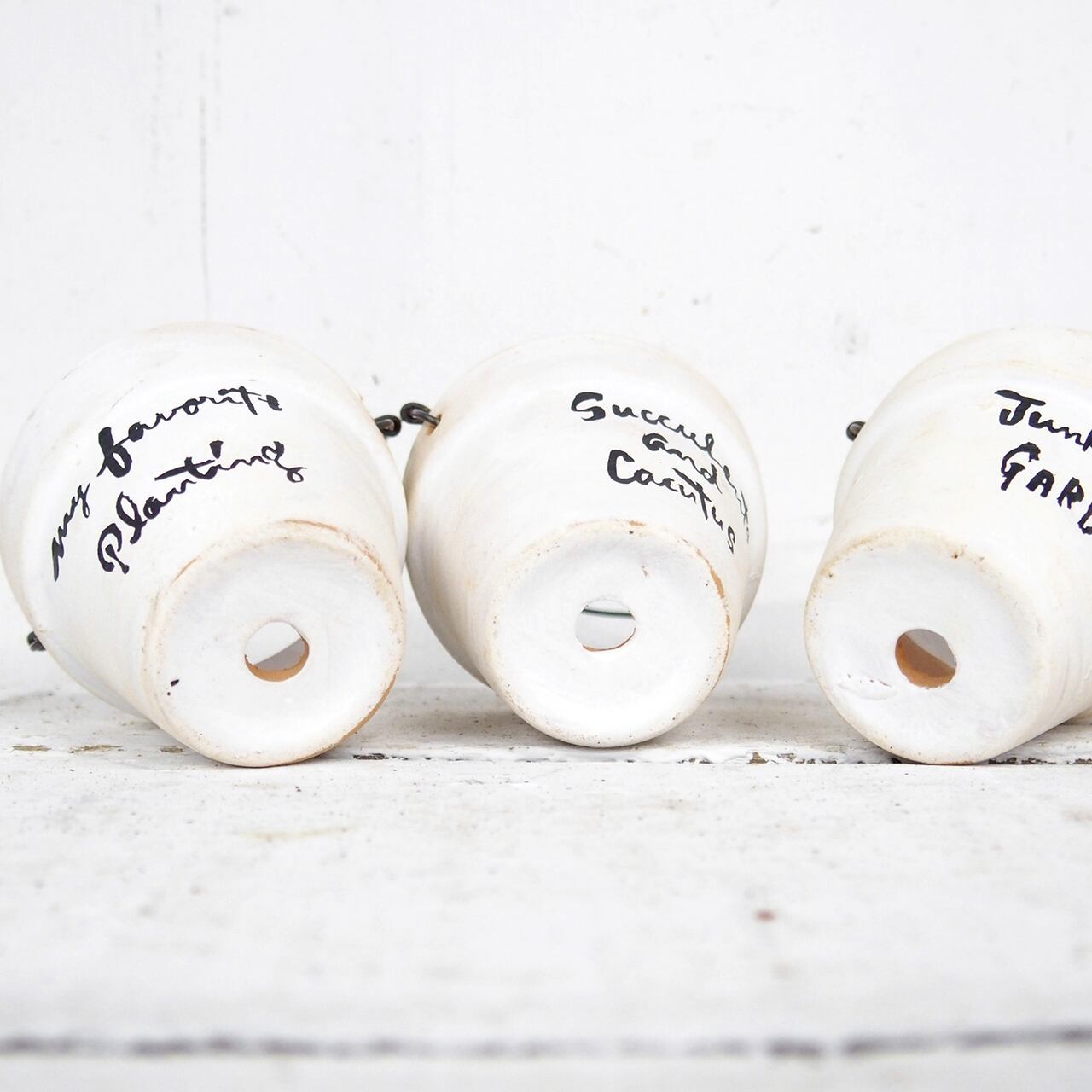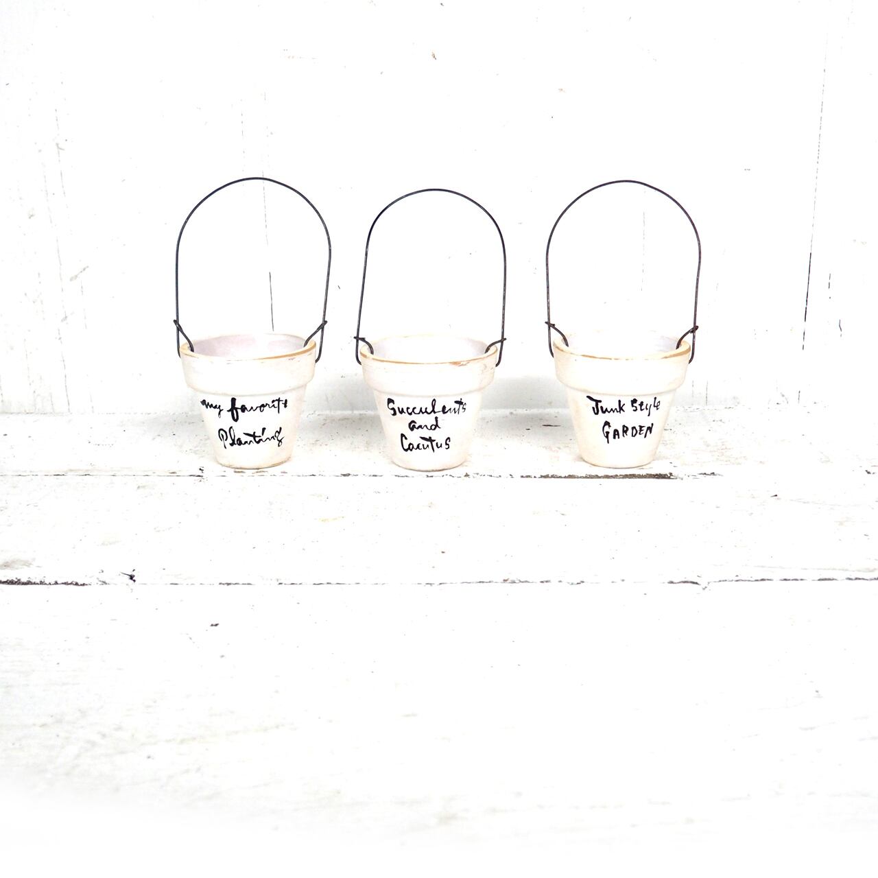 可愛い小さな鉢をホワイトのシャビー塗装でアンティーク風アレンジ。