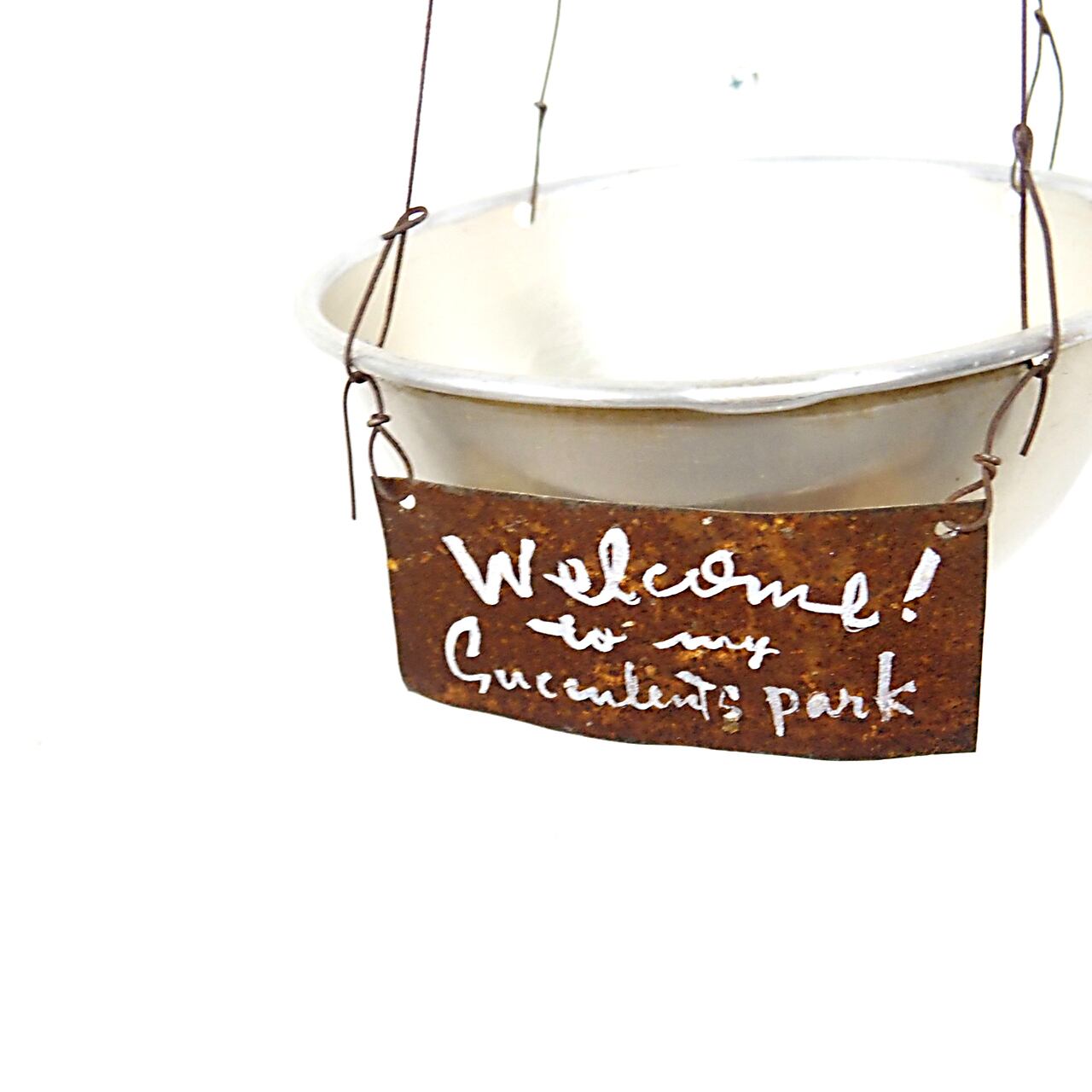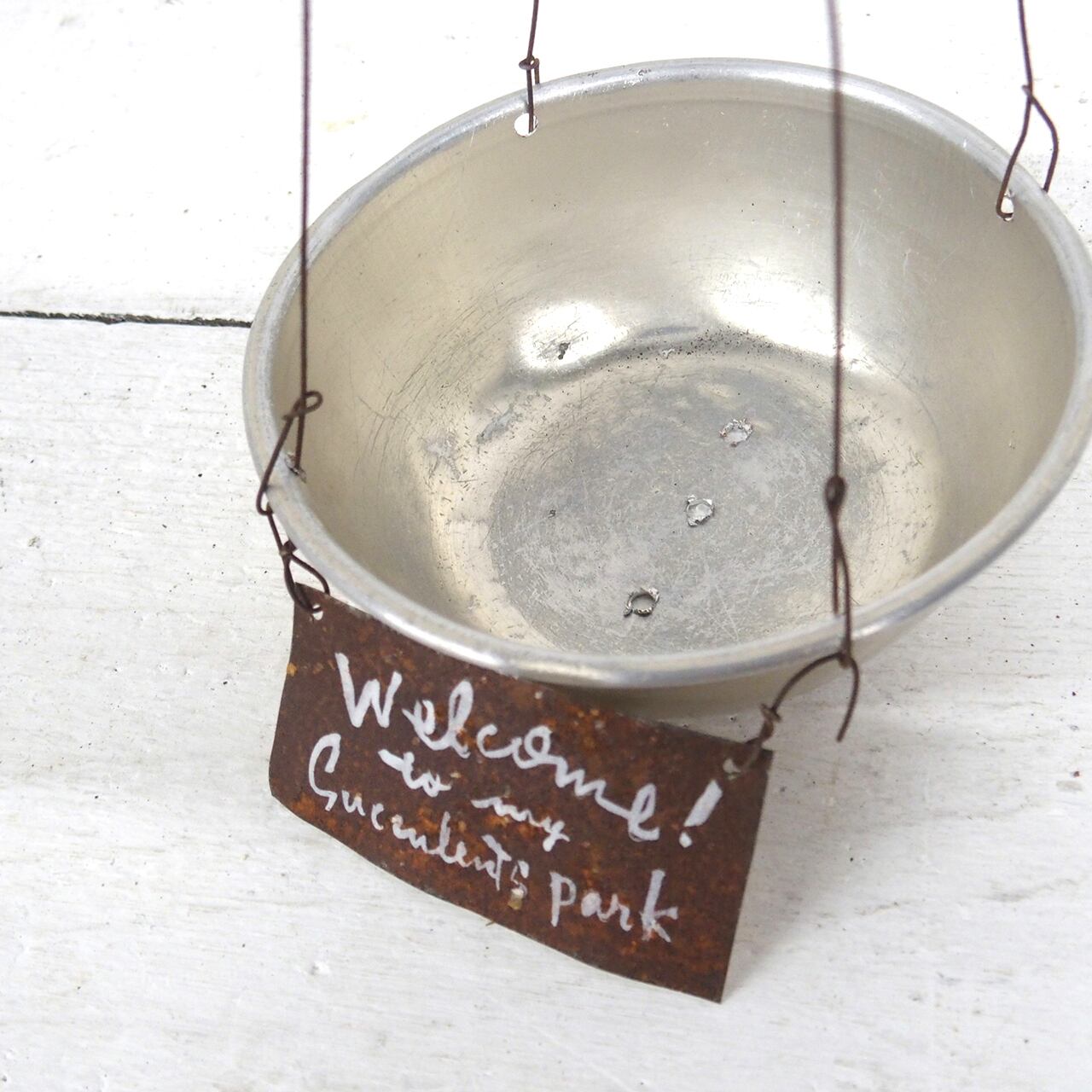 【リメイク】アルミカップのハンギングプランター サビサビプレート付き