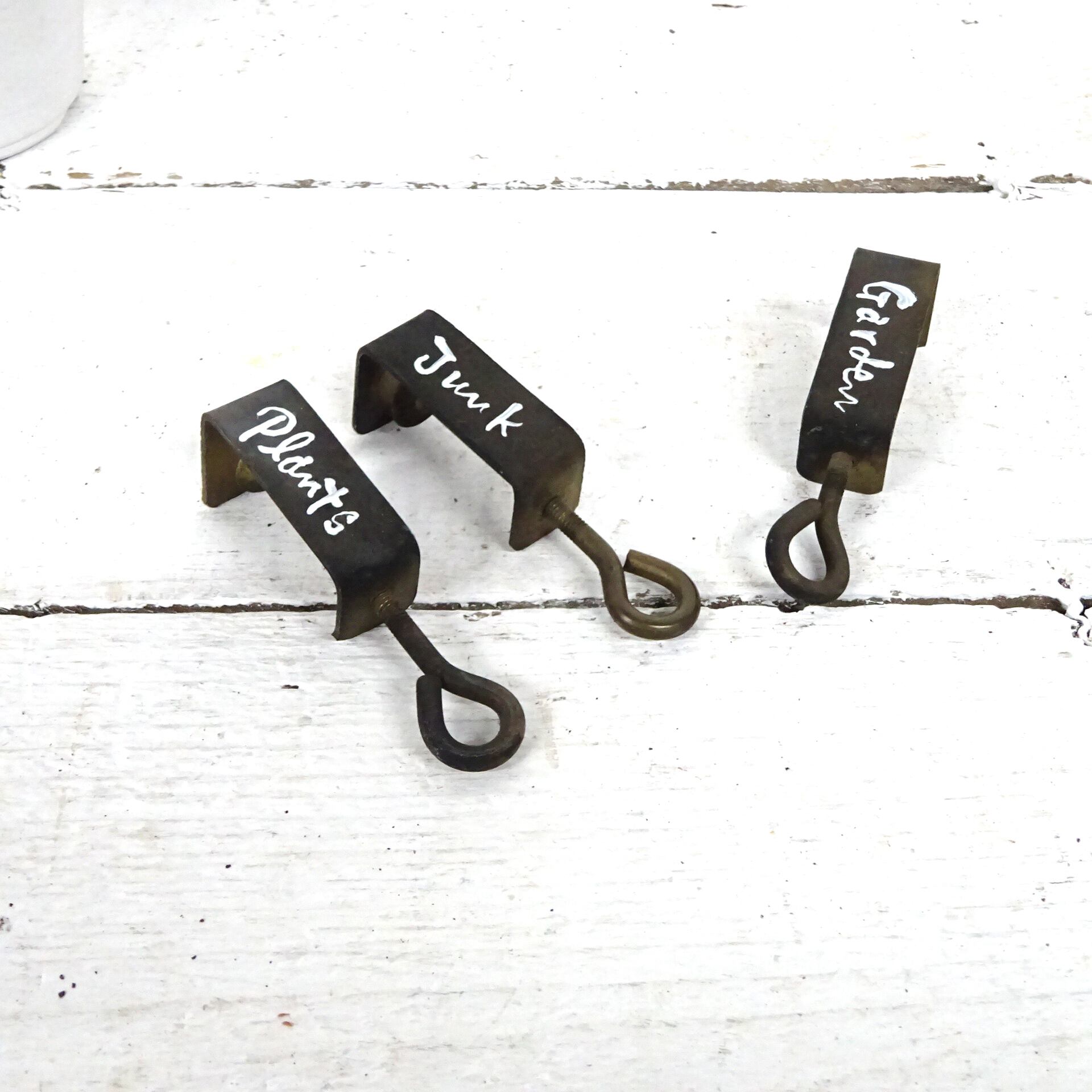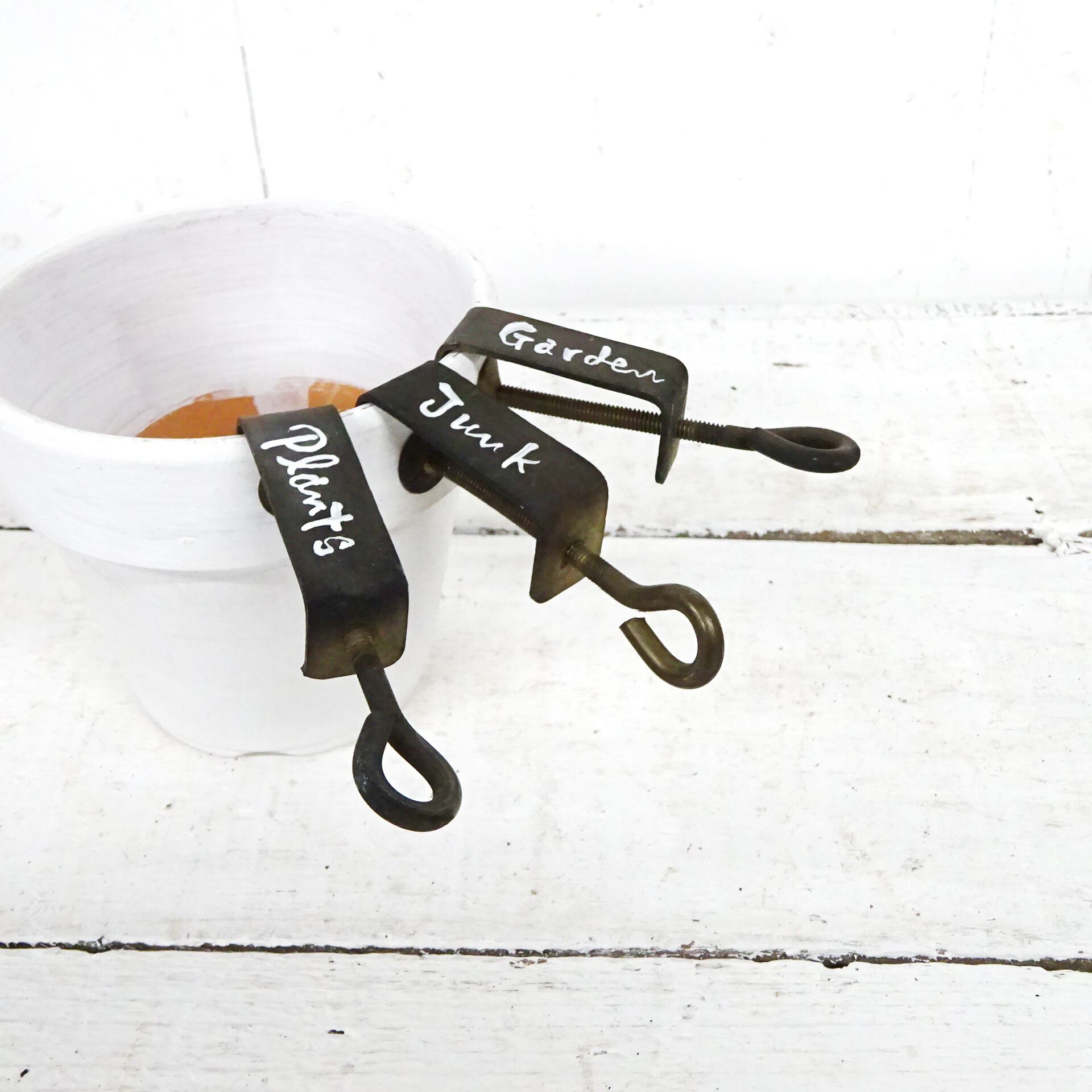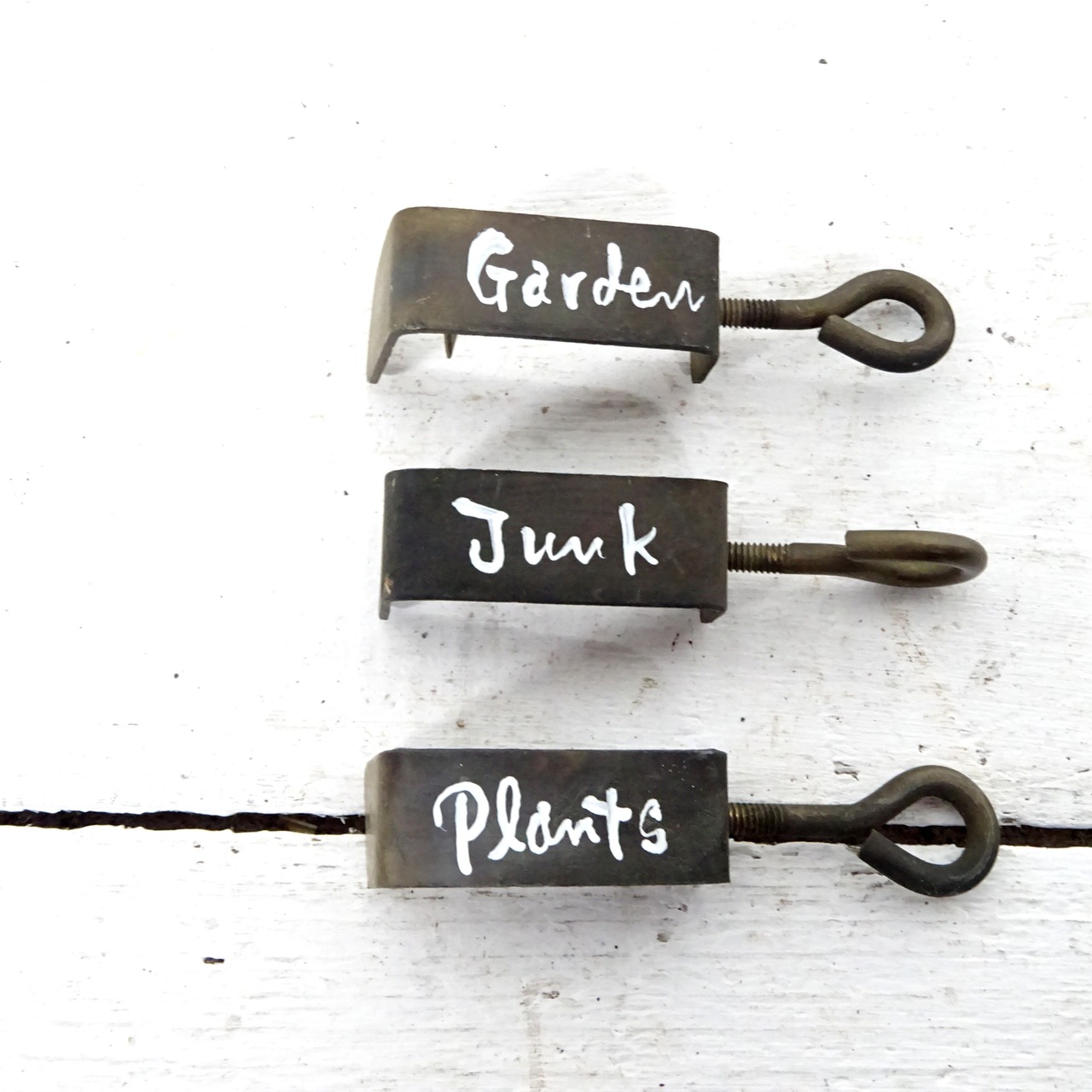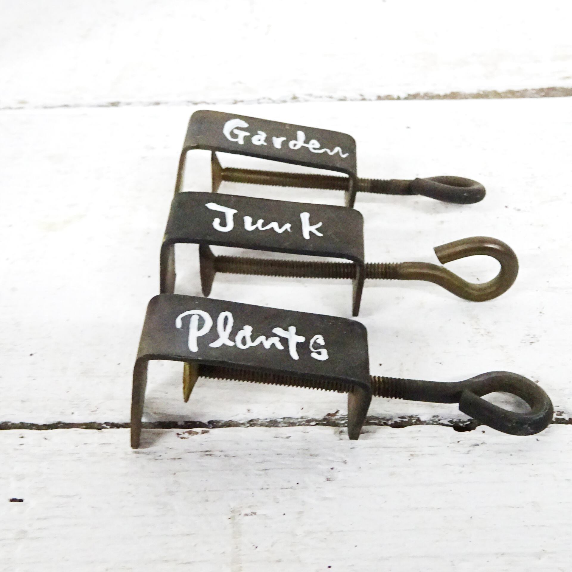 古い真鍮のクランプに文字を入れたプランターチャームです♪
