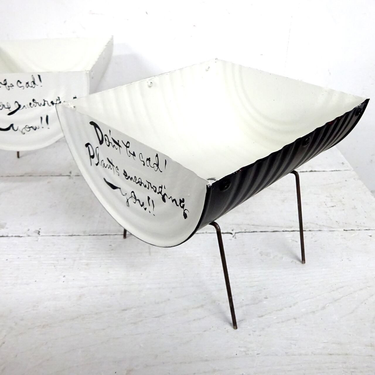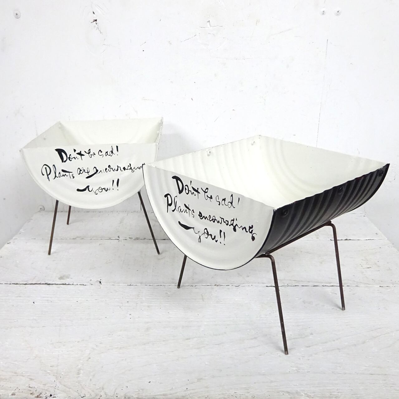 業務用缶を縦に切って繋いだコンロタイプのリメ缶プランターです♪