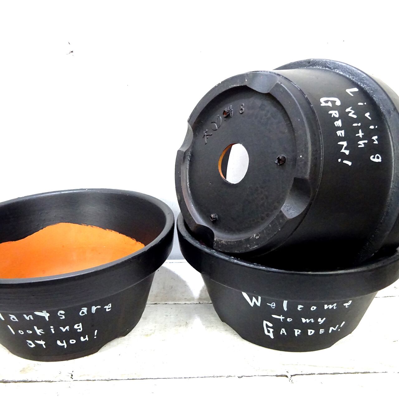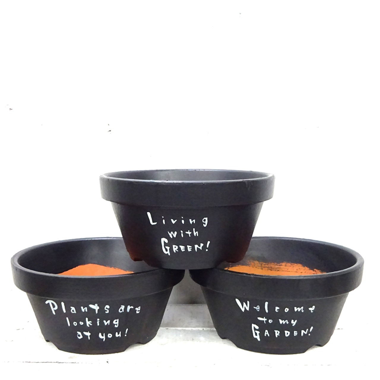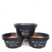 デッドストックの素焼き鉢をペイントし文字を入れました♪