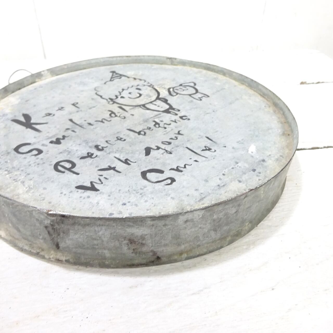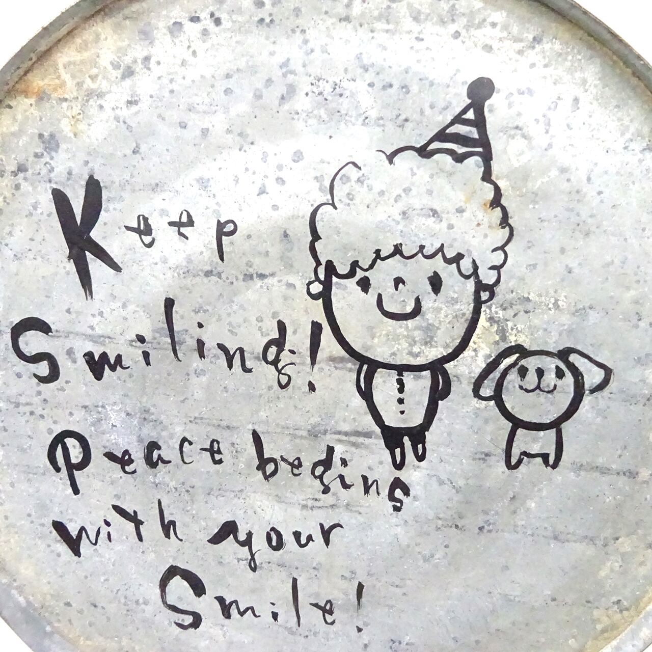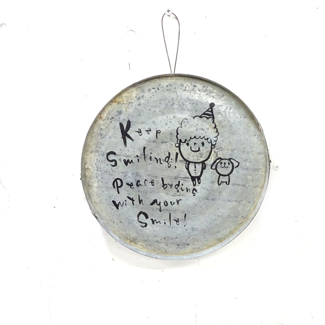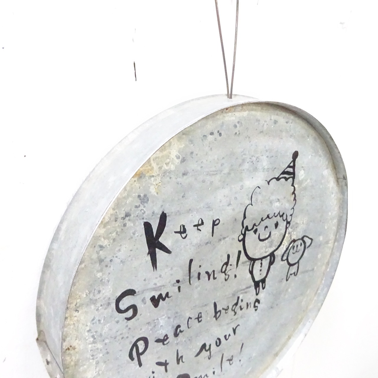 【リメイクサイン】ブリキ丸サイン Keep smiling 男の子