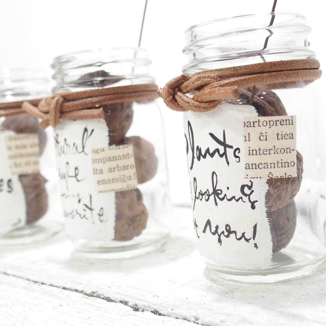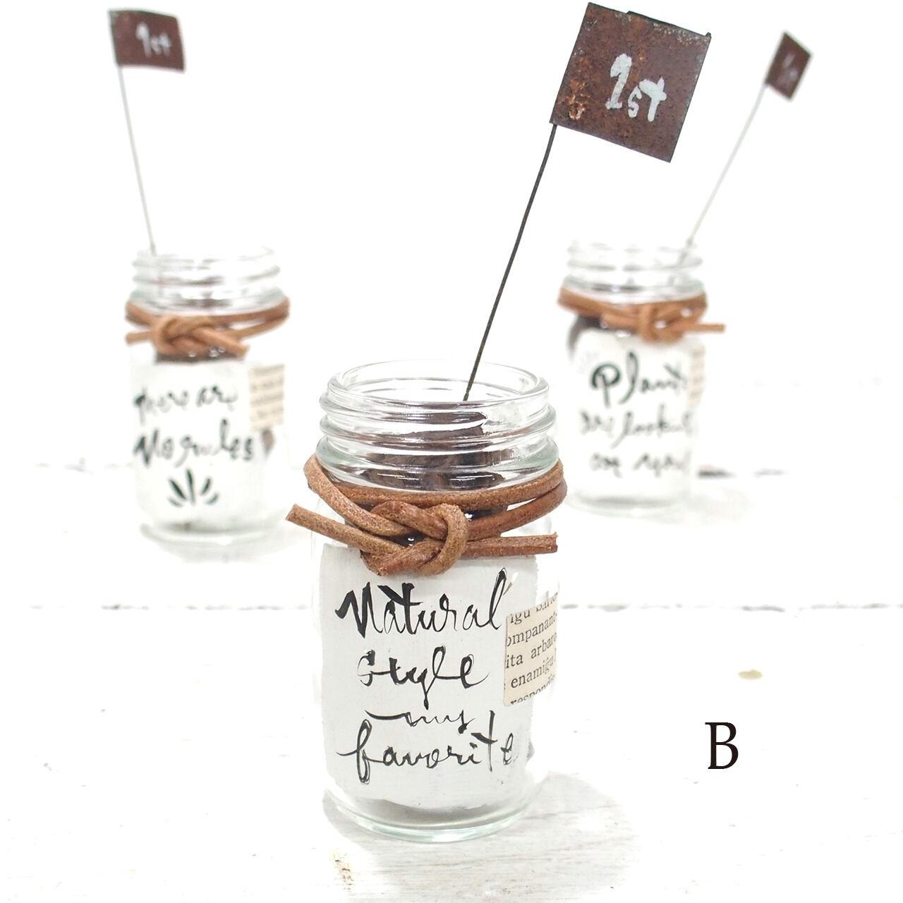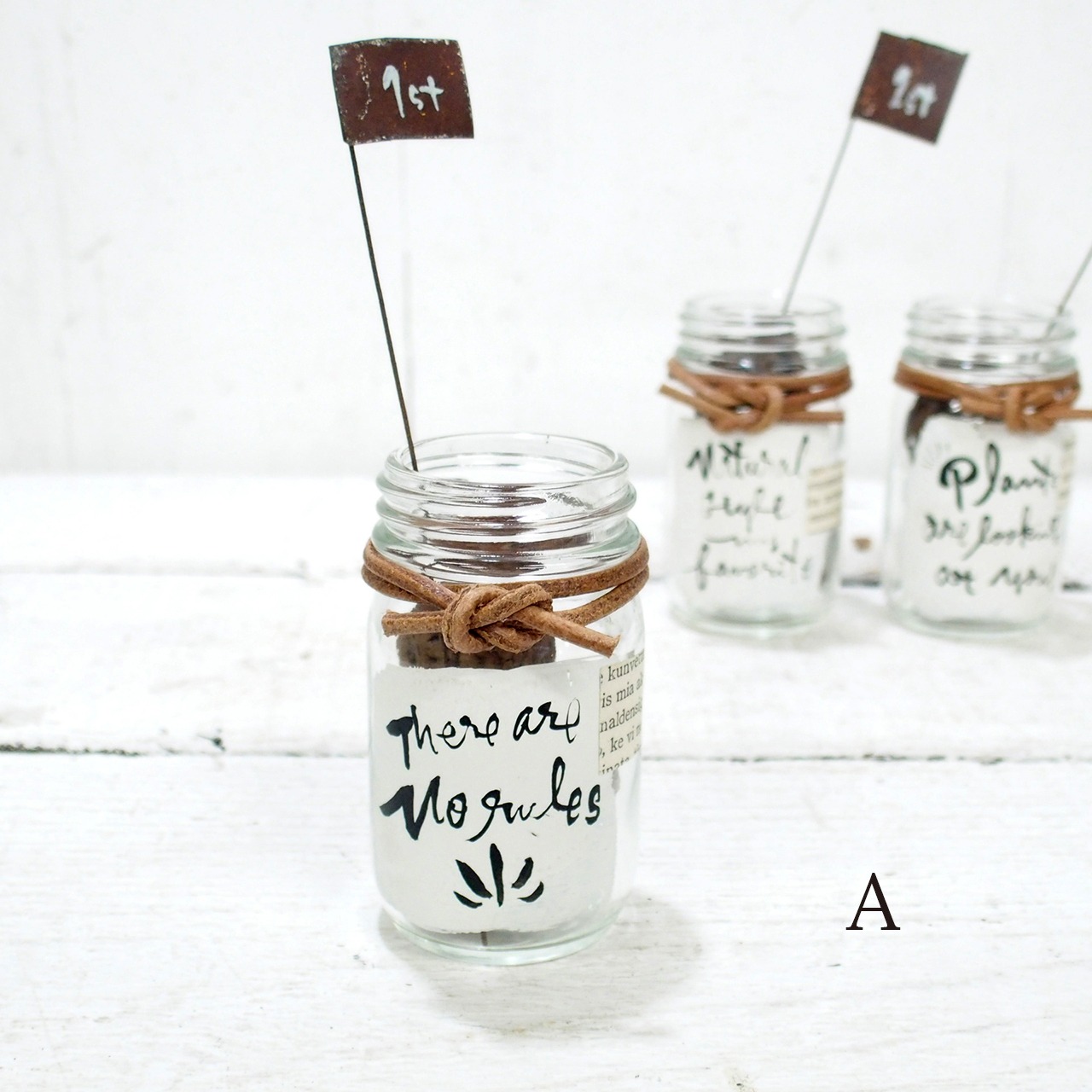 デッドストックの小瓶に文字を入れたりアレンジしました♪