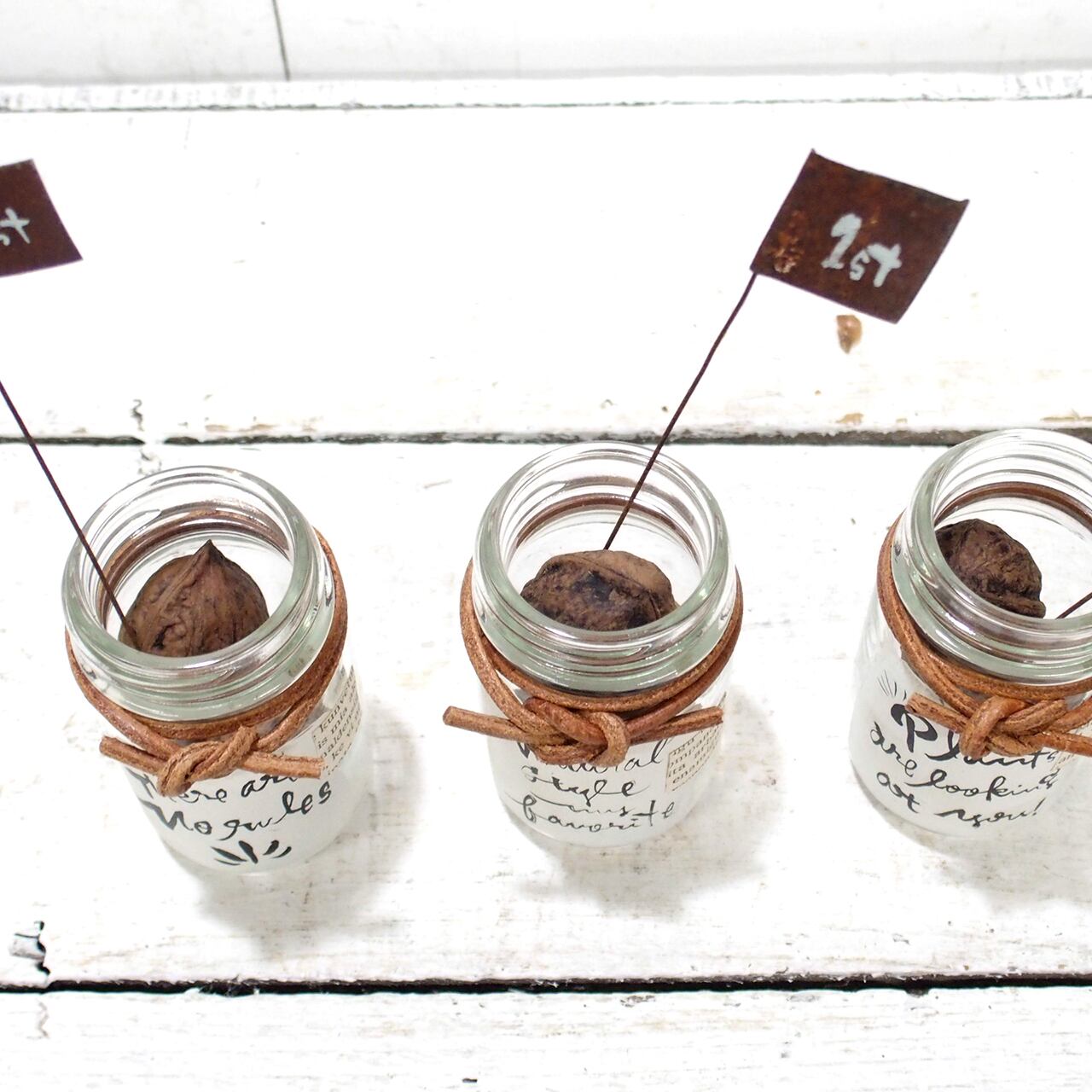 【インテリア】小瓶アレンジ くるみ&ピック付き