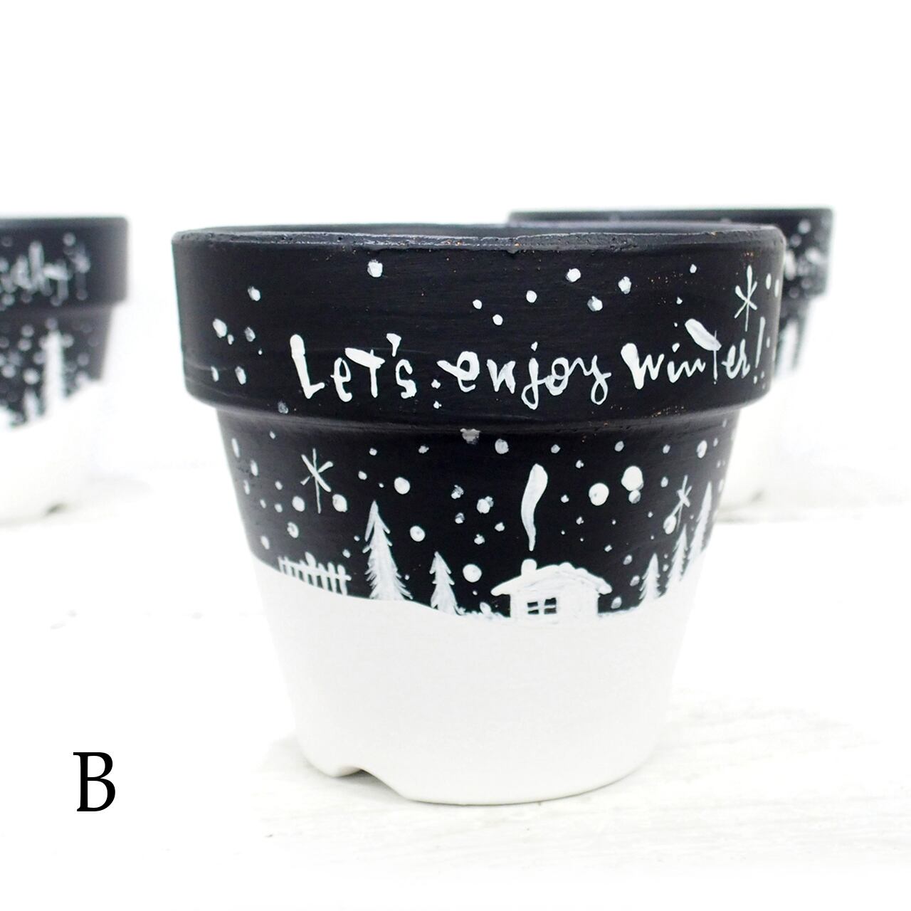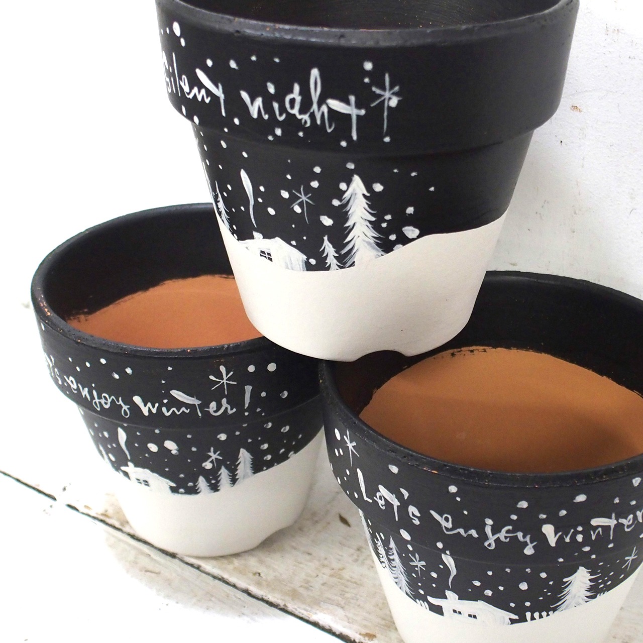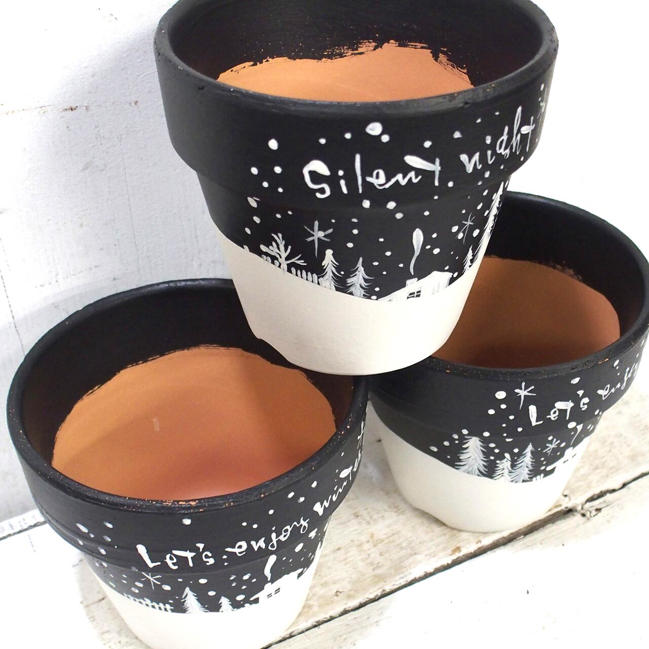 素焼き鉢をペイントし冬バージョンに♪