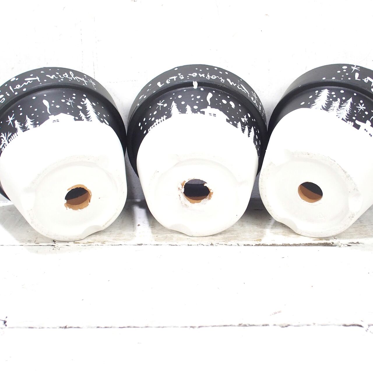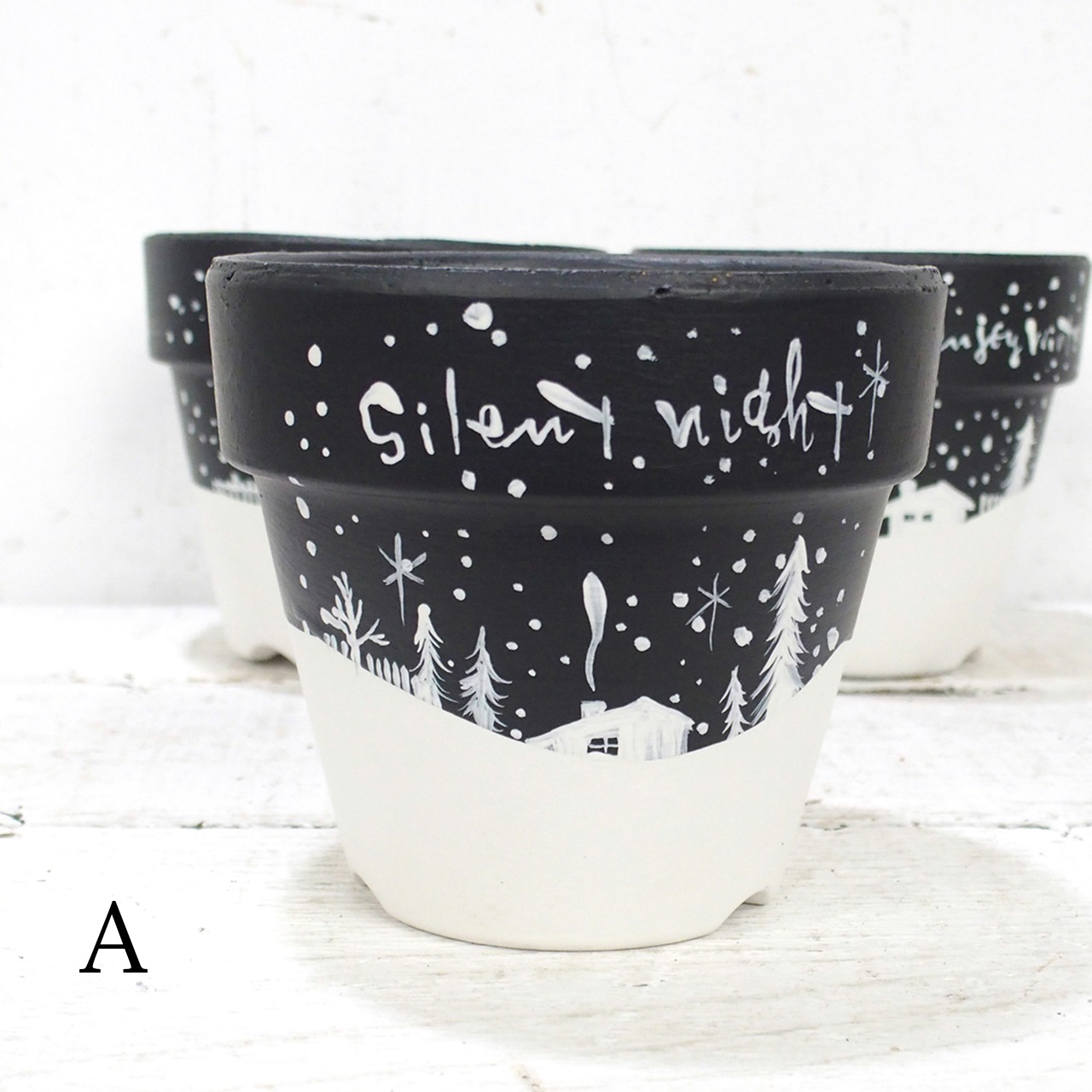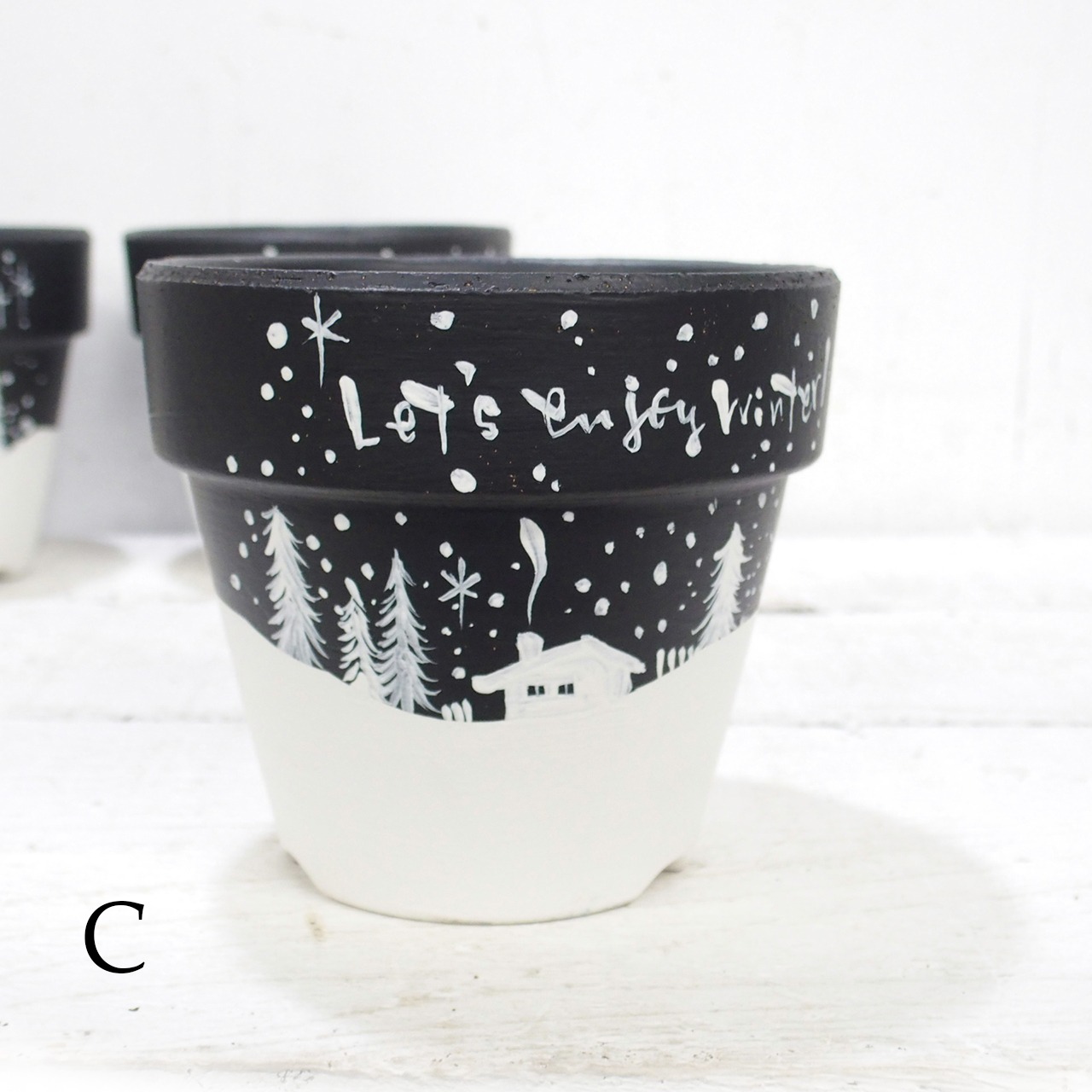 素焼き鉢をペイントし冬バージョンに♪