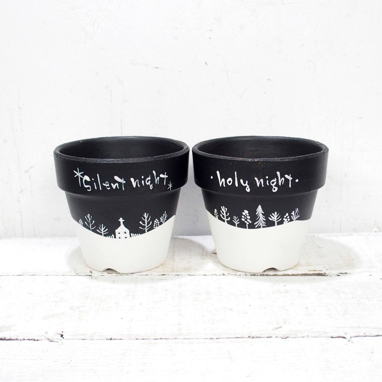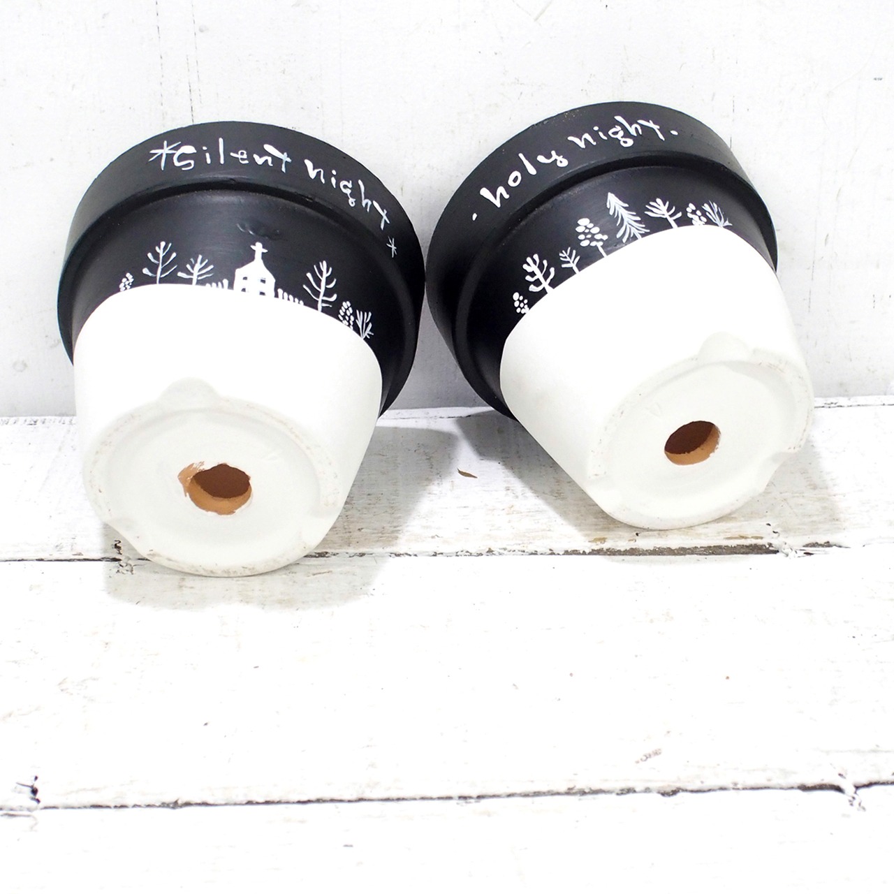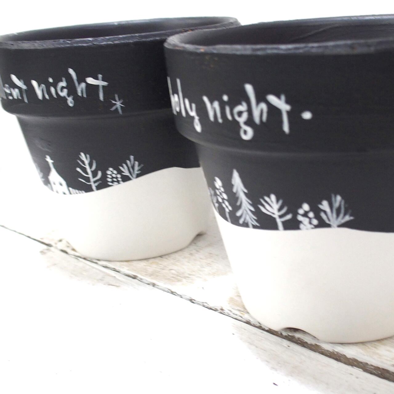 素焼き鉢をペイントし冬バージョンに♪