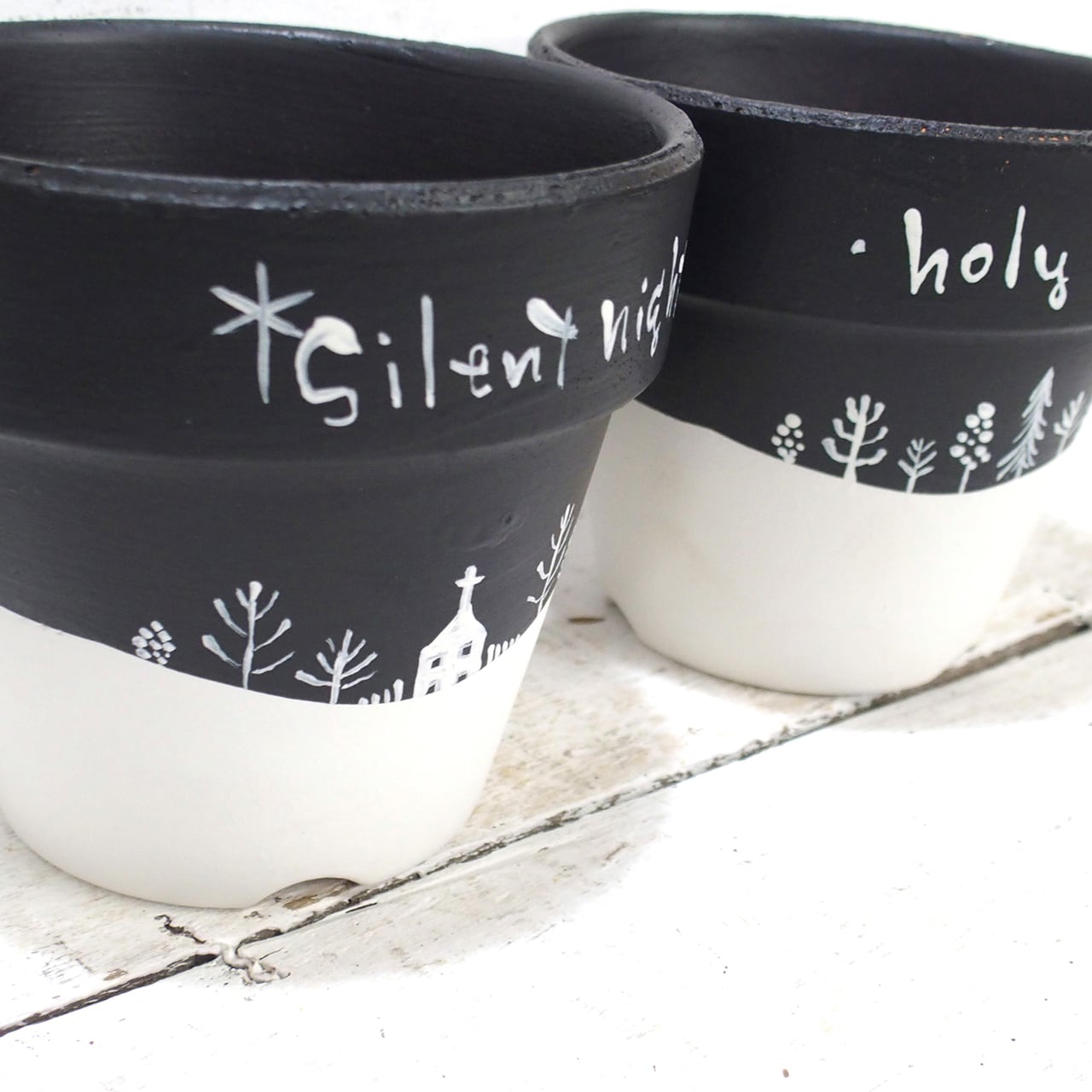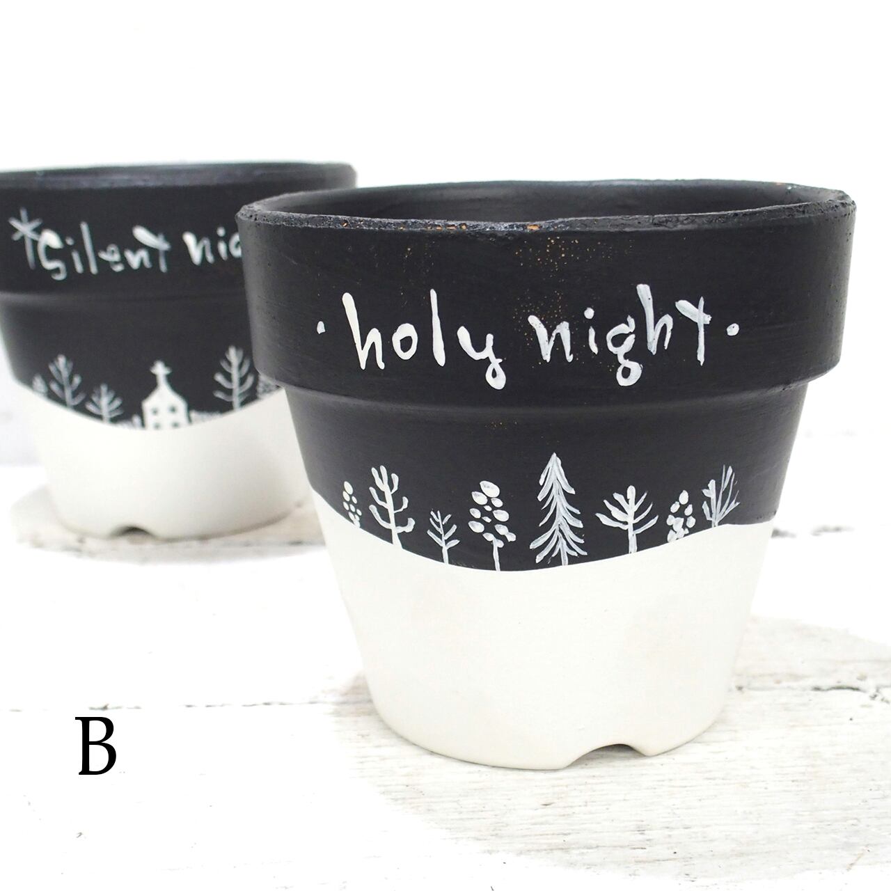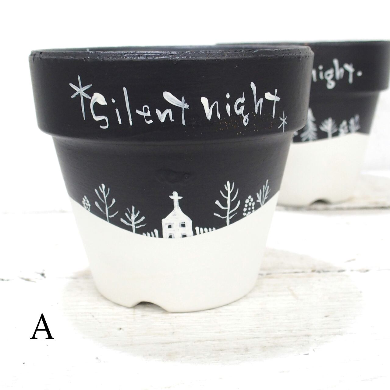 素焼き鉢をペイントし冬バージョンに♪