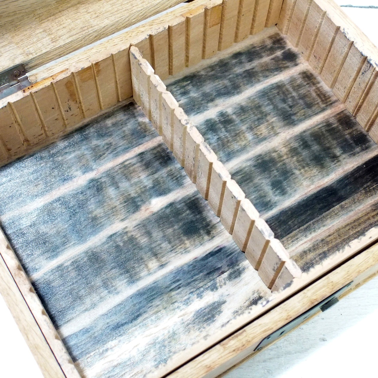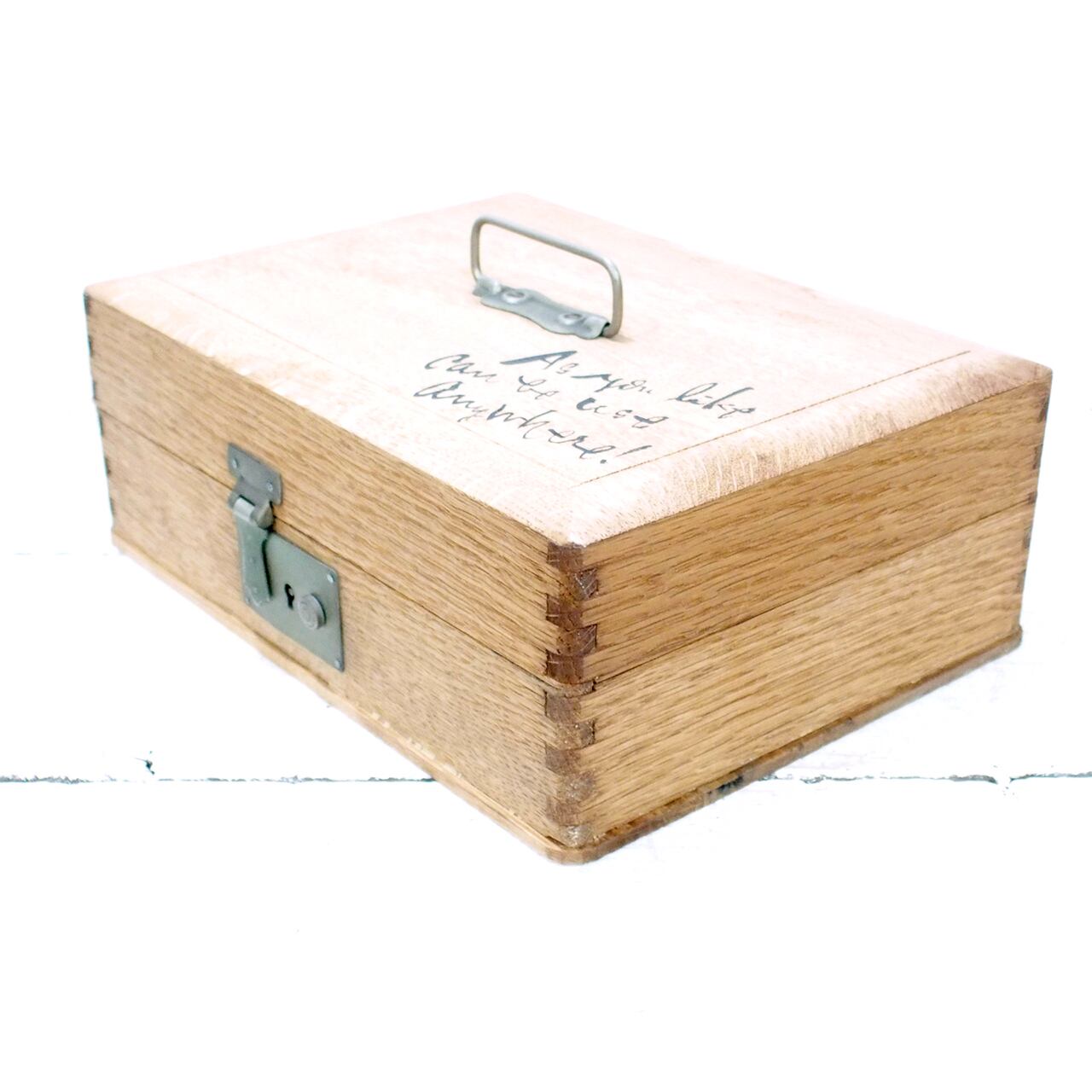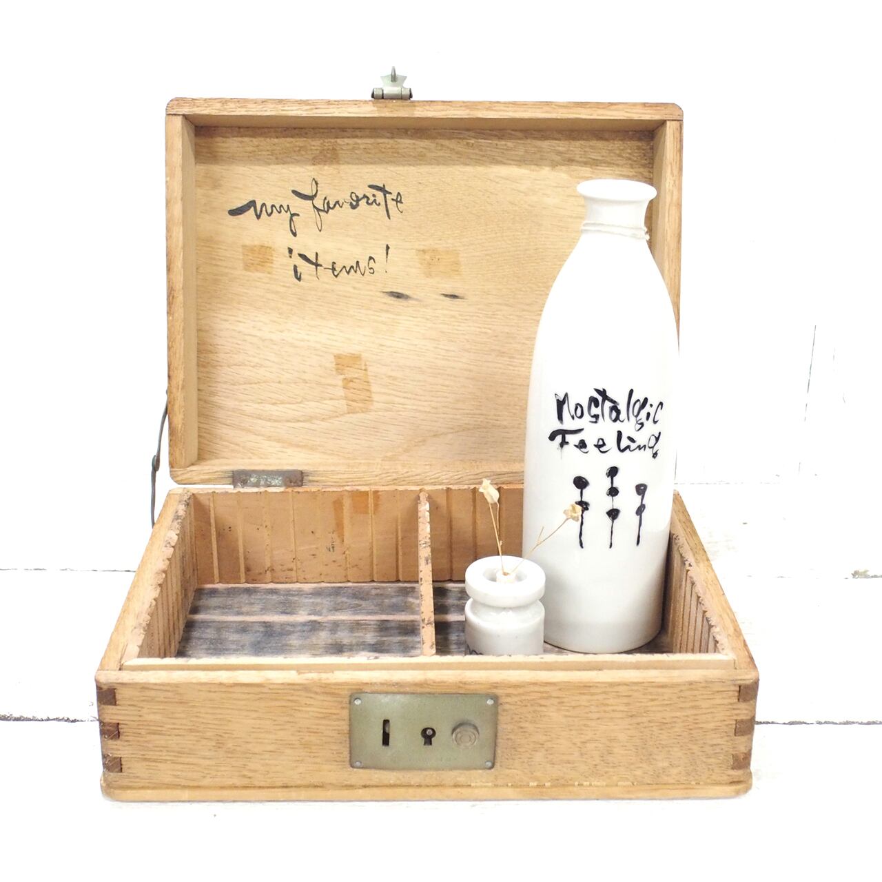 【リメイク古道具】 木のスタンプボックス 文字アレンジ