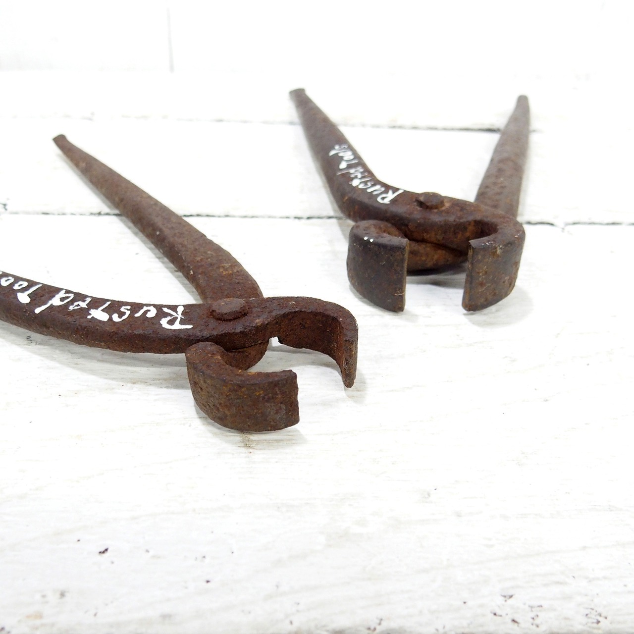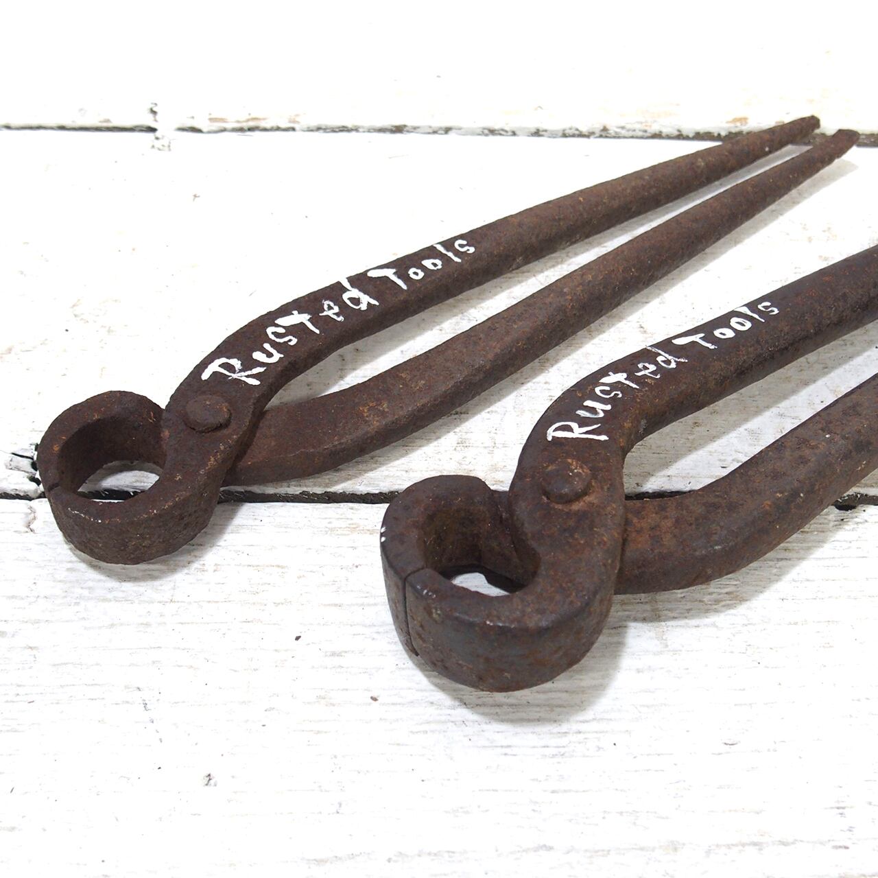 古いサビサビの「ヤットコ」に文字を入れたサインです。