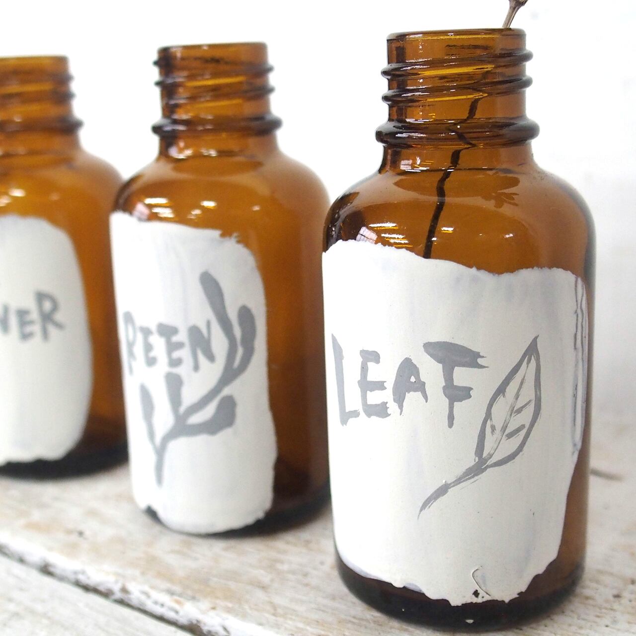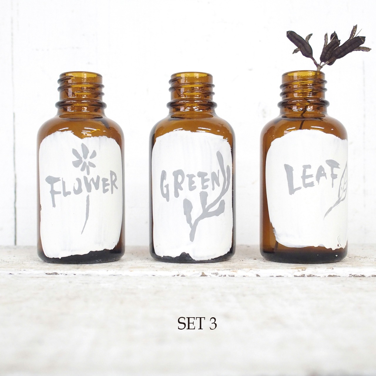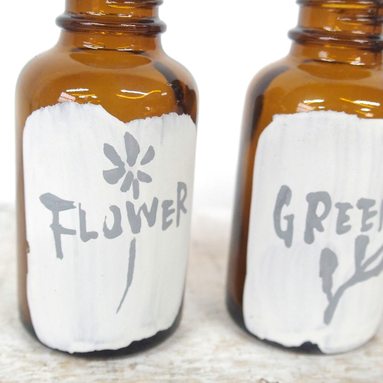 デッドストックの小瓶にナチュラルなイラストと文字を入れました♪