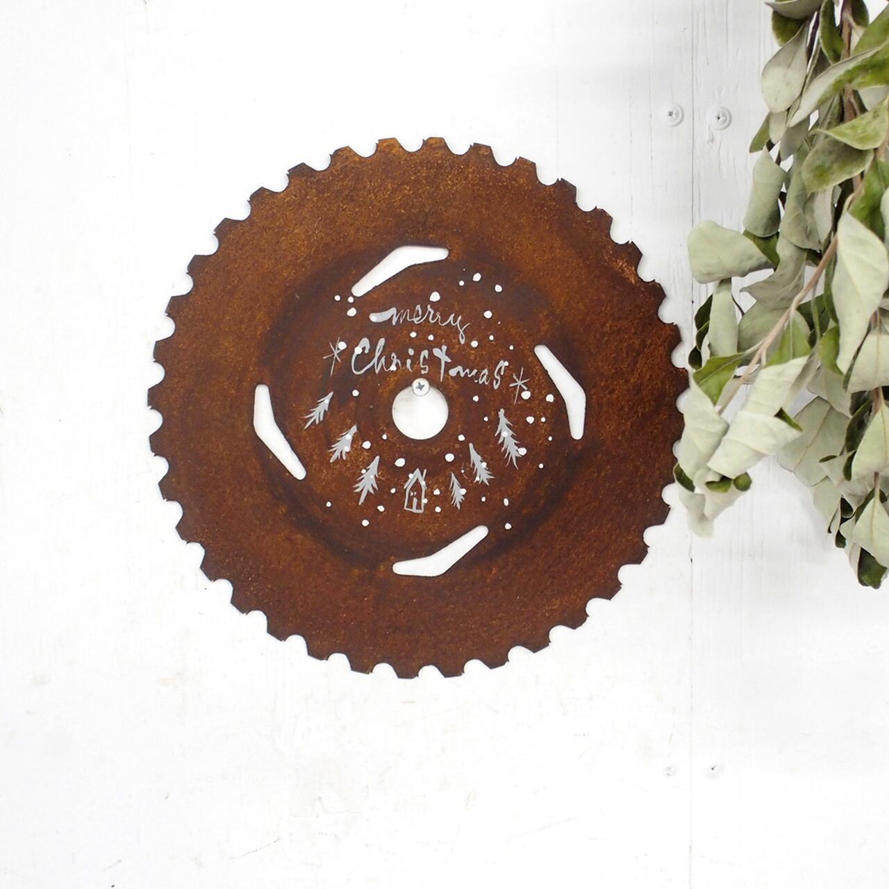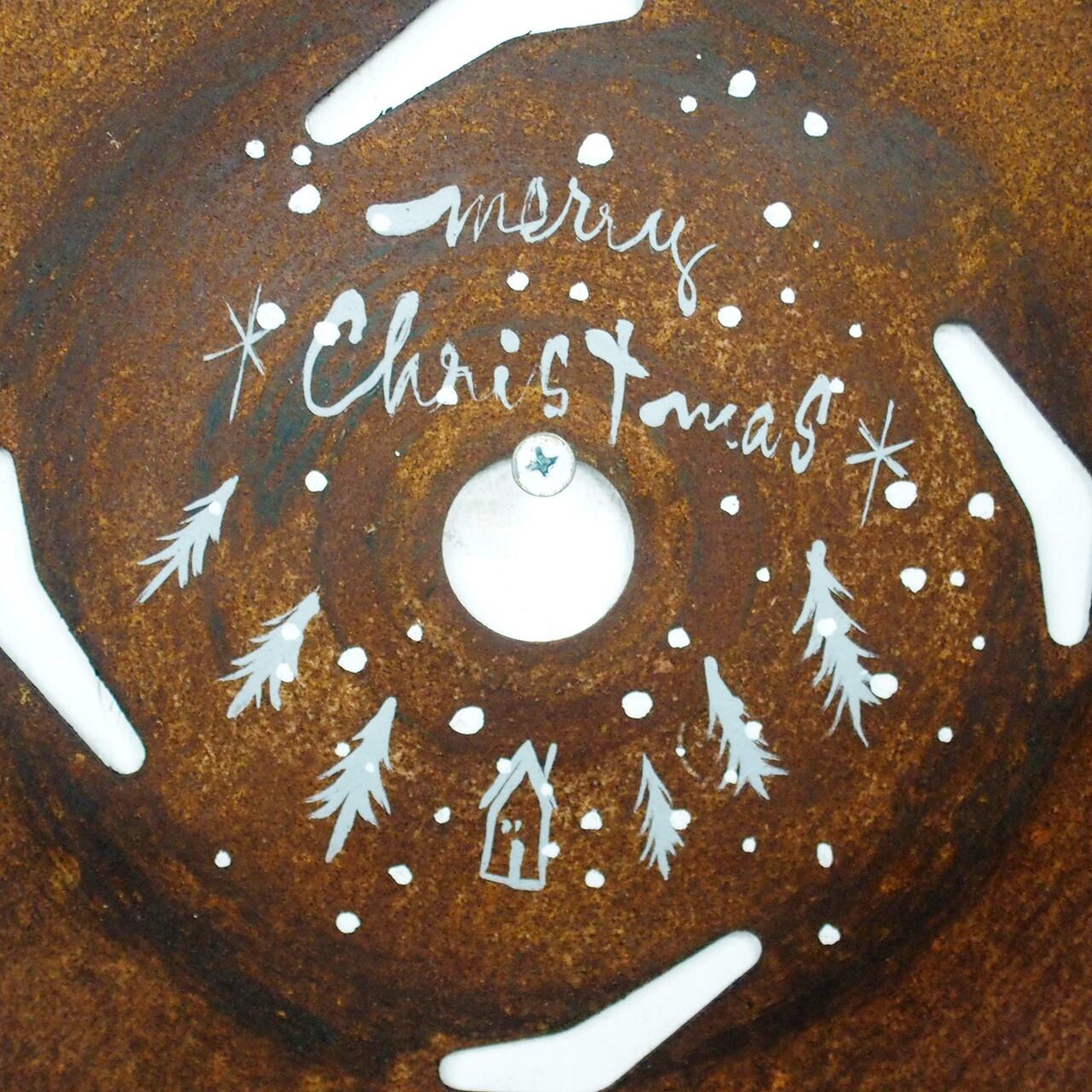 サビサビの草刈の刃に文字を入れたガーデンサインです♪