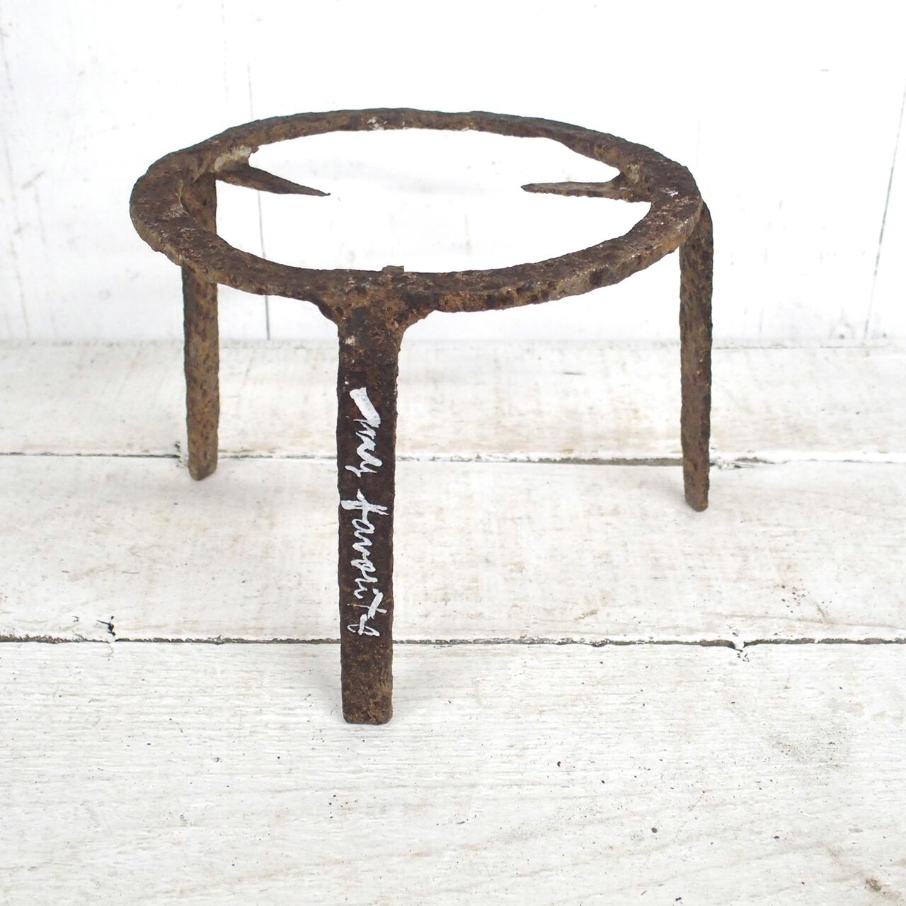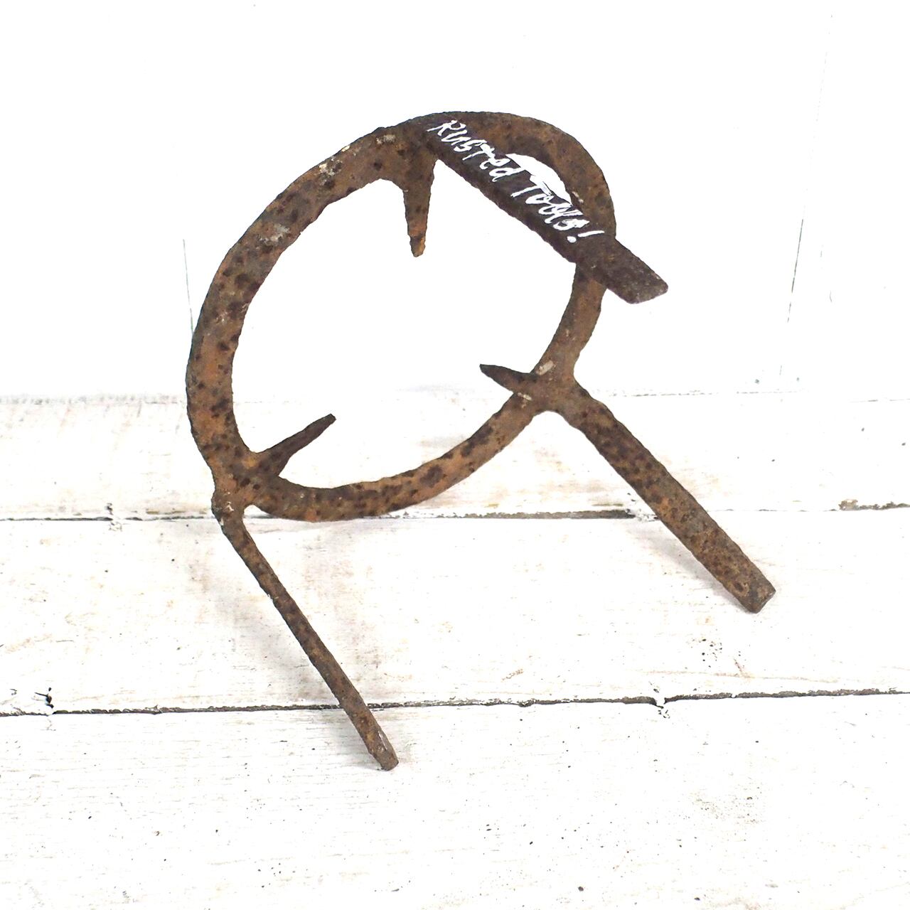 古いサビサビの五徳に文字を入れたシンプルな作品です♪