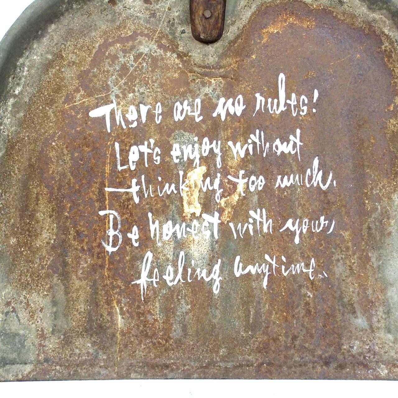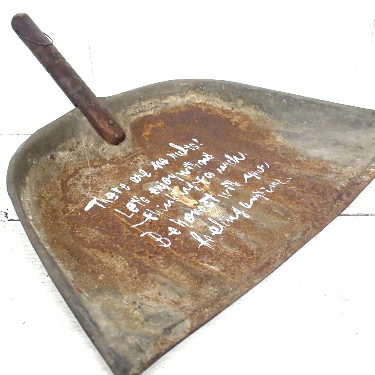 【リメイク古道具】ブリキチリトリのシンプルサイン WH
