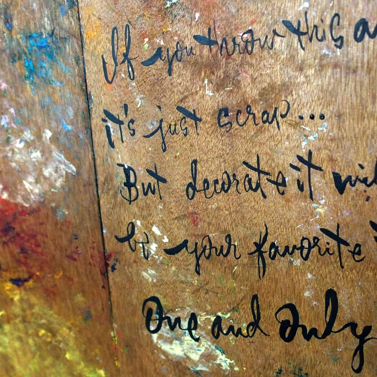古い油絵用の木製パレットをついたて風にアレンジ♪