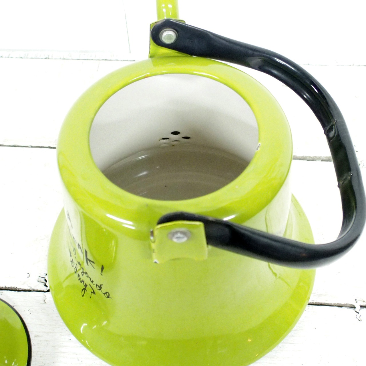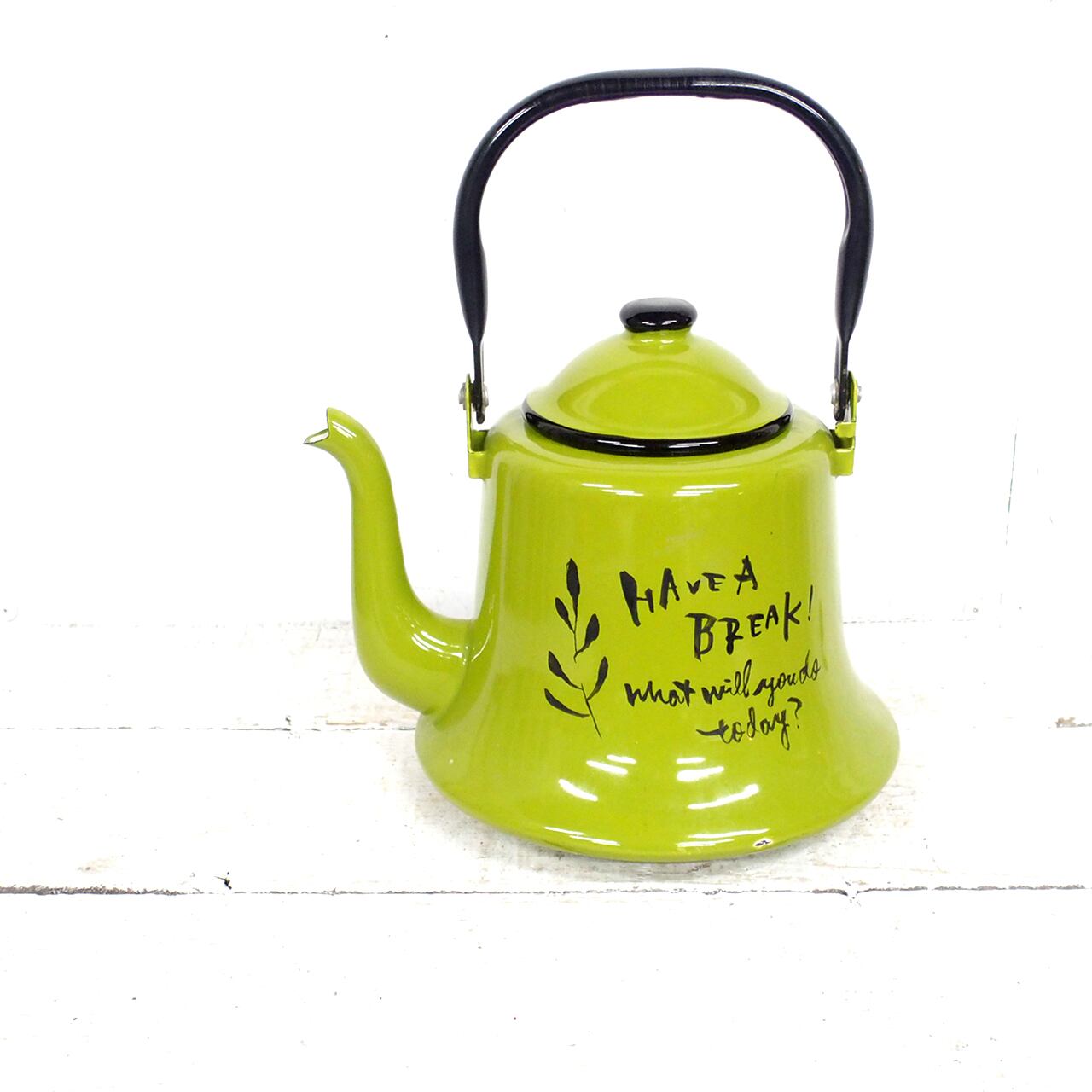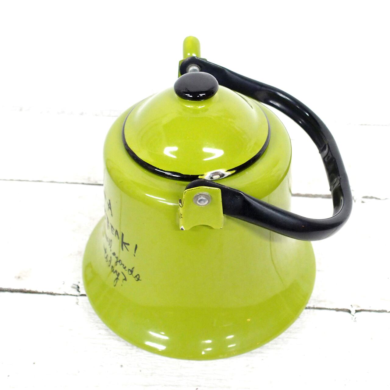 レトロなホーローのケトルに文字を入れたアレンジ品です♪
