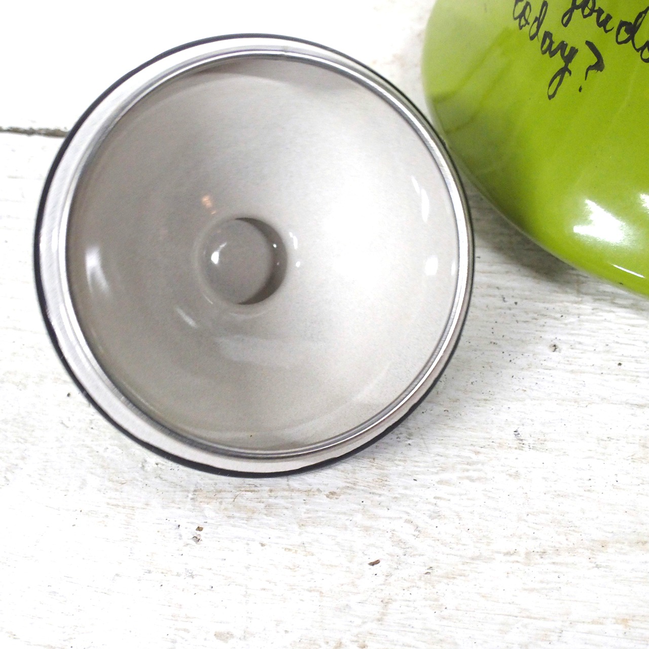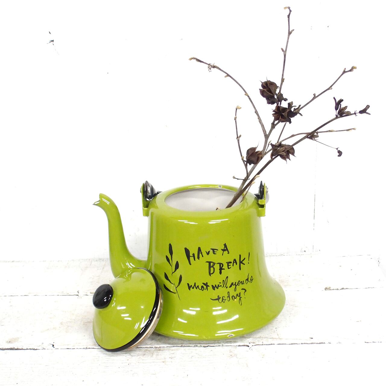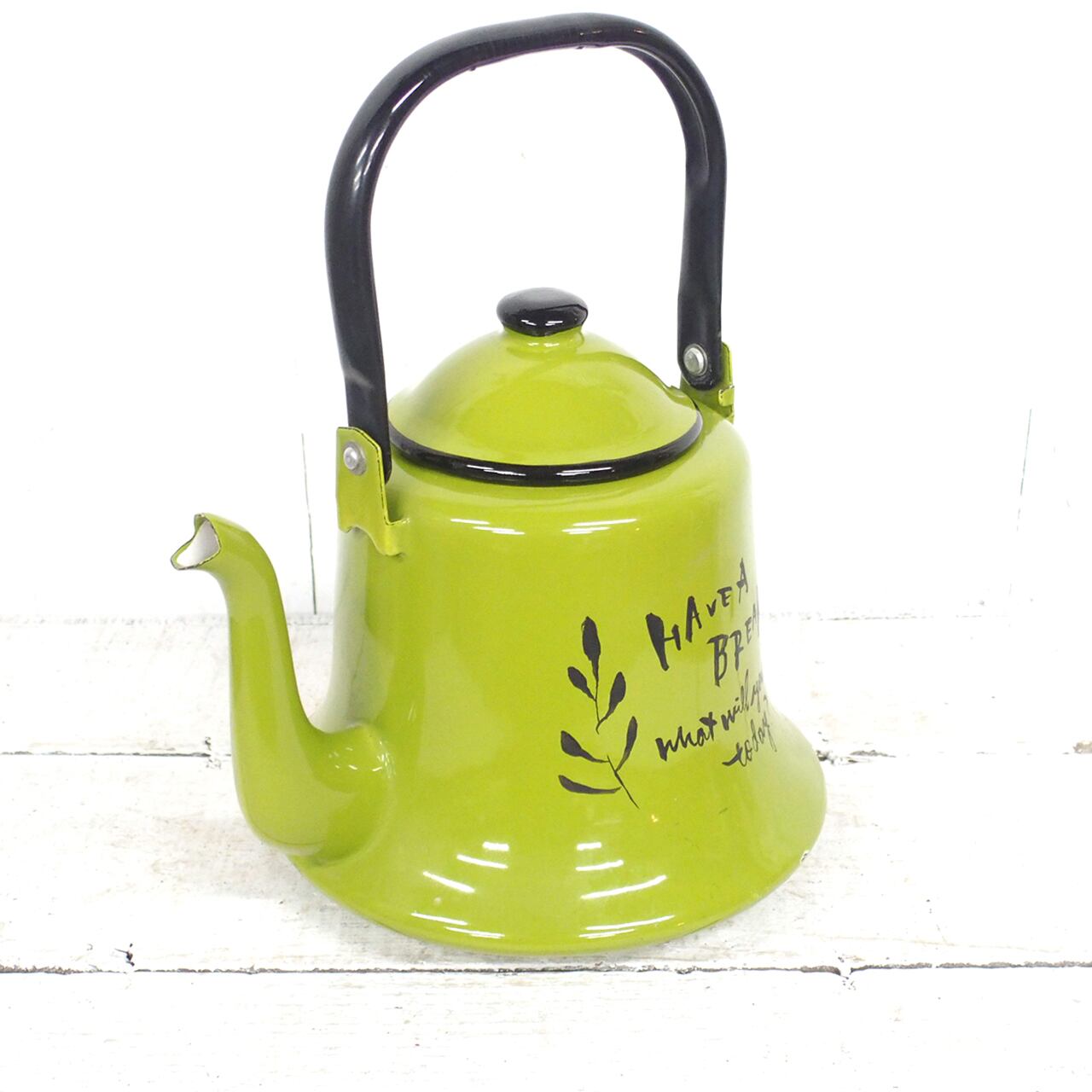 レトロなホーローのケトルに文字を入れたアレンジ品です♪