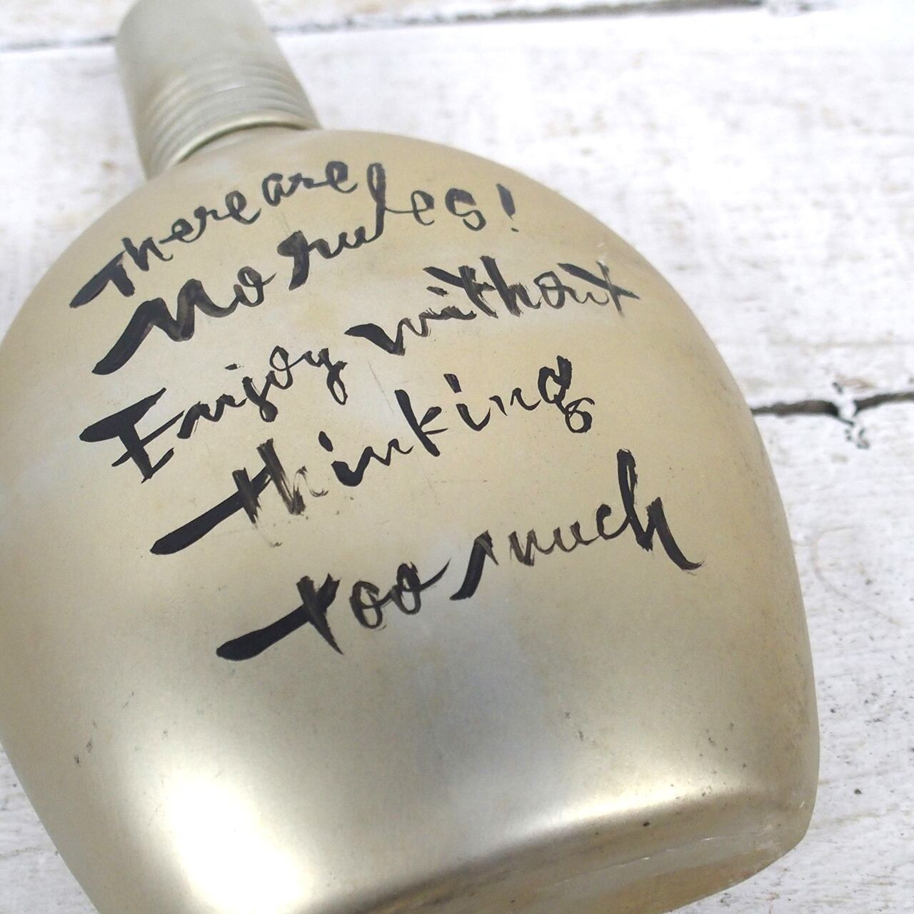 レトロなアルマイトの水筒に文字を入れたアレンジ品です♪