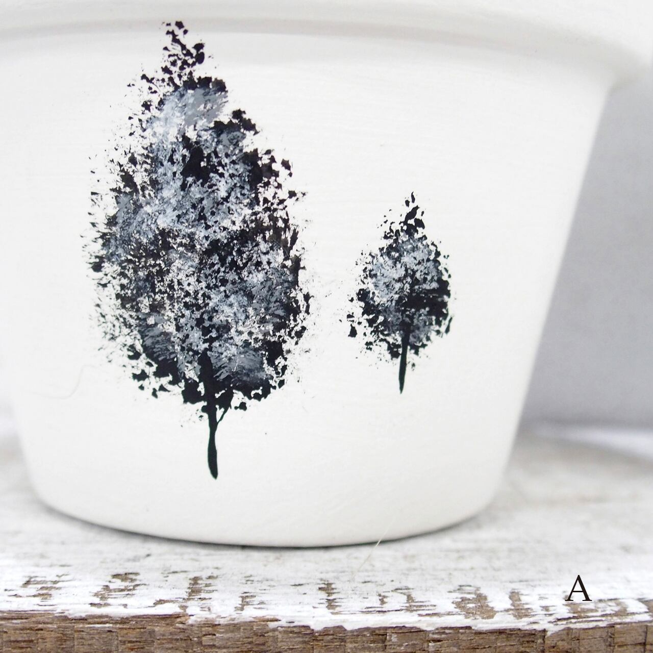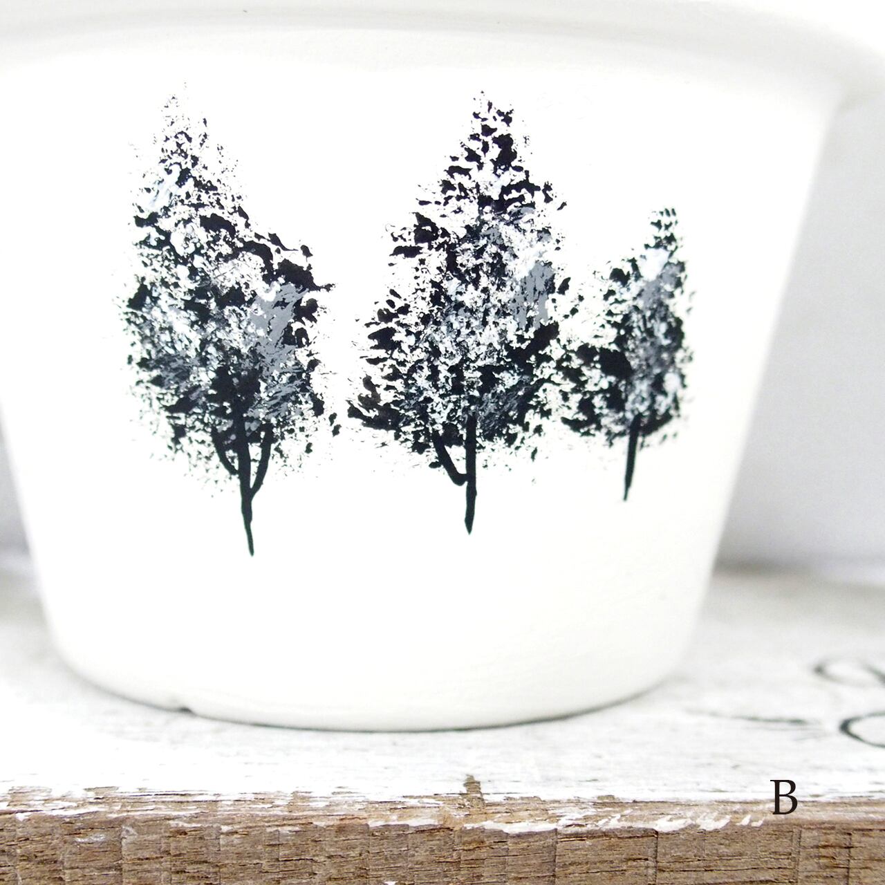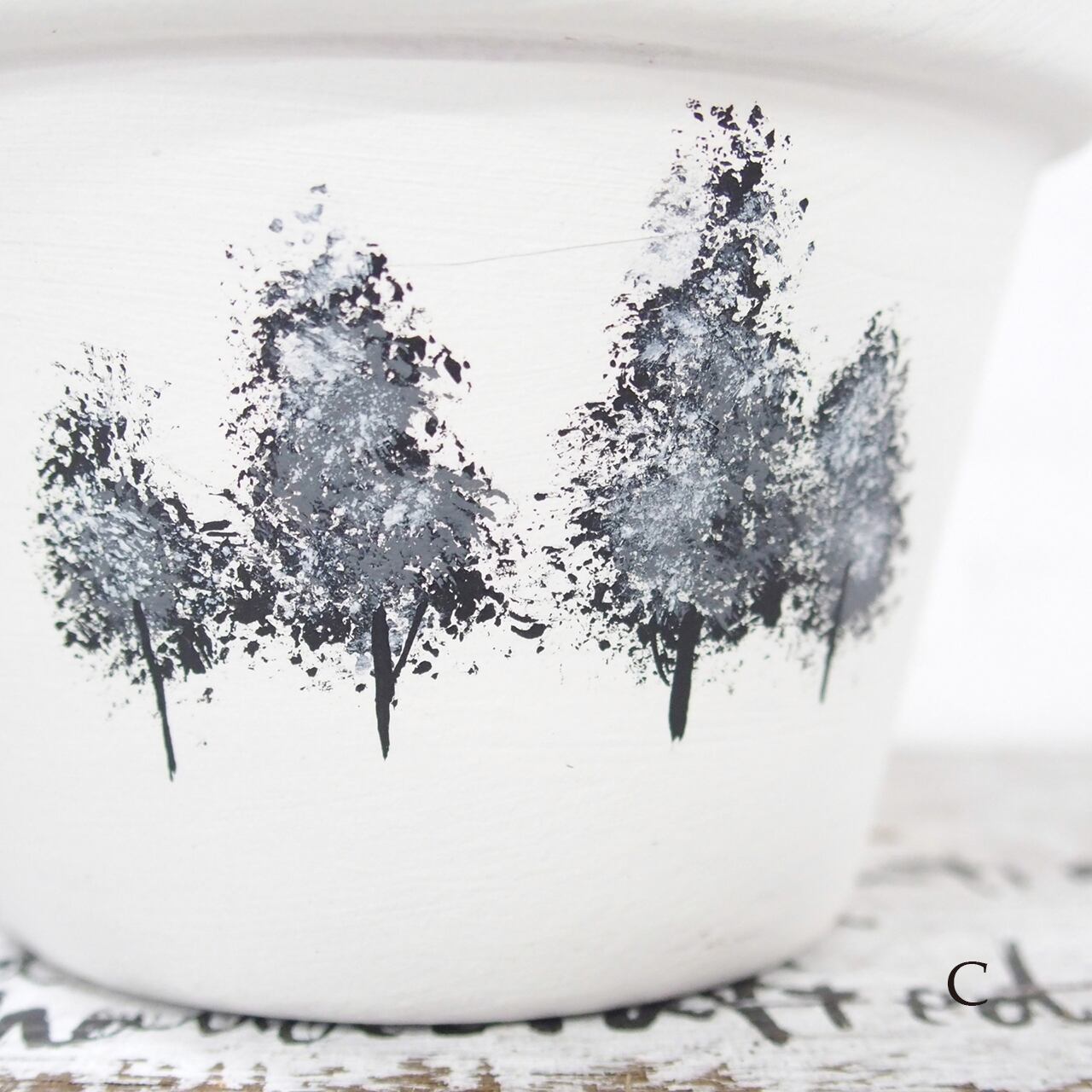 【リメイク鉢】アレンジ鉢 モノクロイラスト