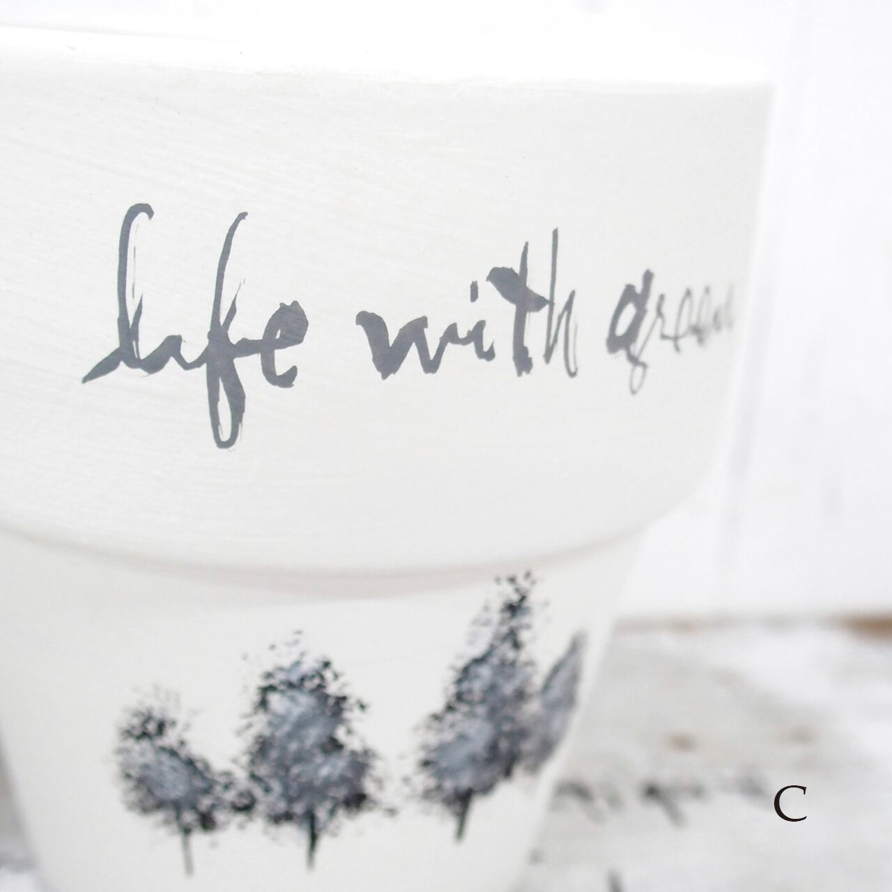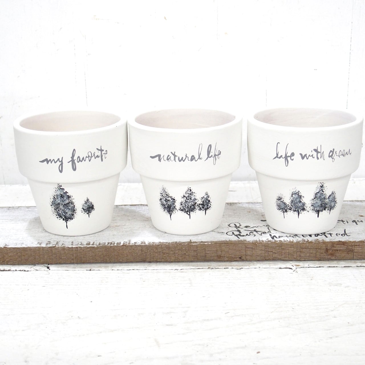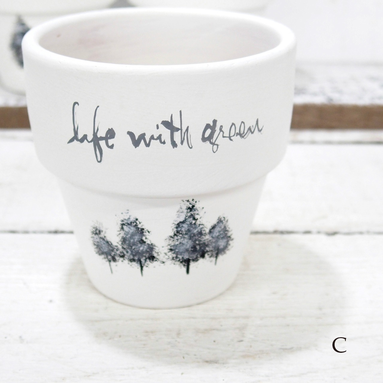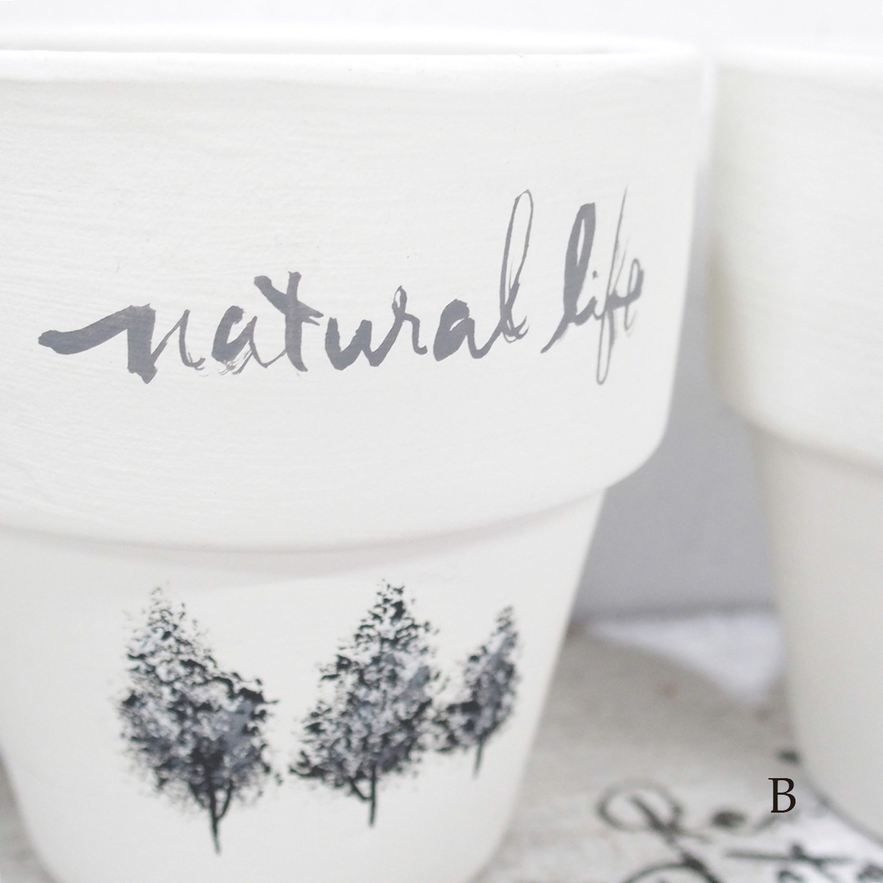【リメイク鉢】アレンジ鉢 モノクロイラスト
