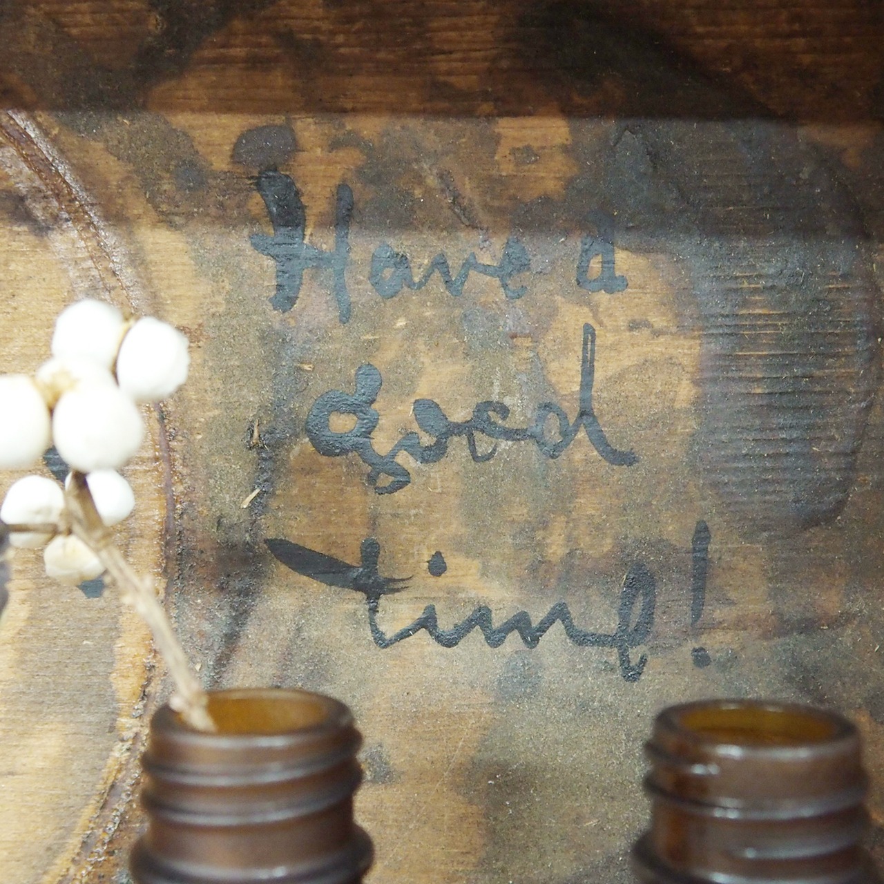 底の部分の丸い輪染みを時計に見立ててペイントしました♪