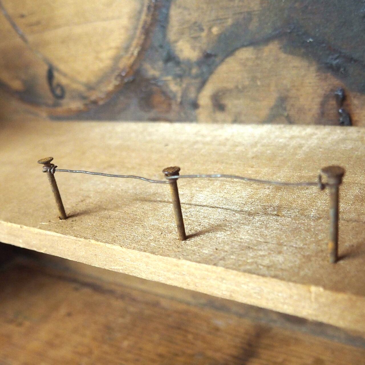 サビサビのクギで柵を作ってつや消しをした小瓶を並べてみました。