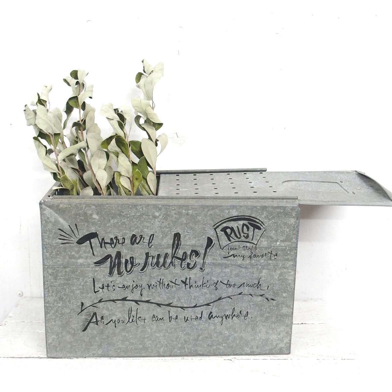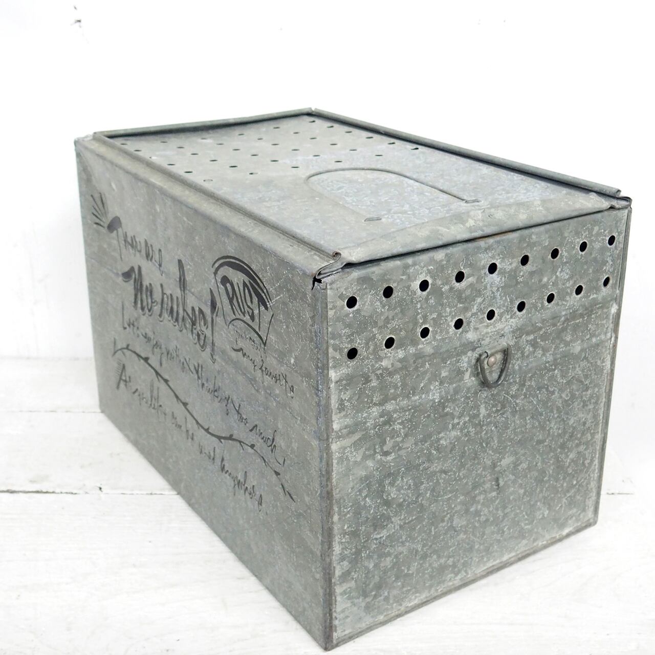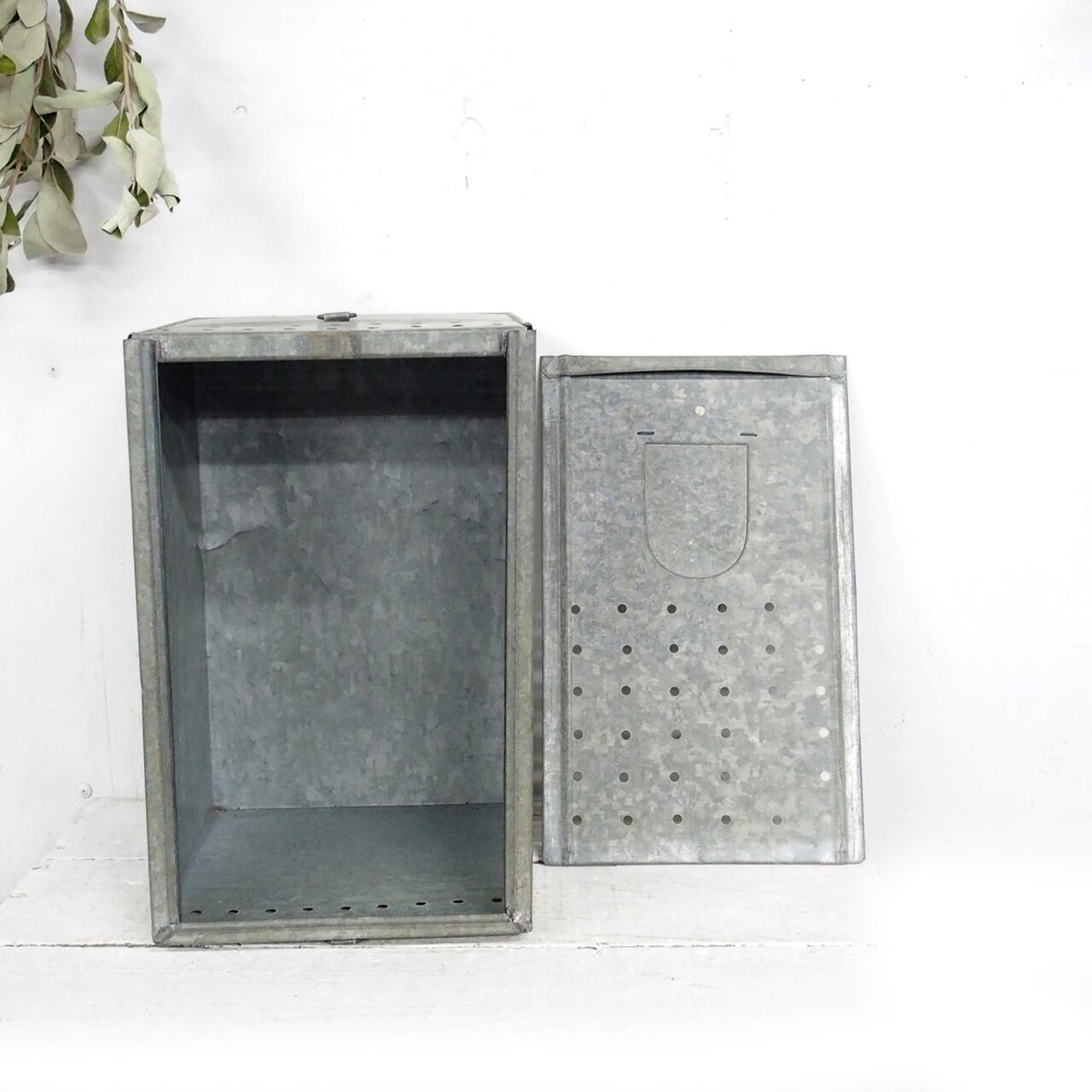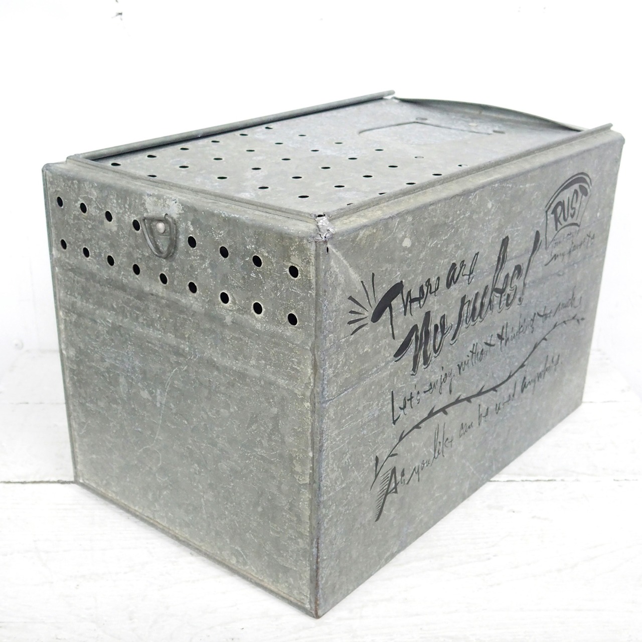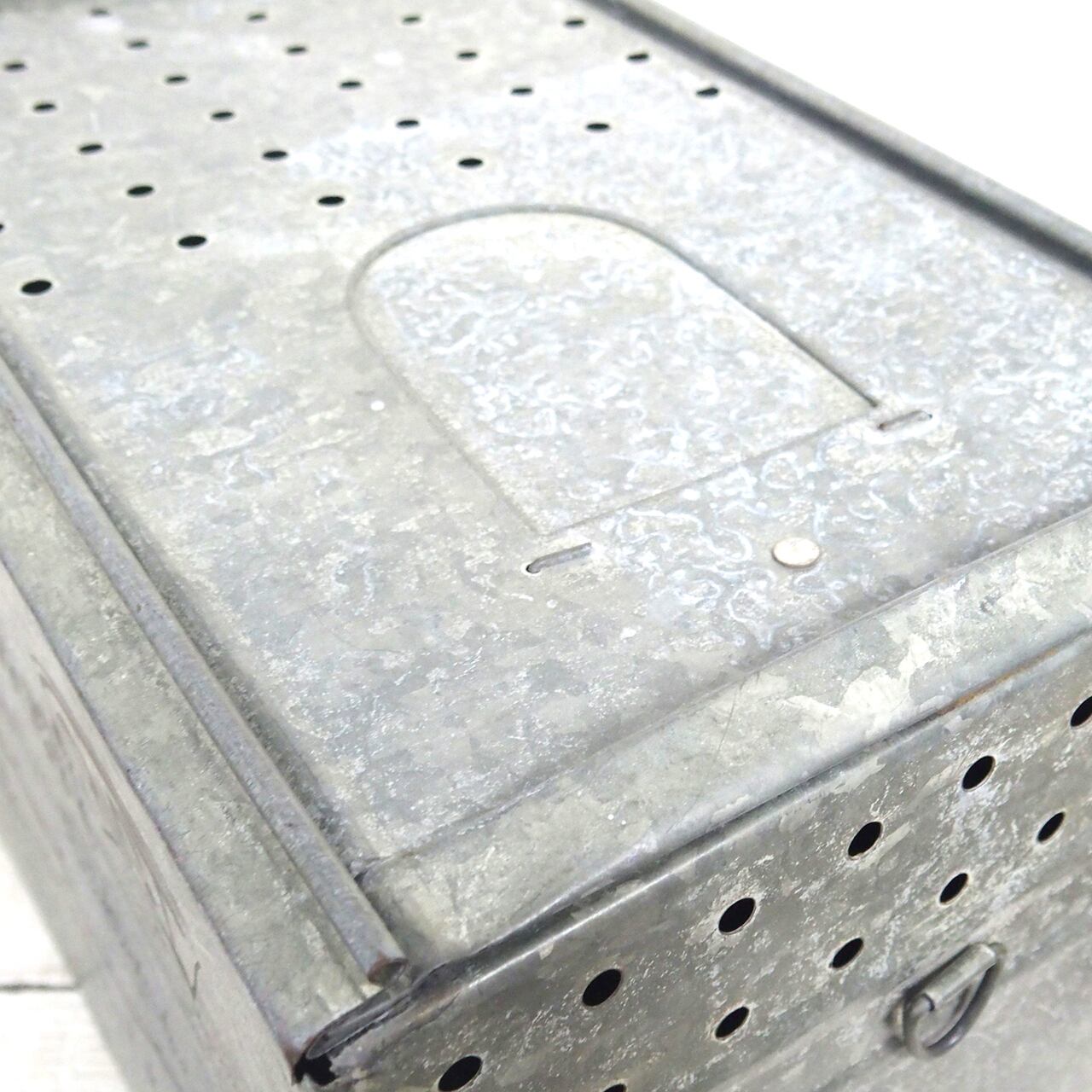 ブリキ製の魚篭(びく)はもともと獲った魚を入れるための箱です。