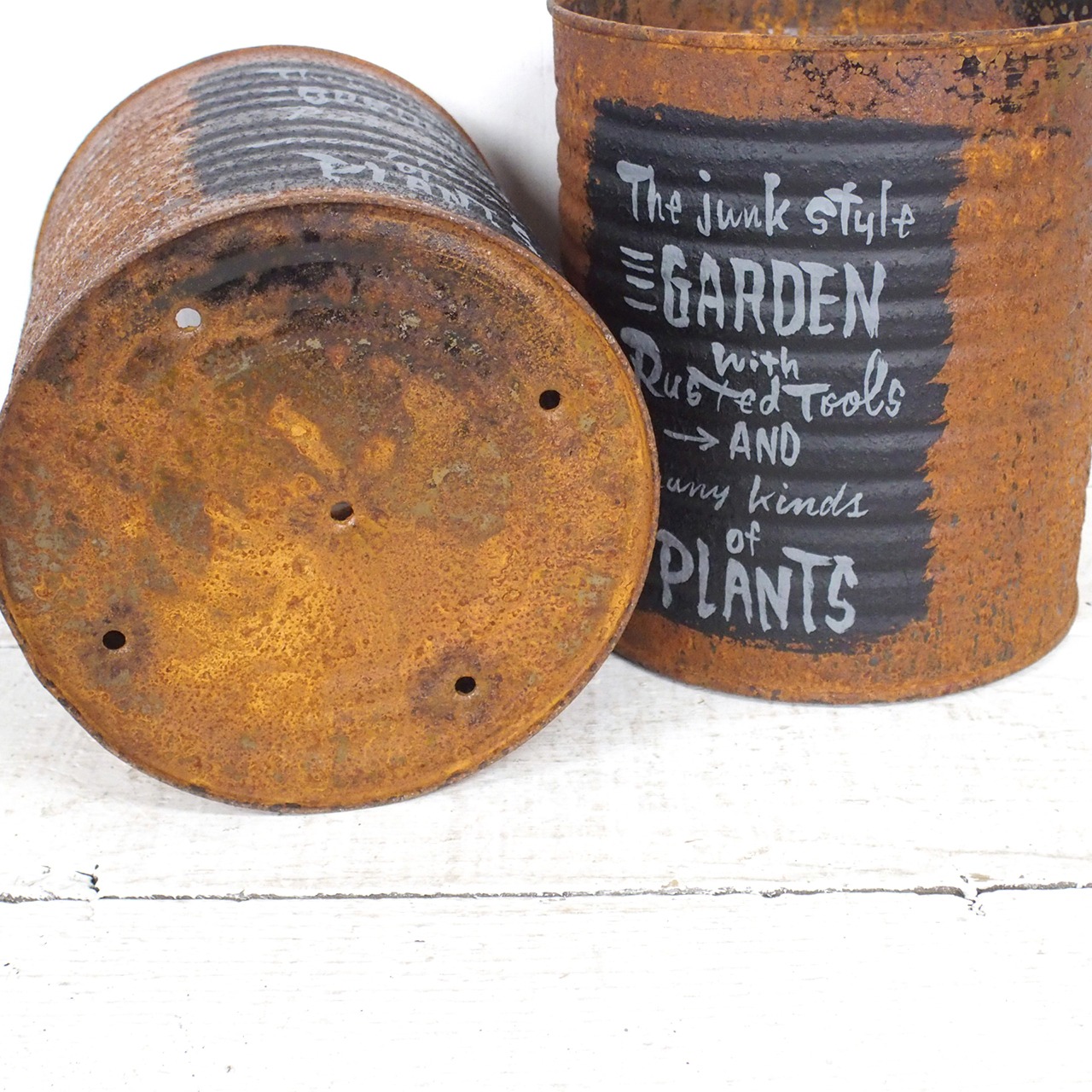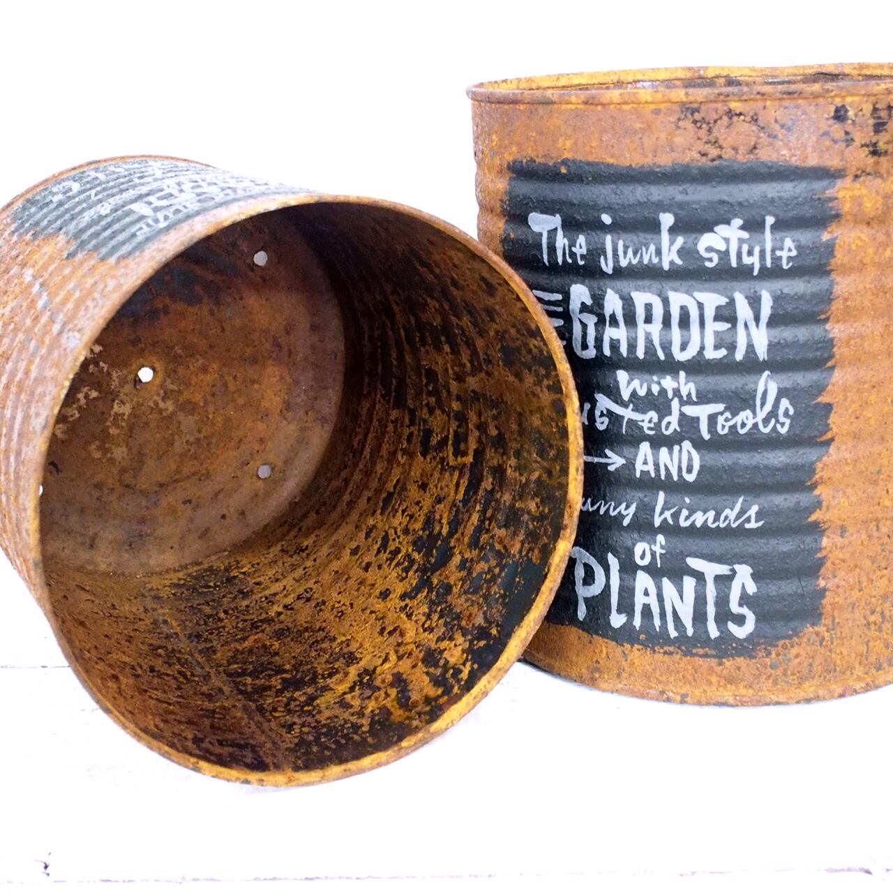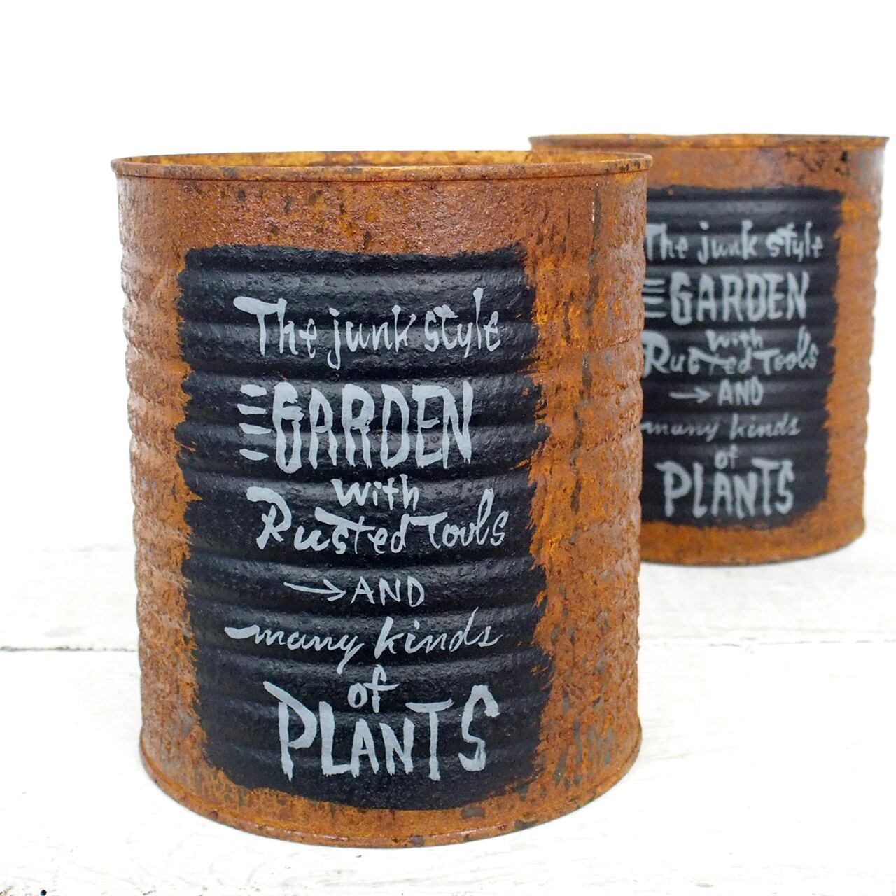【リメイク缶】サビサビリメ缶プランター 黒ラベル風