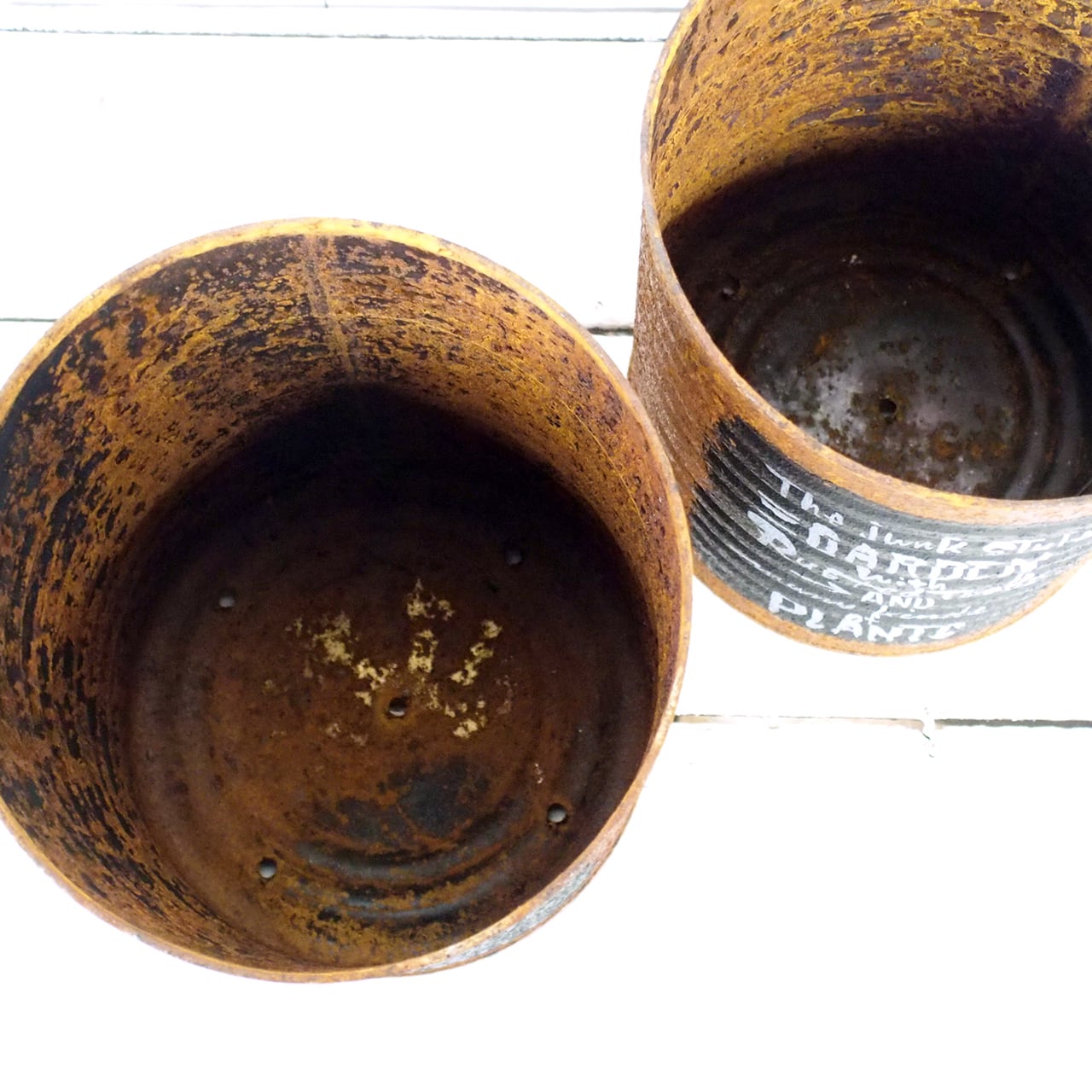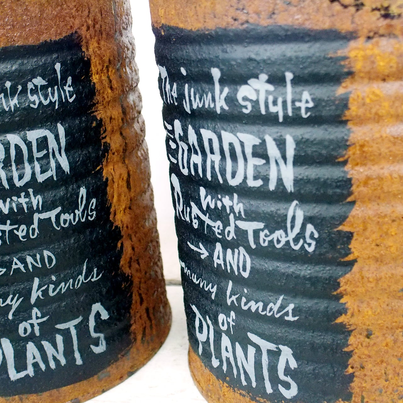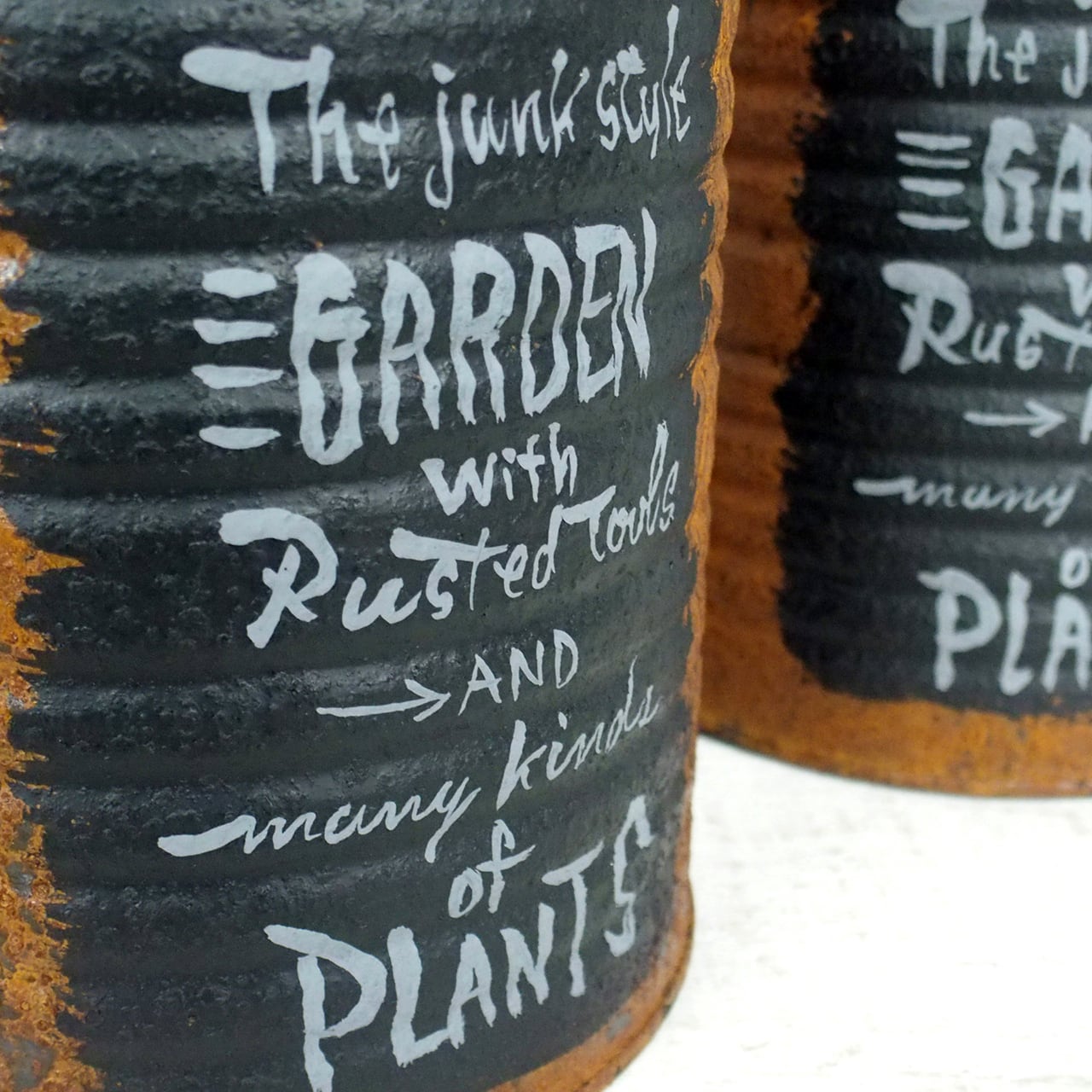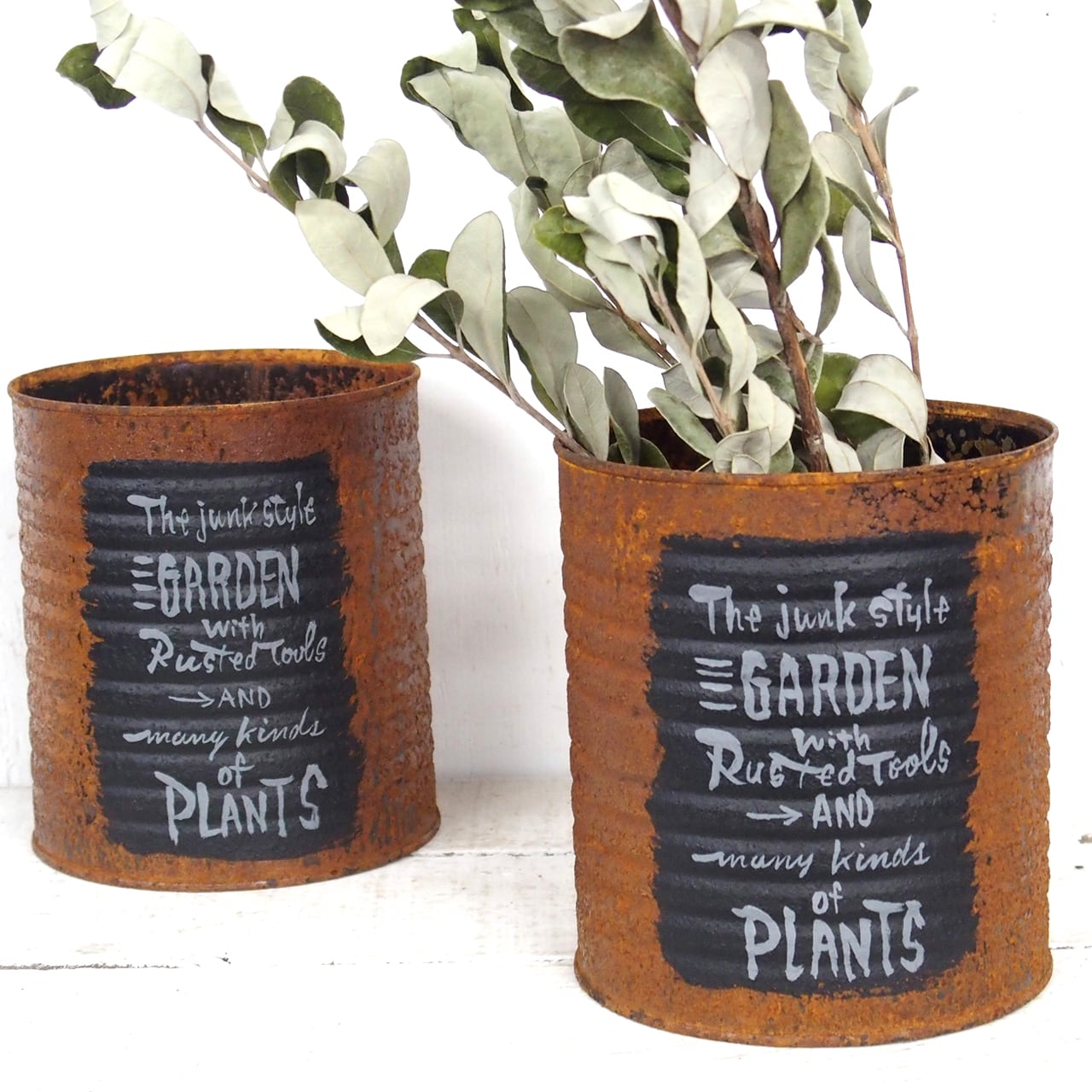 【リメイク缶】サビサビリメ缶プランター 黒ラベル風