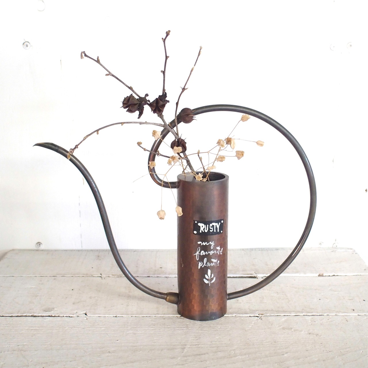 【リメイク古道具】銅製水差し 文字アレンジ