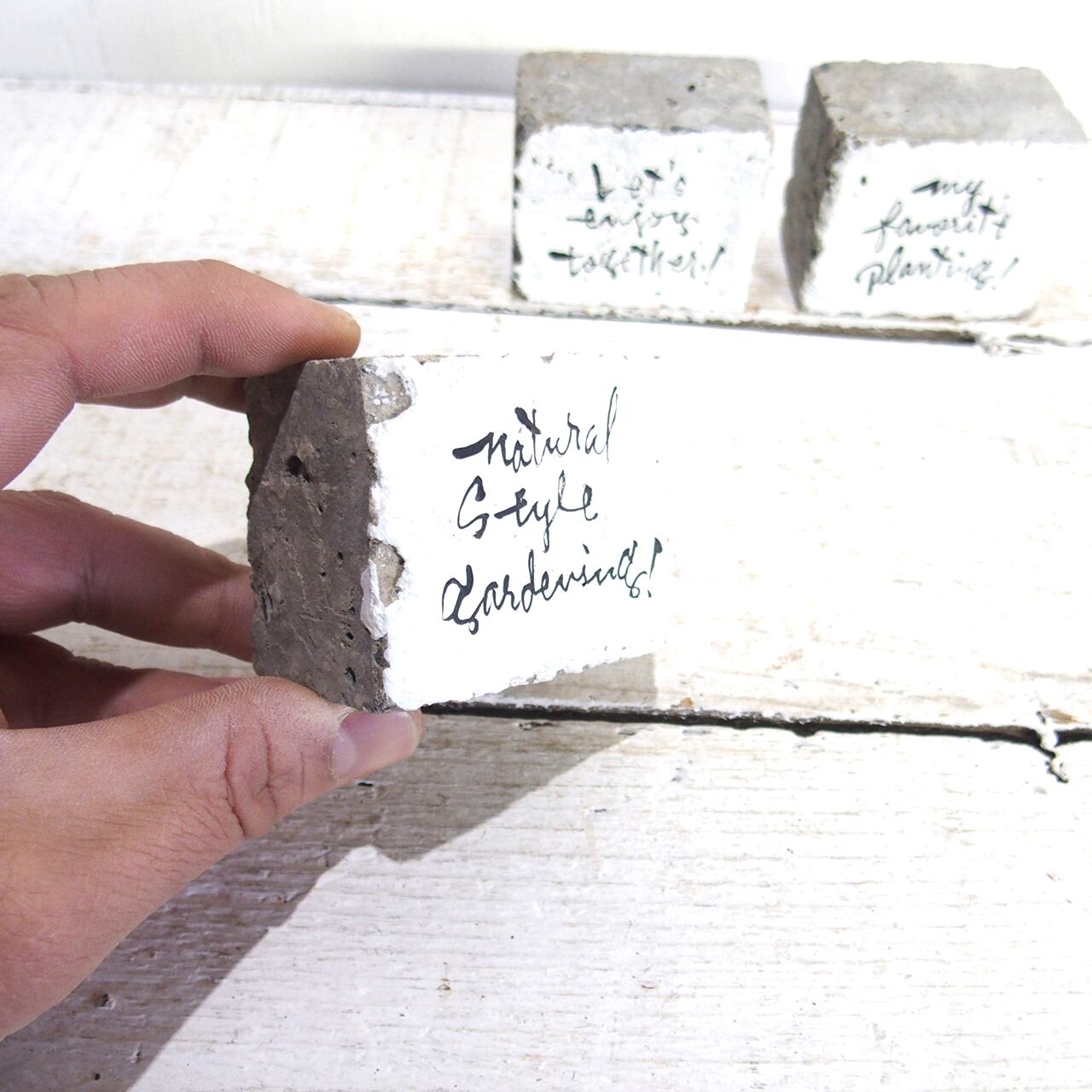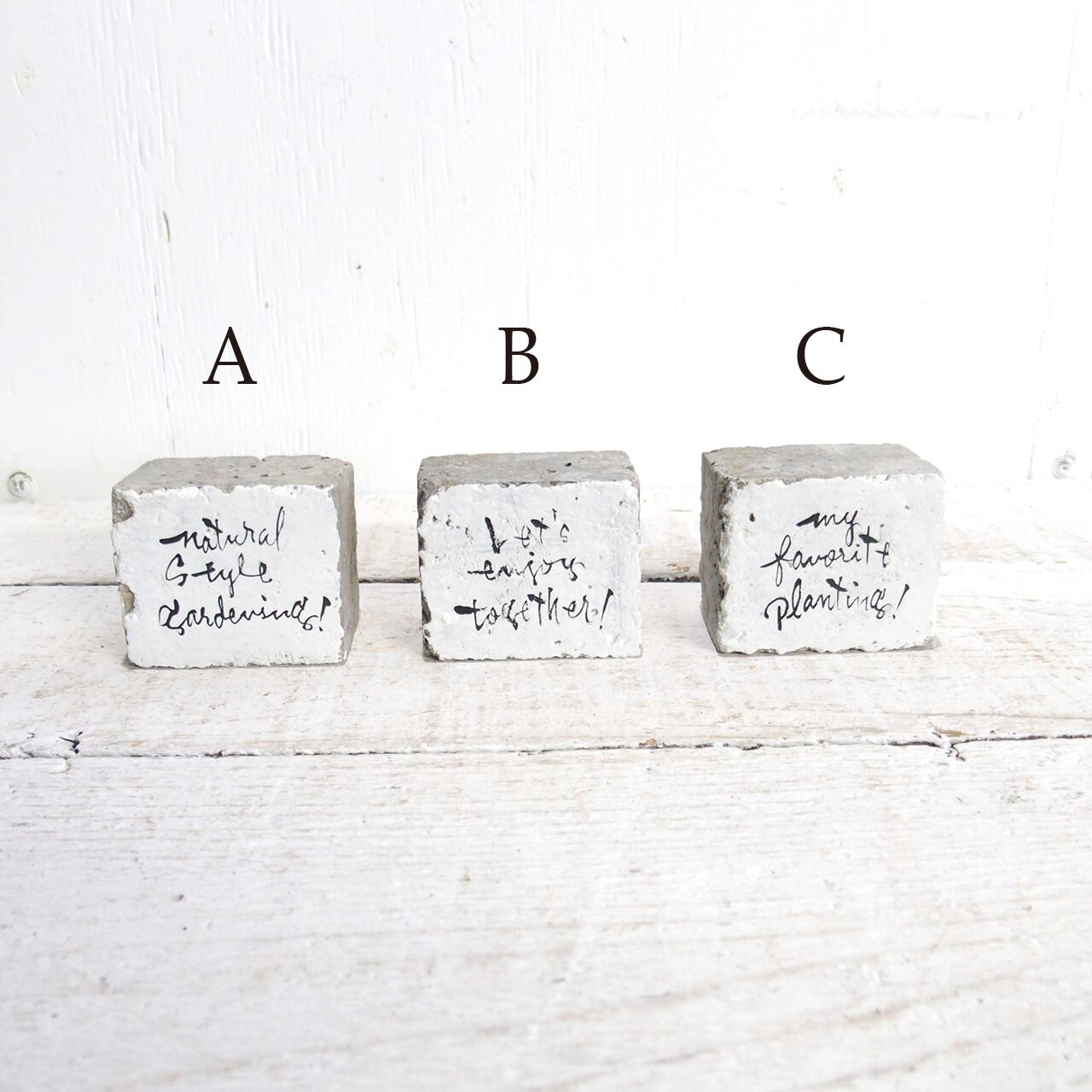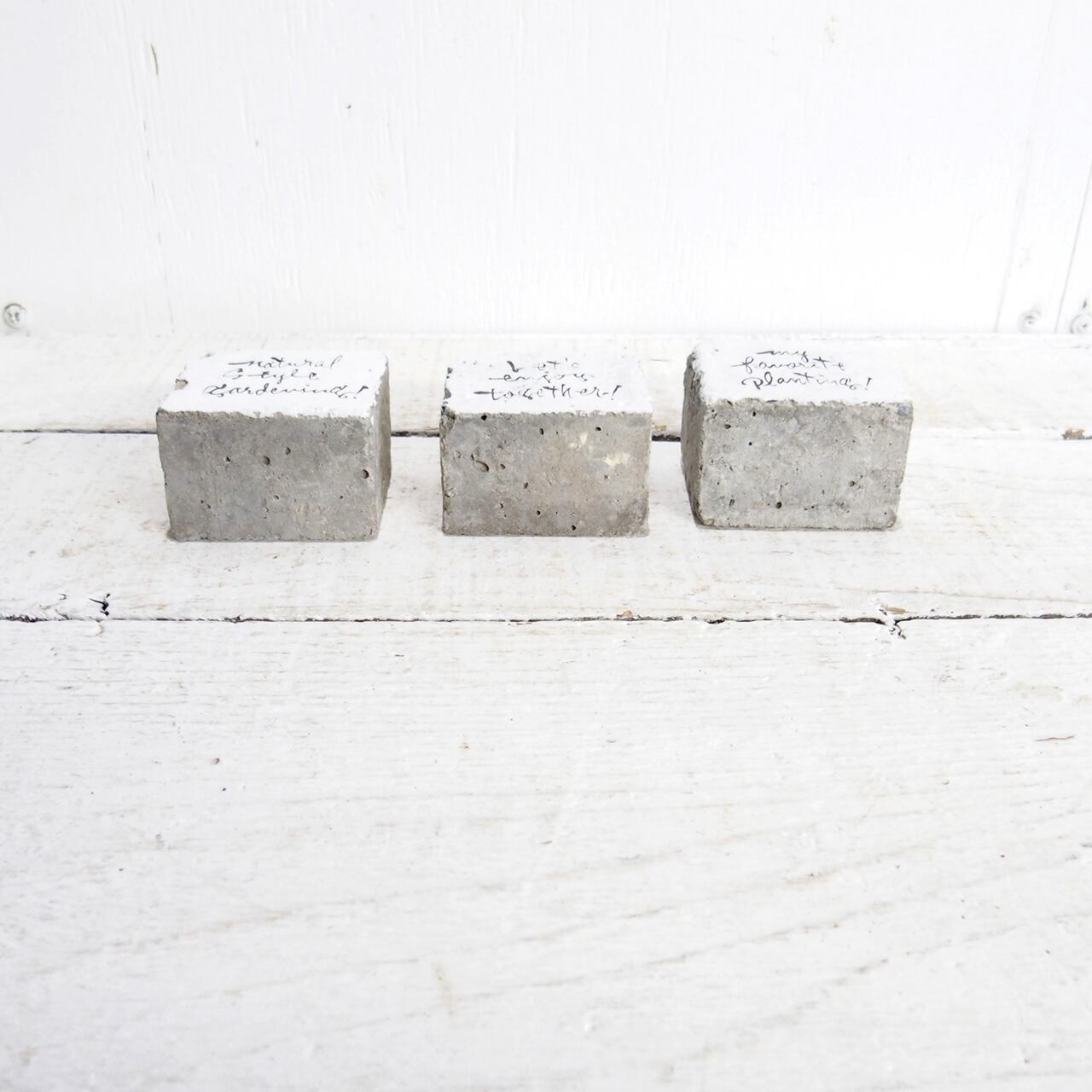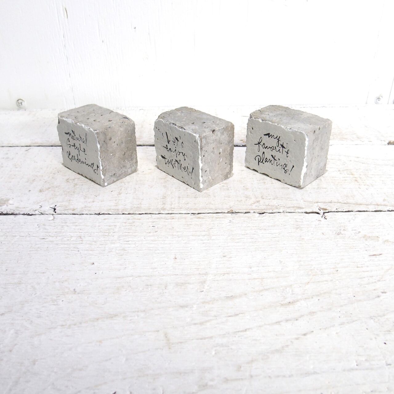 小さなコンクリートキューブに文字を入れたミニサインです♪