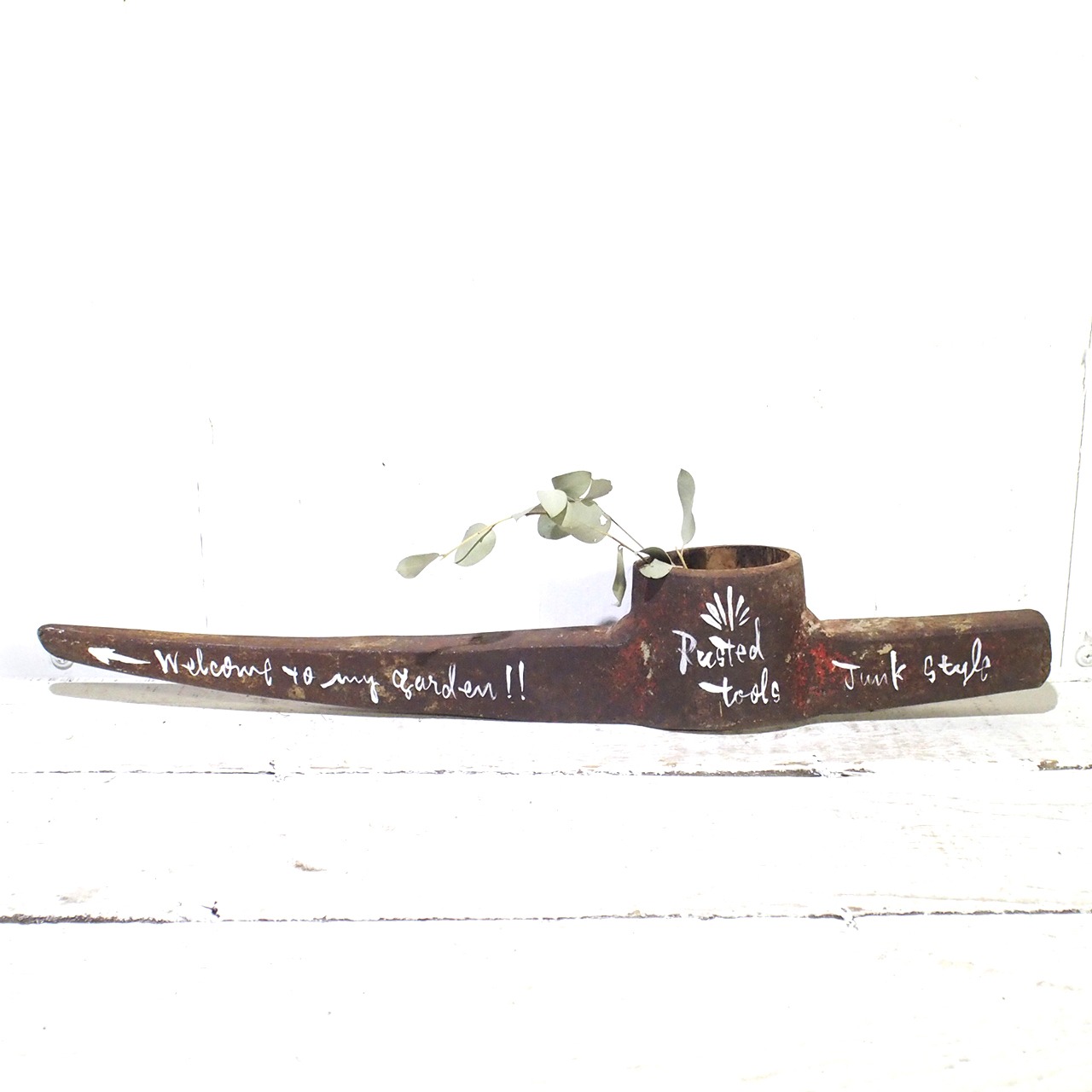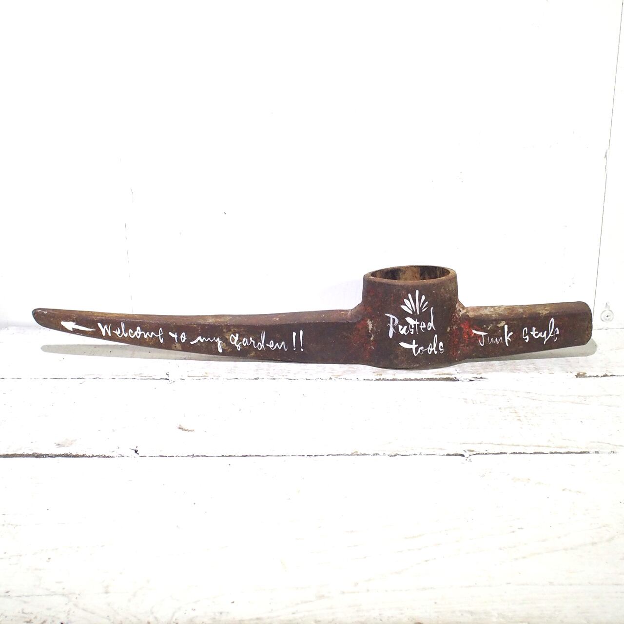 【リメイク古道具】サビサビツルハシのガーデンサイン A