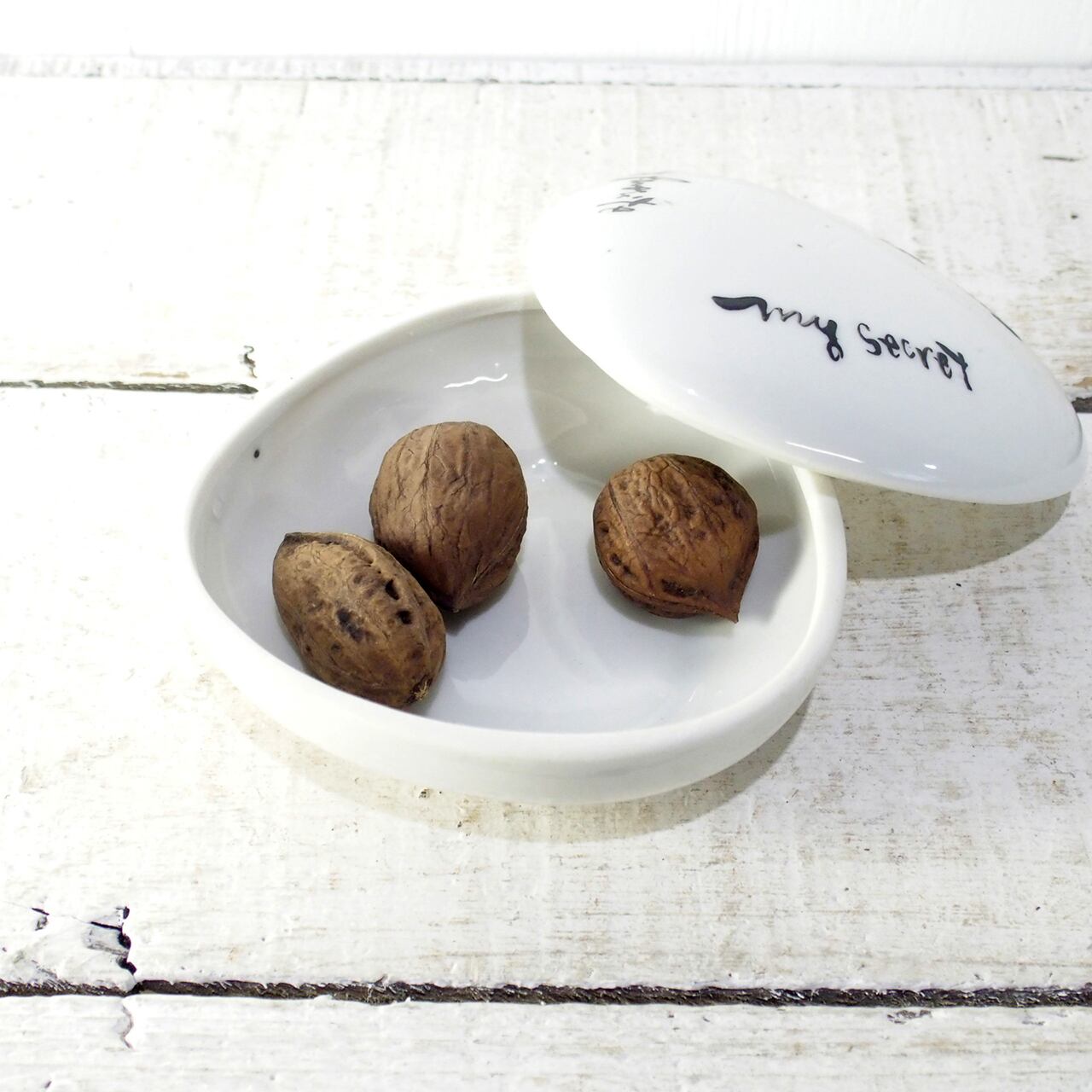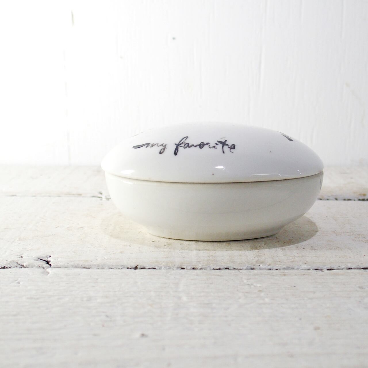 おにぎり型のかわいい白磁の小物入れに文字を入れてアレンジしました♪