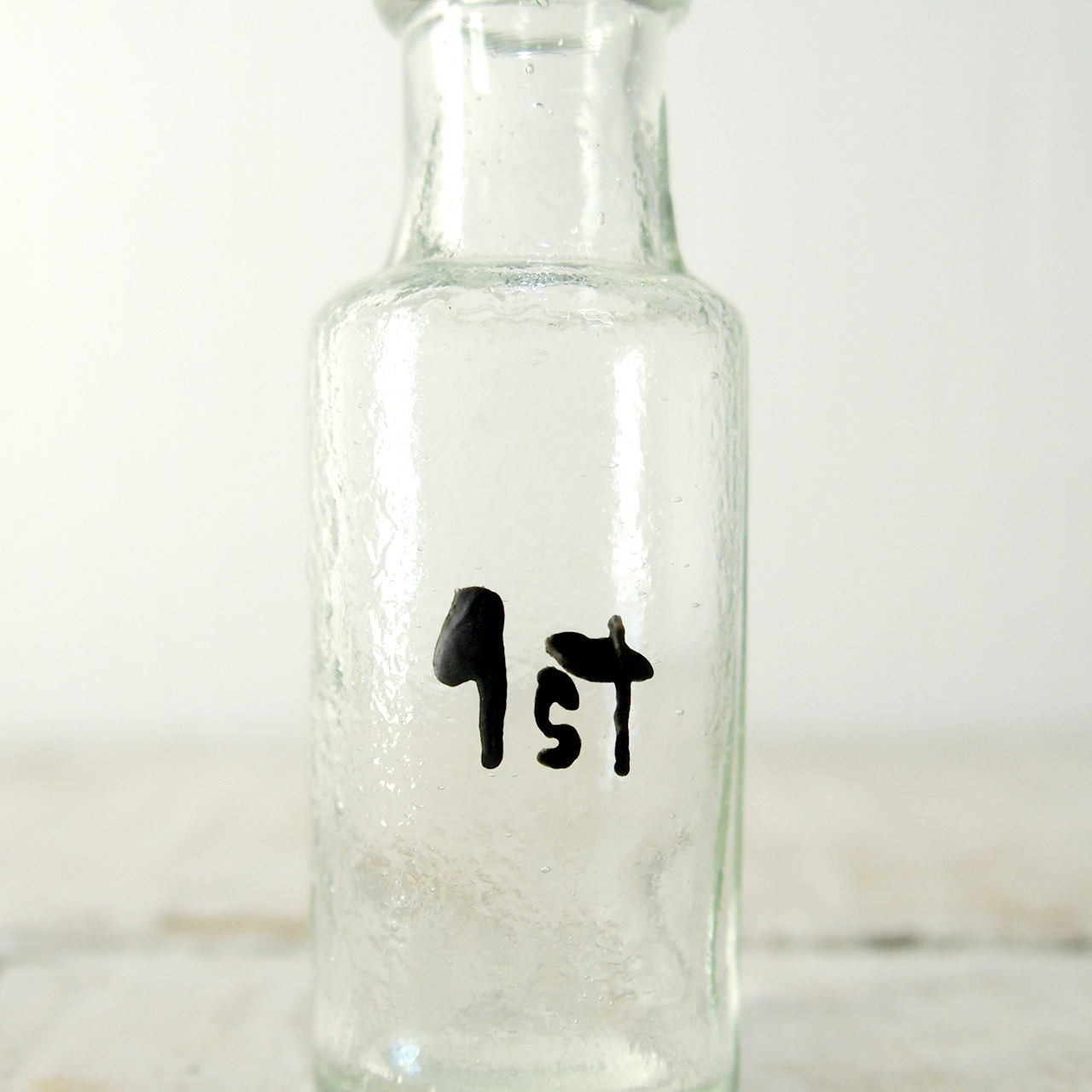 アンティークガラス特有のゆらゆら感がとてもおしゃれな小瓶にナンバーを入れてみました♪
